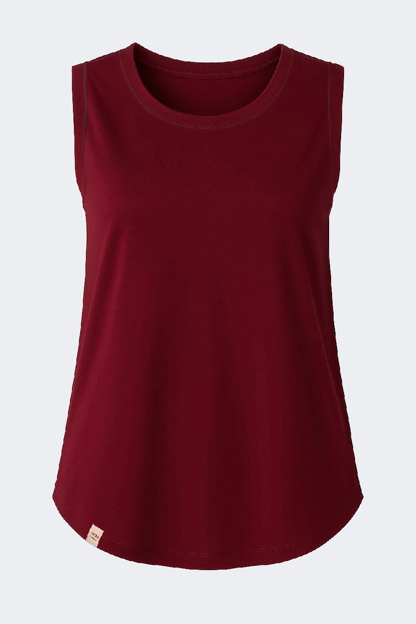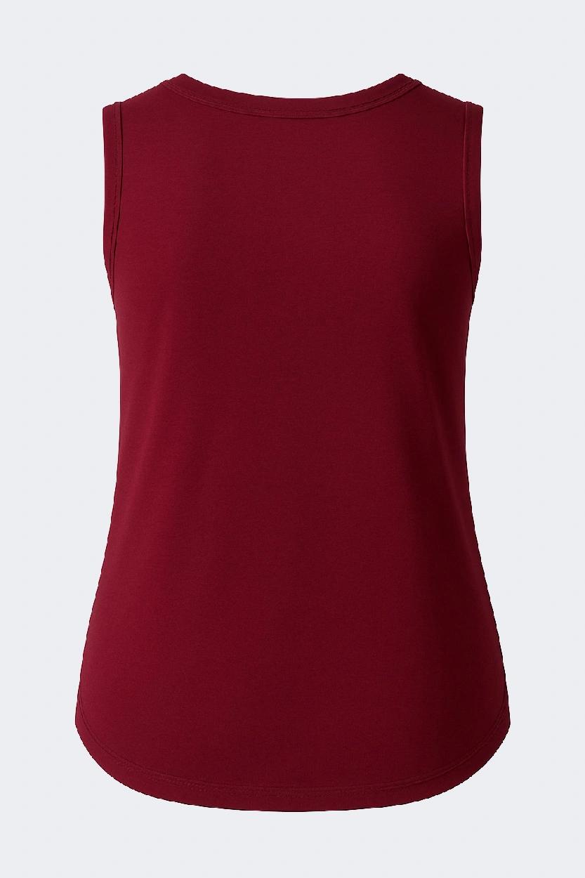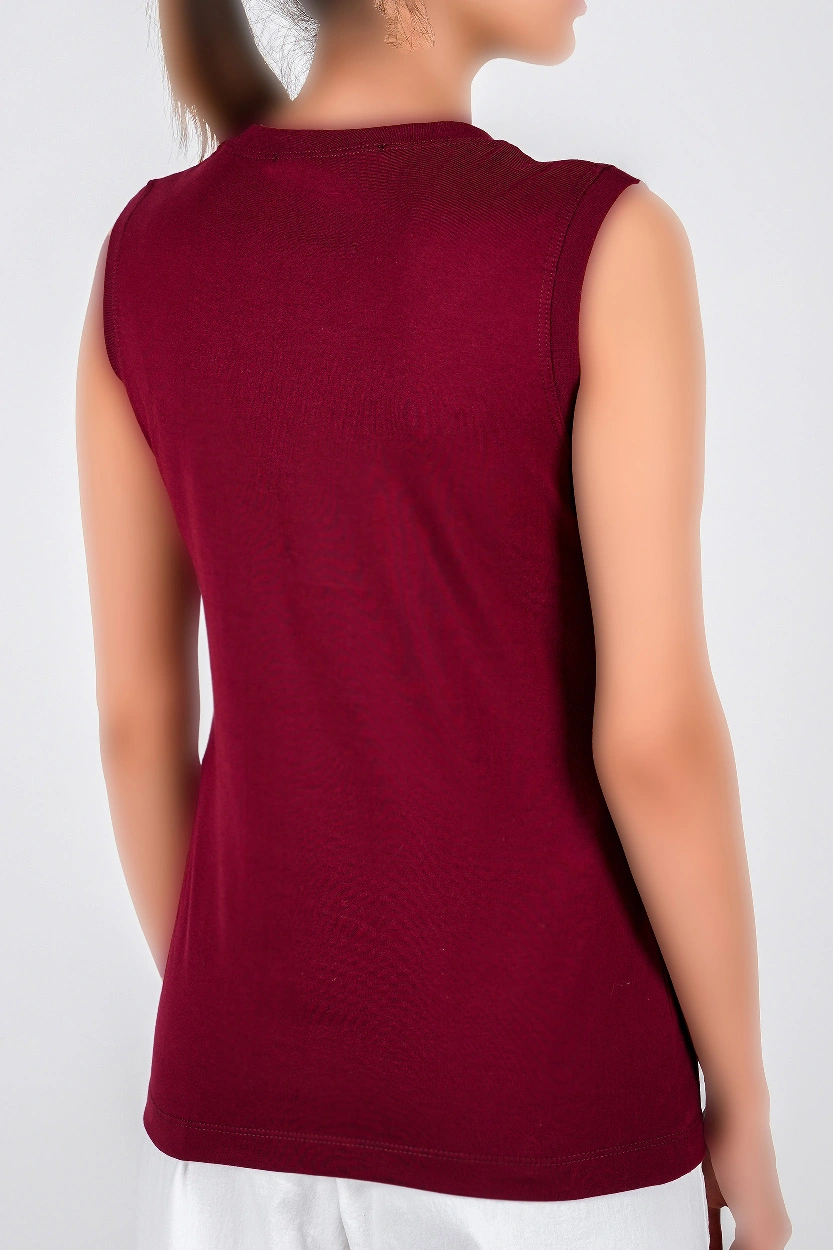 استایل شیک: تاپ زرشکی ساده + شلوار کتان مشکی راسته + صندل پاشنهبلند.