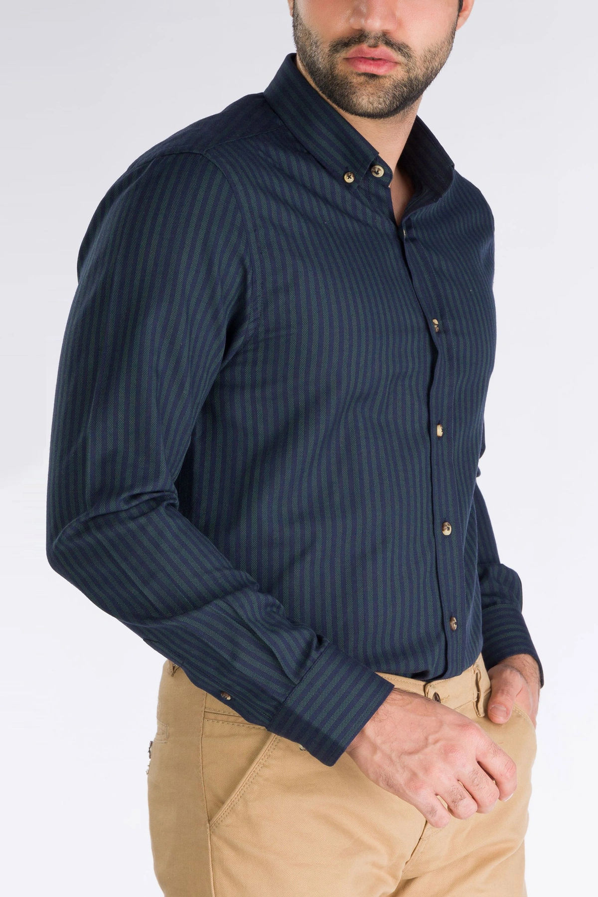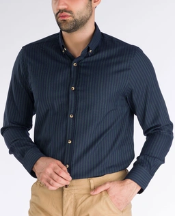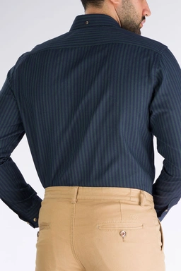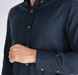 خرید پیراهن آستین بلند مردانه پیراهن پلی استر - پنبه با زیر دست لطیف و مقاوم در برابر چروک. طرح راه راه و یقه برگردان دکمه دار می باشد بدون جیب استایل پیراهن معمولی یا رگولار است.