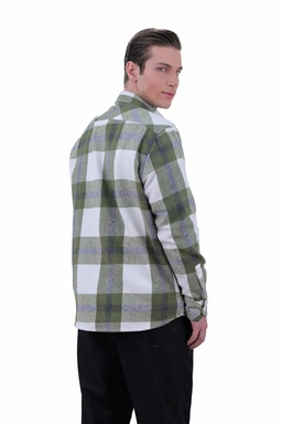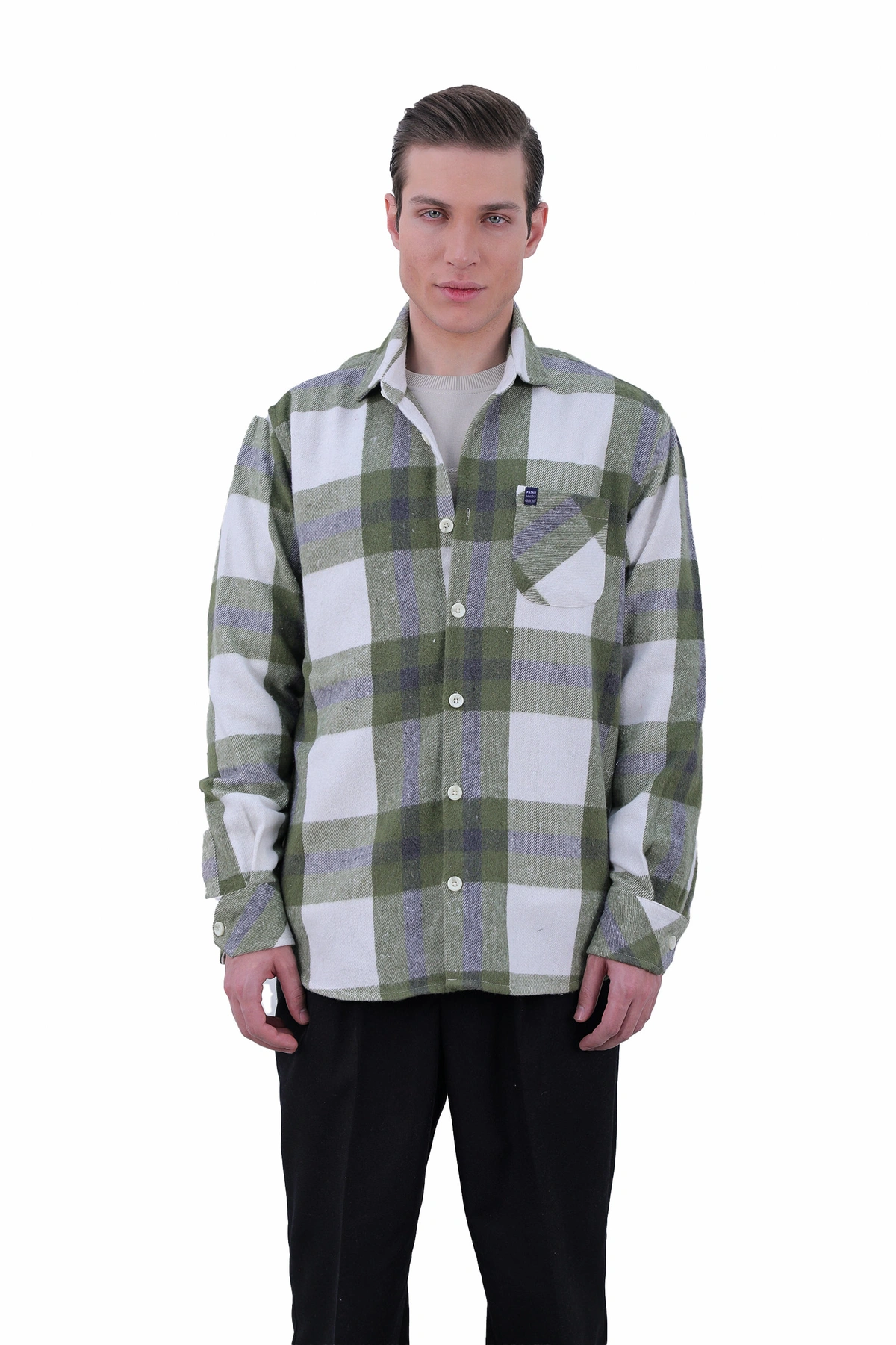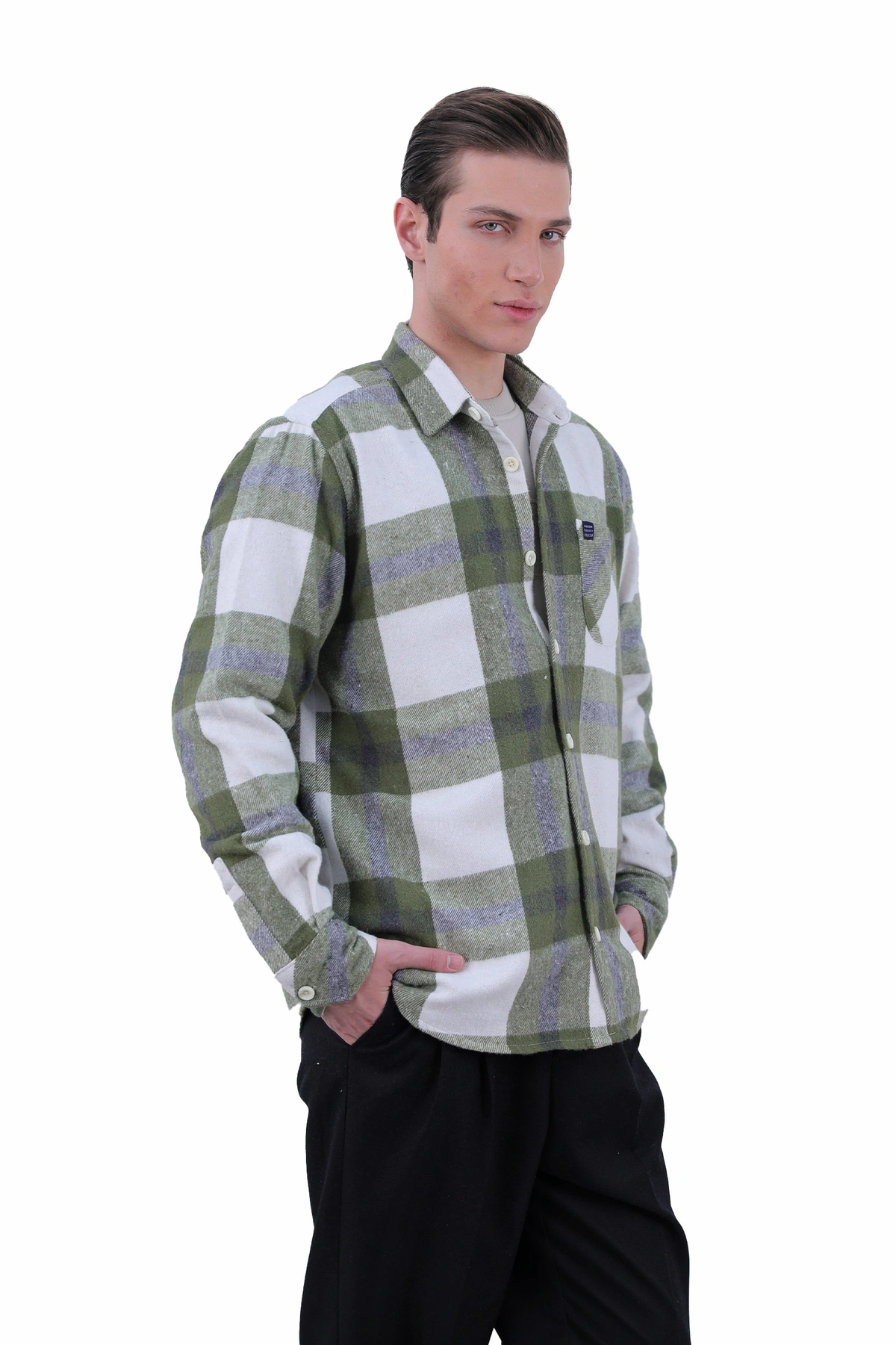 پیراهن پشمی مردانه تک جیب با یقه برگردان. پیراهن مردانه پشمی از جنس 97 درصد پنبه و 3 درصد پشم می باشد. پیراهن ضخیم پاییزه و مناسب استفاده در فصول زمستان می باشد. پیران پشمی با استایل رگولار (معمولی) می باشد.