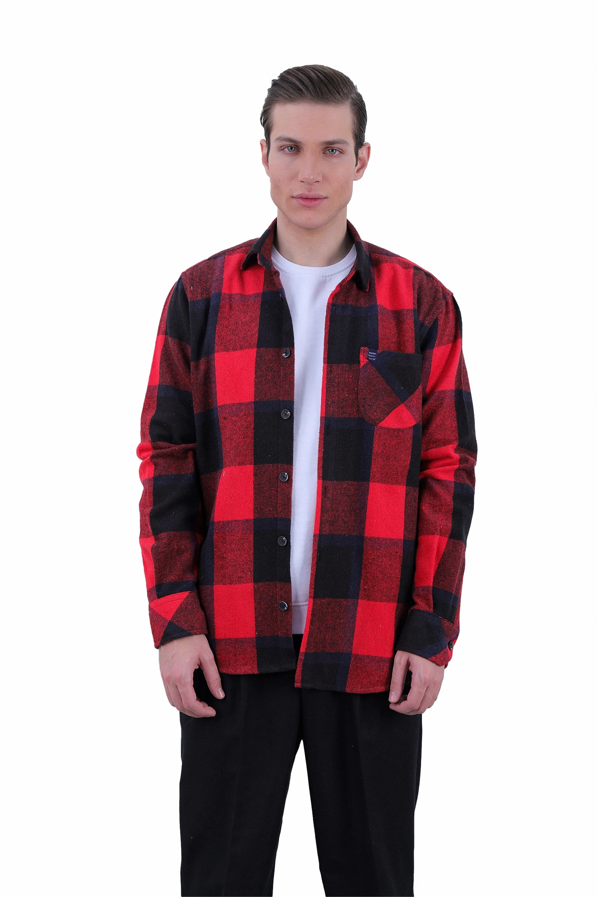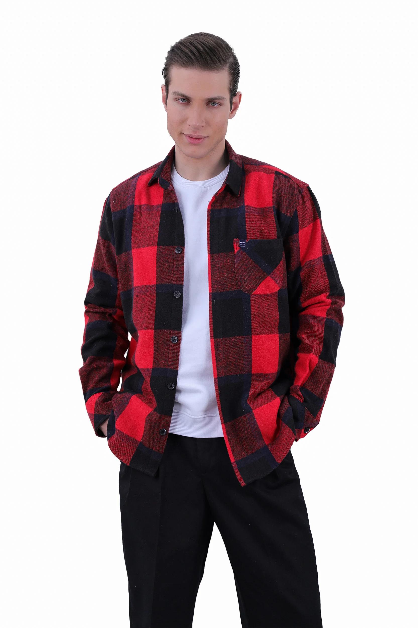پیراهن پشمی مردانه تک جیب با یقه برگردان. پیراهن مردانه پشمی از جنس 97 درصد پنبه و 3 درصد پشم می باشد. پیراهن ضخیم پاییزه و مناسب استفاده در فصول زمستان می باشد. پیران پشمی با استایل رگولار (معمولی) می باشد.