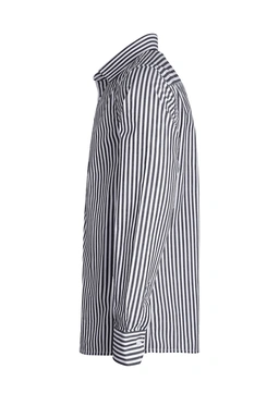 پیراهن آستین بلند مردانه مدل کلاسیک از جنس صد در صد پنبه نخی (زیردست بسیار لطیف) می باشد ، پیراهن یقه برگردان و استایل (مدل) کلاسیک میباشد ، طرح پیراهن راه راه پهن می باشد ، مناسب استفاده مهمانی ، اداری و روزمره می باشد.