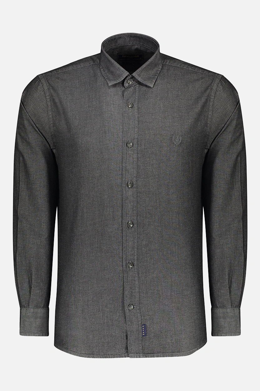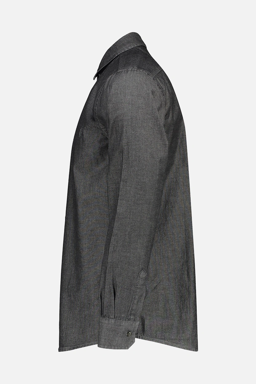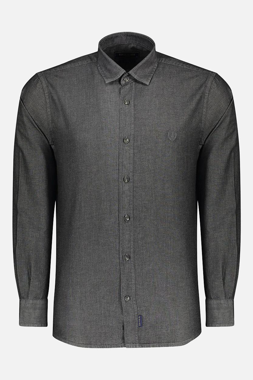 ✅ پیراهن جین آستین بلند مردانه رنگ طوسی تیره با طراحی ساده، کیفیت بالا و قابلیت ست شدن با انواع استایلها، انتخابی ماندگار برای کمد هر آقاست.