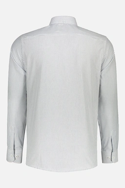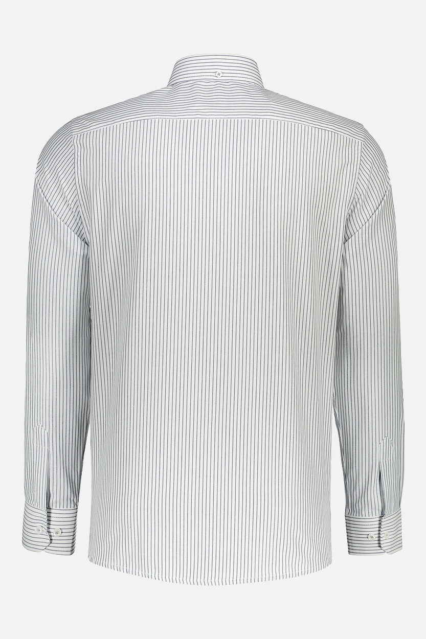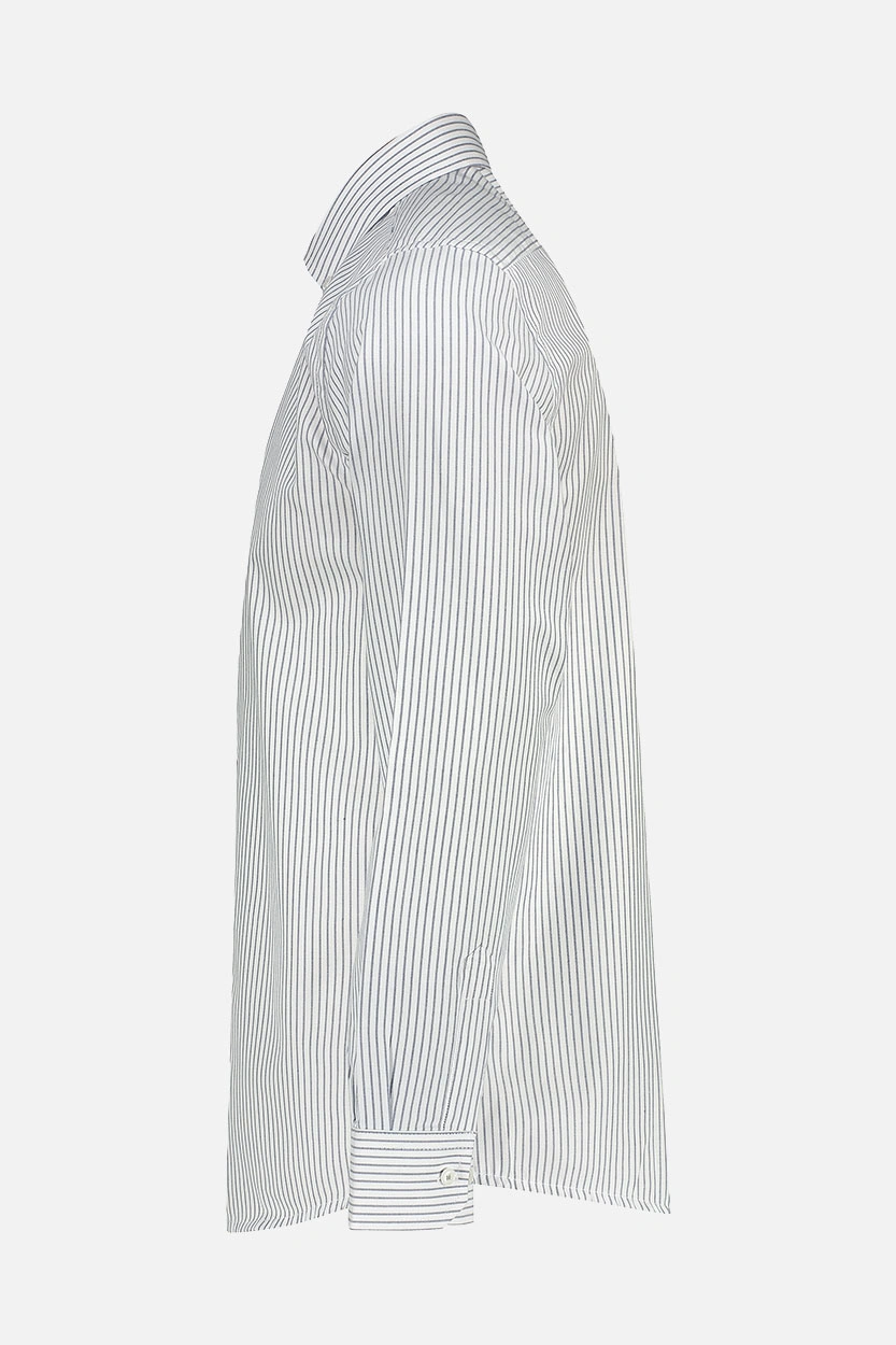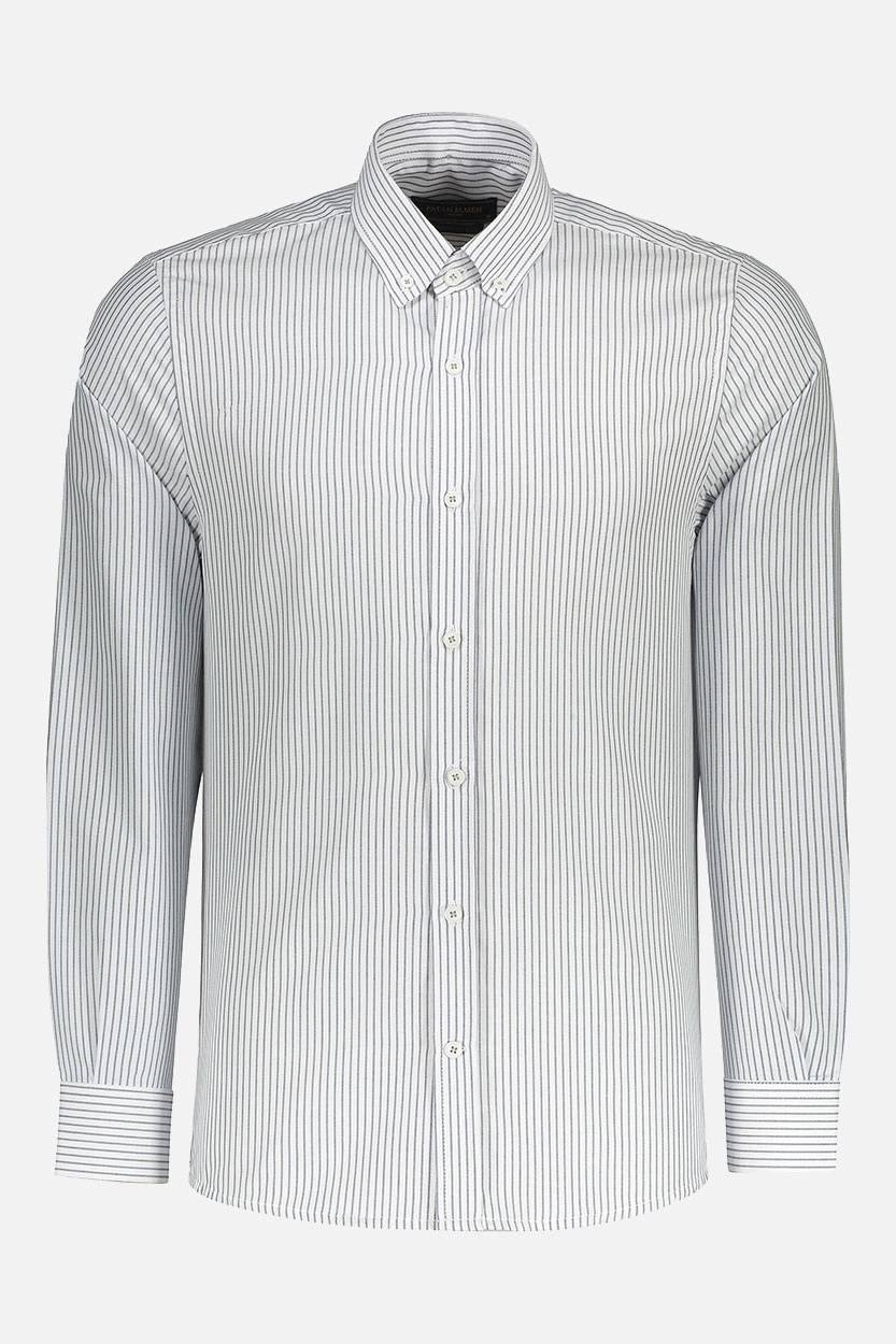 پیراهن سفید راهراه مشکی: ایدهآل برای استایل رسمی با کتوشلوار تیره یا استایل کژوال با شلوار جین مشکی.
