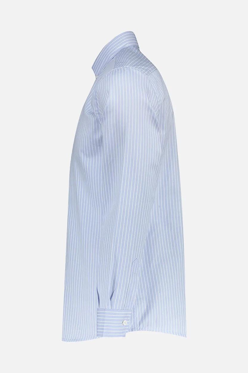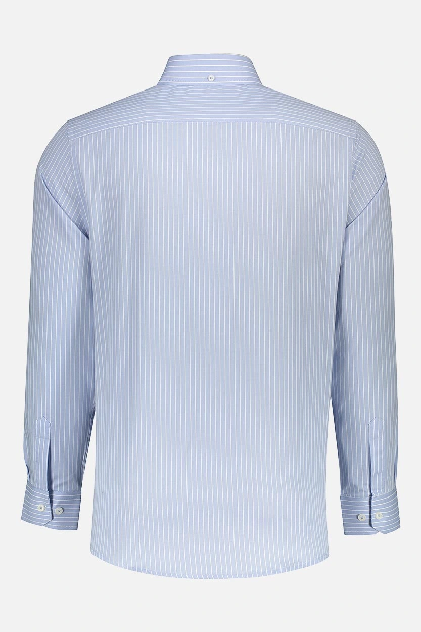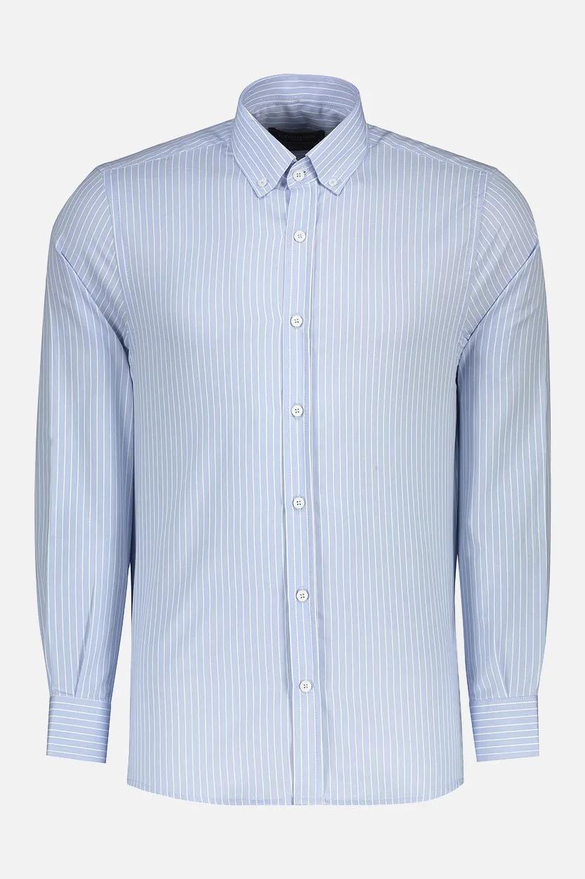 پیراهن آبی روشن راهراه سفید: انتخابی عالی برای استایل تابستانی با شلوار جین آبی روشن یا کرم.