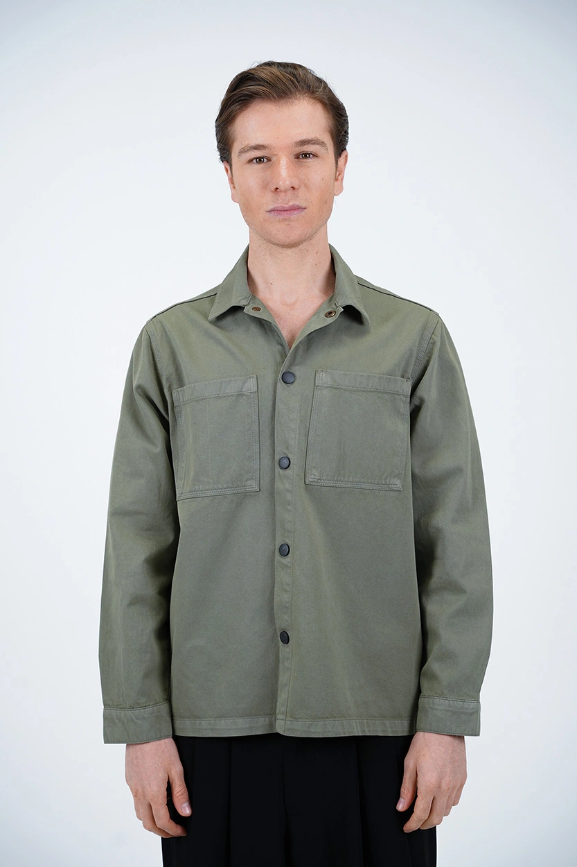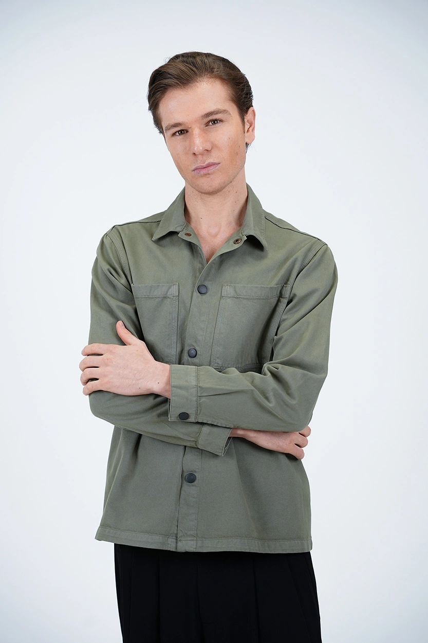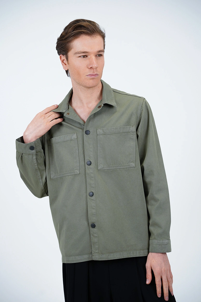 نحوه بسته شدن: دکمه قابلمهای (فشاری) که علاوه بر کاربردی بودن، جلوهای اسپرت و خاص به پیراهن میبخشد.