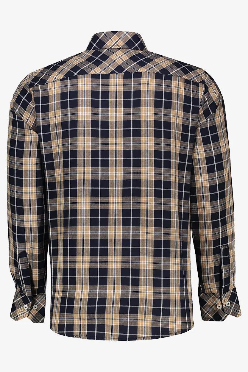 طرح چهارخانه از آن دسته الگوهایی است که هیچگاه از مد نمیافتد و همیشه نشانهای از استایل کلاسیک و مردانه محسوب میشود. طراحی یقه برگردان دکمهدار در کنار دوخت تمیز و دقیق، ظاهری مرتب و منظم به این پیراهن بخشیده است. نبود جیب نیز باعث شده طراحی آن سادهتر و قابل استفاده در موقعیتهای مختلف باشد؛ از قرارهای روزانه و محیط کار گرفته تا مهمانیهای غیررسمی.