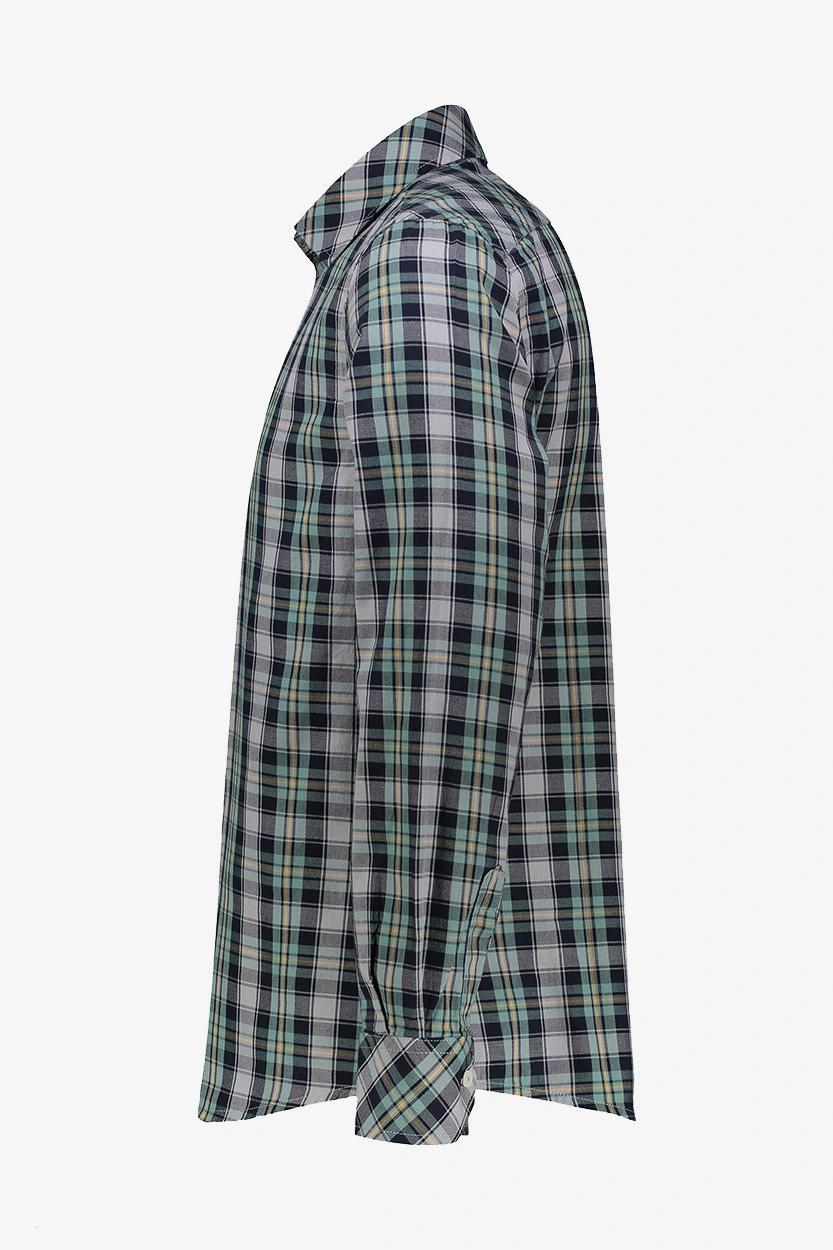 طرح چهارخانه از آن دسته الگوهایی است که هیچگاه از مد نمیافتد و همیشه نشانهای از استایل کلاسیک و مردانه محسوب میشود. طراحی یقه برگردان دکمهدار در کنار دوخت تمیز و دقیق، ظاهری مرتب و منظم به این پیراهن بخشیده است. نبود جیب نیز باعث شده طراحی آن سادهتر و قابل استفاده در موقعیتهای مختلف باشد؛ از قرارهای روزانه و محیط کار گرفته تا مهمانیهای غیررسمی.