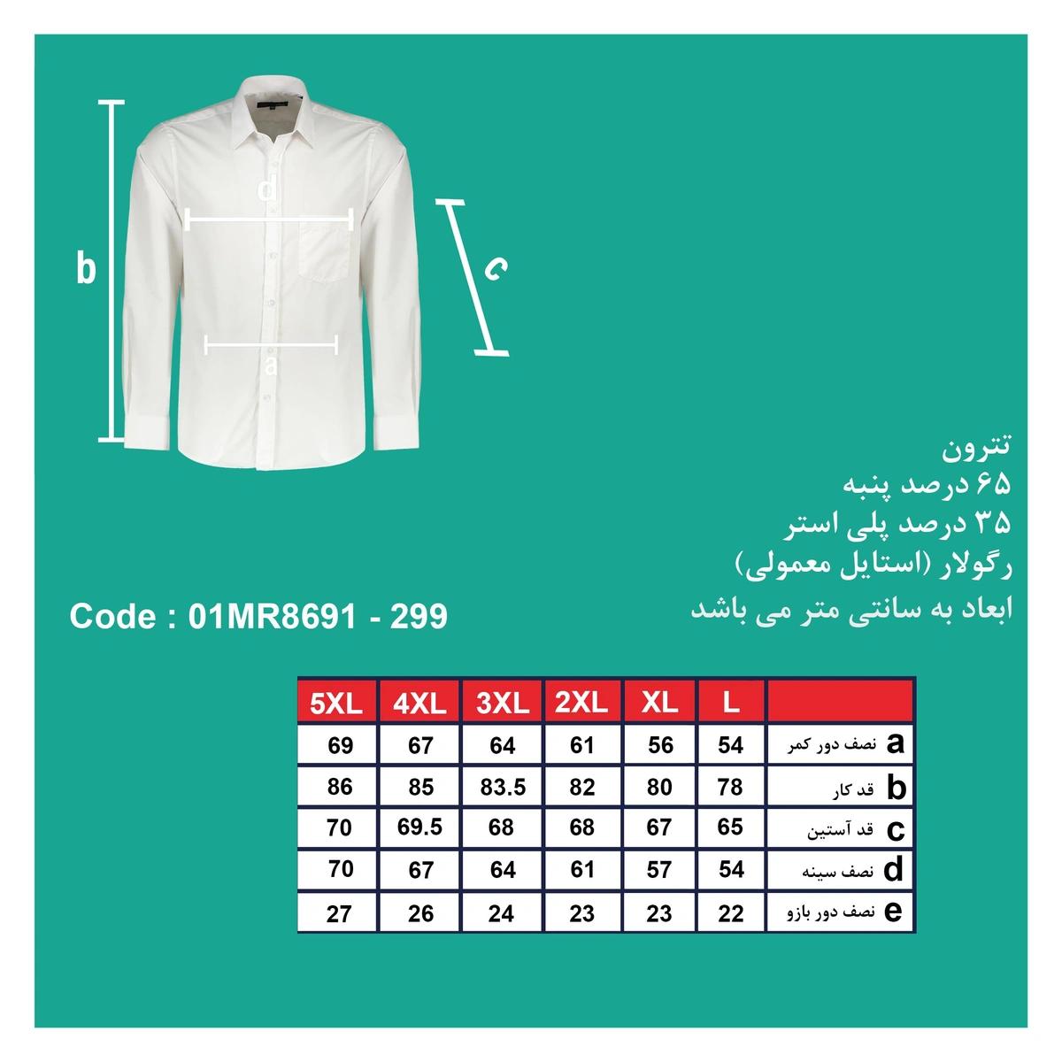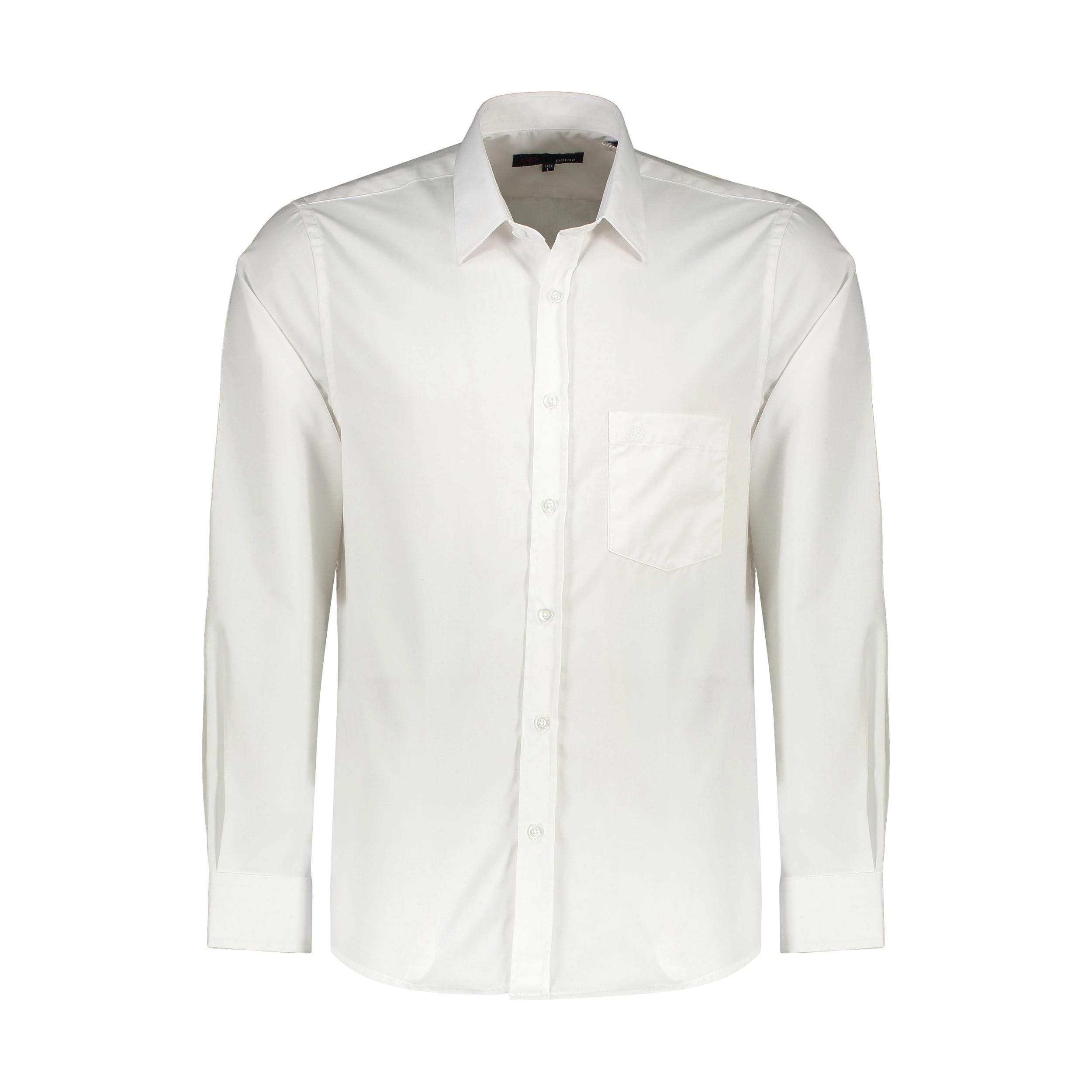 پیراهن آستین بلند مردانه رنگ سفید تولید پاتن جامه می باشد. جنس پیراهن تترون درجه 1 / 65 درصد پنبه -