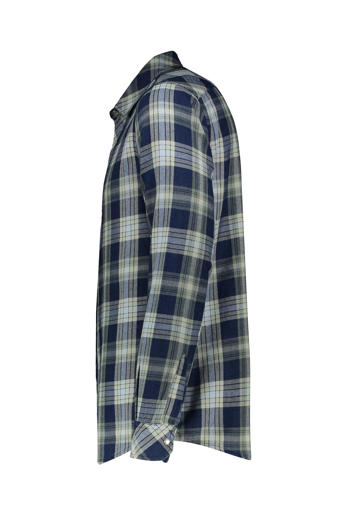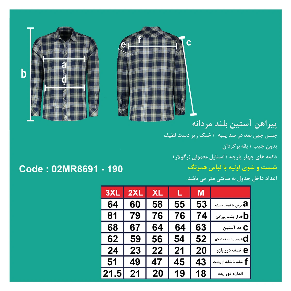 پیراهن آستین بلند مردانه ، پیراهن جین صد در صد پنبه (جین پنبه-پبنه) زیر دست بسیار لطیف با استایل رگولار می باشد. پیراهن یقه برگردان با دکمه های چهارپارچه.