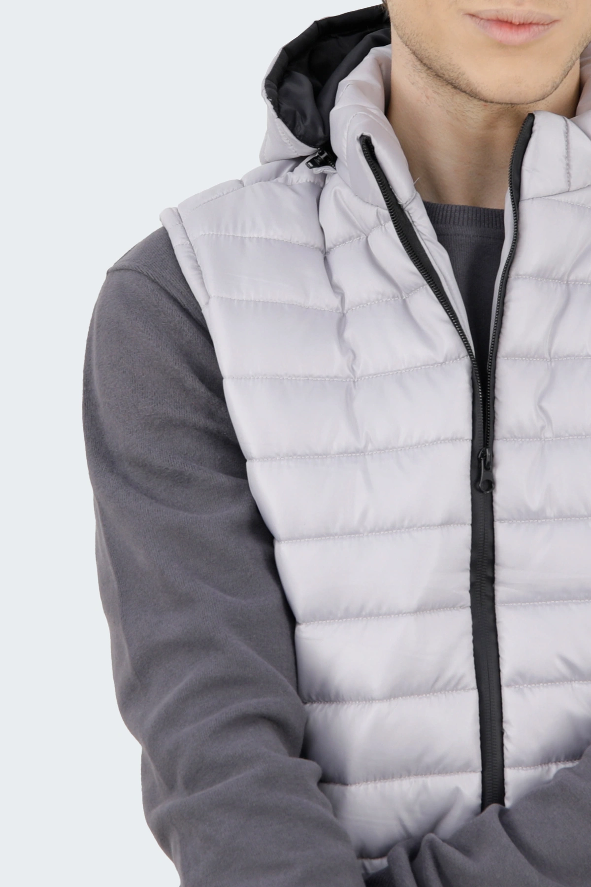 خرید پافر مردانه نیمه براق رنگ طوسی،  ژیله و جلیقه پاییزه مردانه ارسال رایگان.