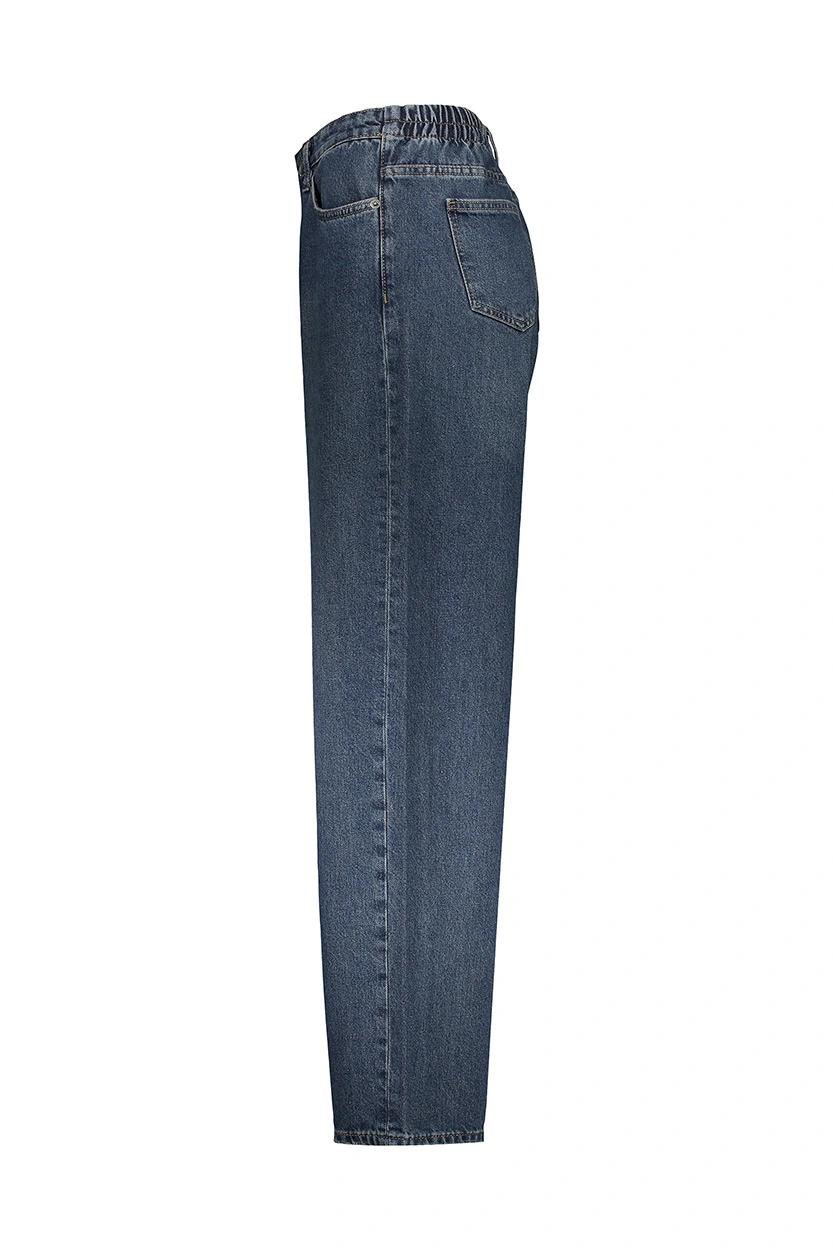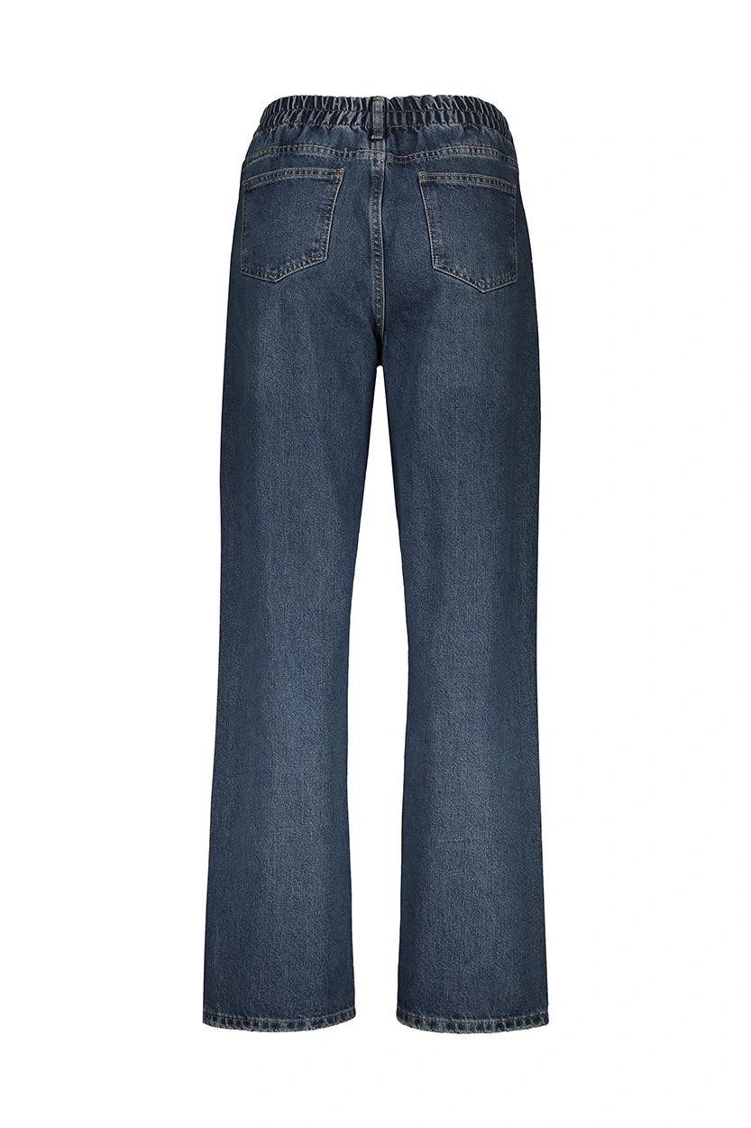 این شلوار از پارچه جین 100٪ با کیفیت بالا تهیه شده که بدون کش است و حس کلاسیک جین را بهخوبی منتقل میکند. استایل نیم بگ با آزاد بودن در قسمت ران و پا، راحتی زیادی برای استفاده روزمره فراهم میکند و پشت کمر کشی آن، فیت بهتری روی بدن ایجاد مینماید. بسته شدن با دکمه و زیپ نیز حس ساختارمند بودن به این طراحی میدهد.