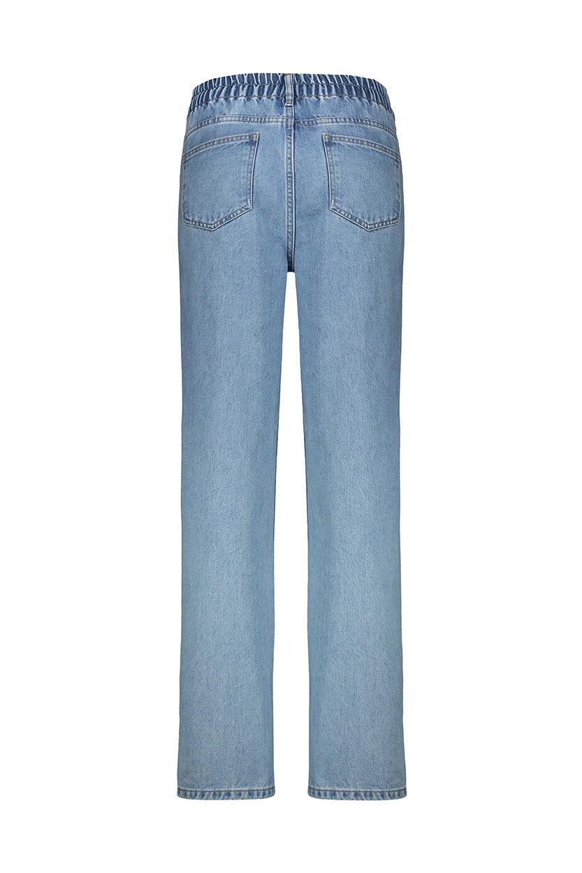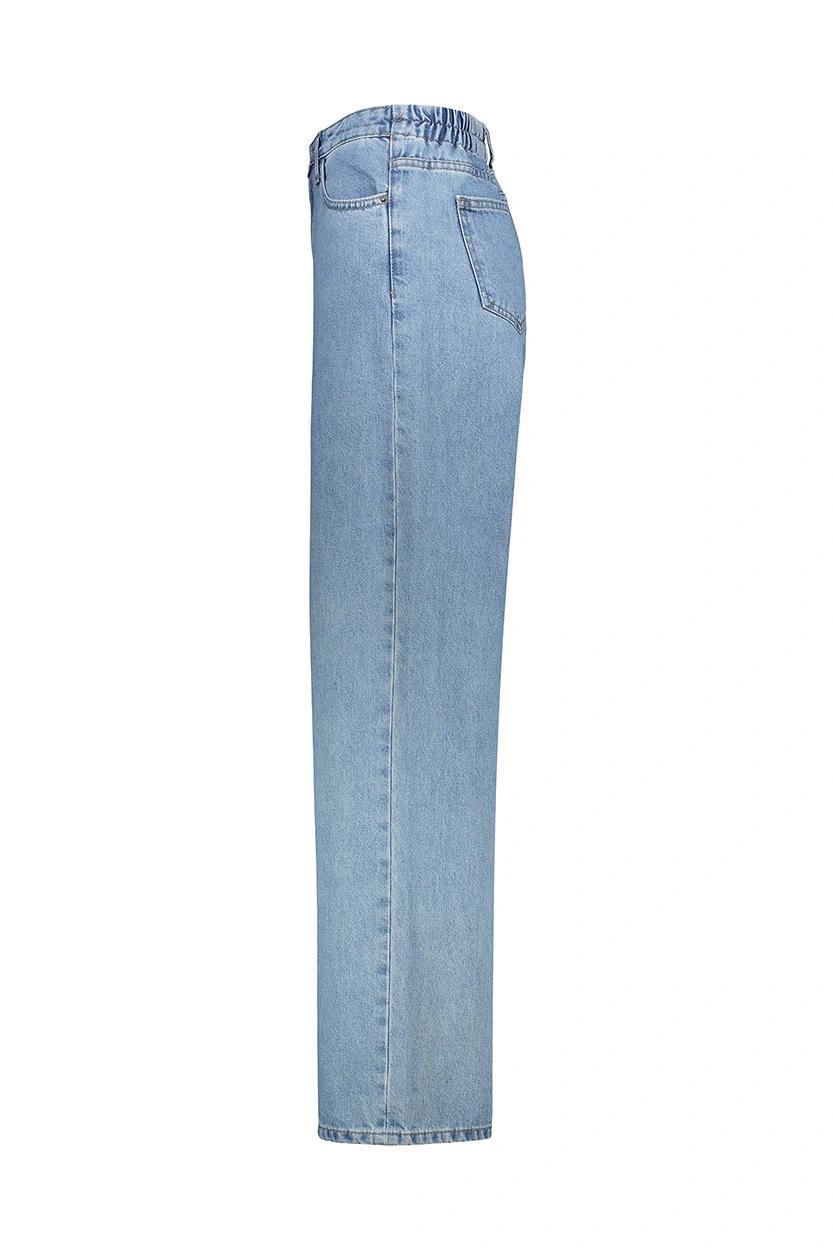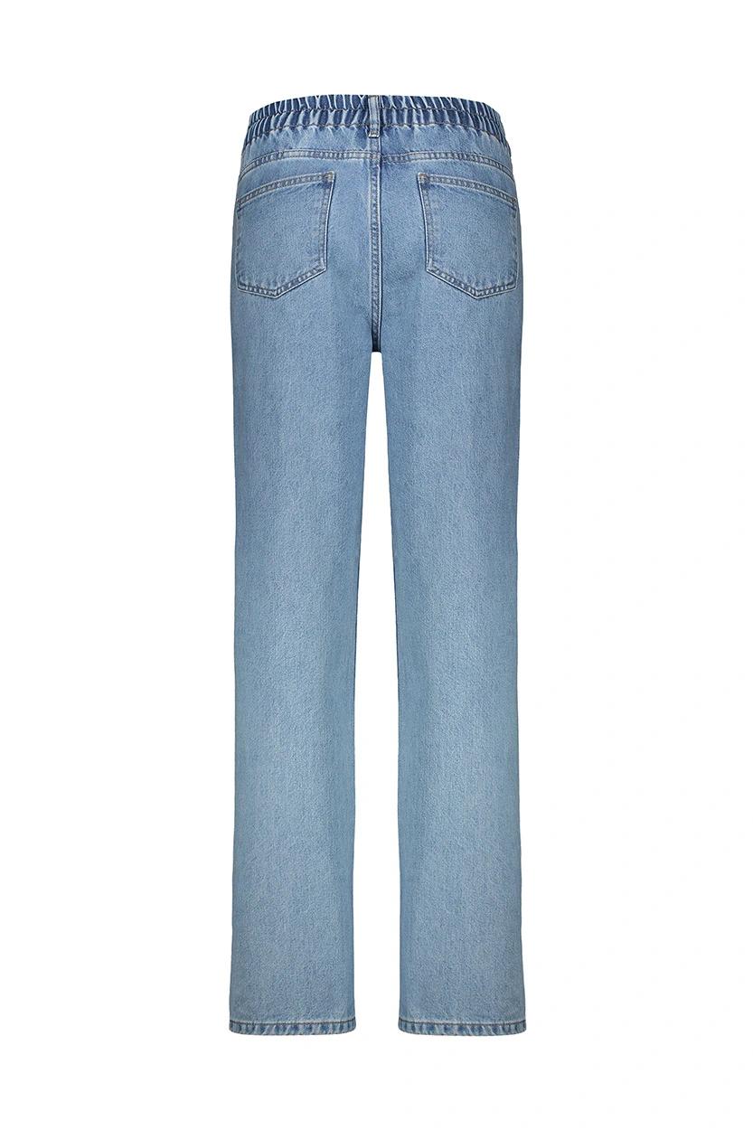 این شلوار از پارچه جین 100٪ با کیفیت بالا تهیه شده که بدون کش است و حس کلاسیک جین را بهخوبی منتقل میکند. استایل نیم بگ با آزاد بودن در قسمت ران و پا، راحتی زیادی برای استفاده روزمره فراهم میکند و پشت کمر کشی آن، فیت بهتری روی بدن ایجاد مینماید. بسته شدن با دکمه و زیپ نیز حس ساختارمند بودن به این طراحی میدهد.