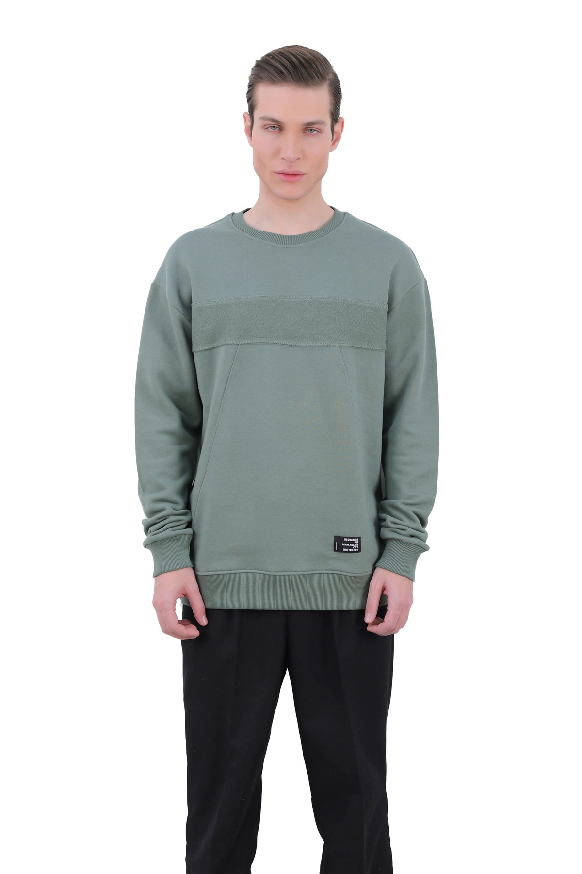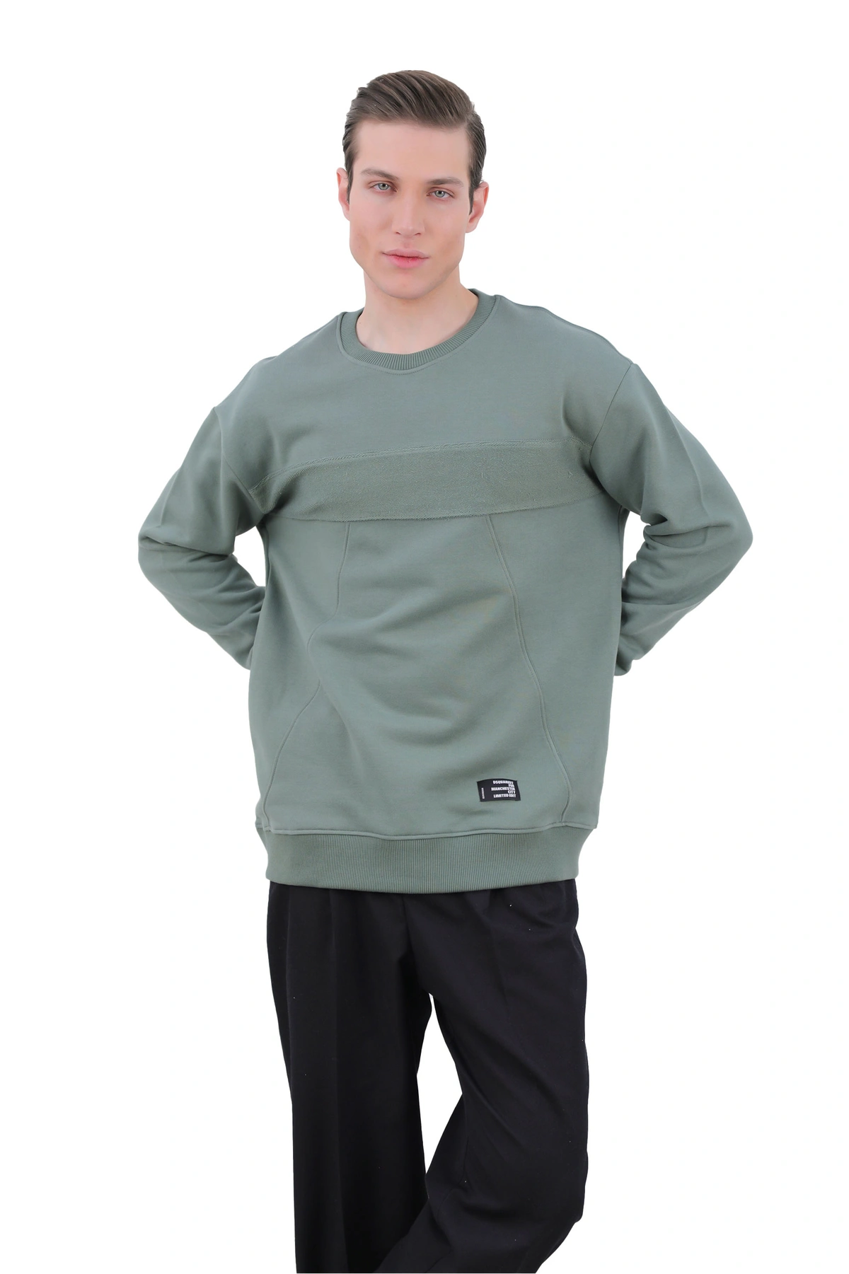سویشرت یقه گرد مردانه از جنس دورس  - صد در صد پنبه (داخل سویشرت کرکی) می باشد ، سویشرت با ضخامت متوسط گرم مناسب فصول سرد و نیمه سرد می باشد. یقه کشبافت و سر آستین ها کشبافت می باشد. دارای تک جیب جانبی نیز می باشد.