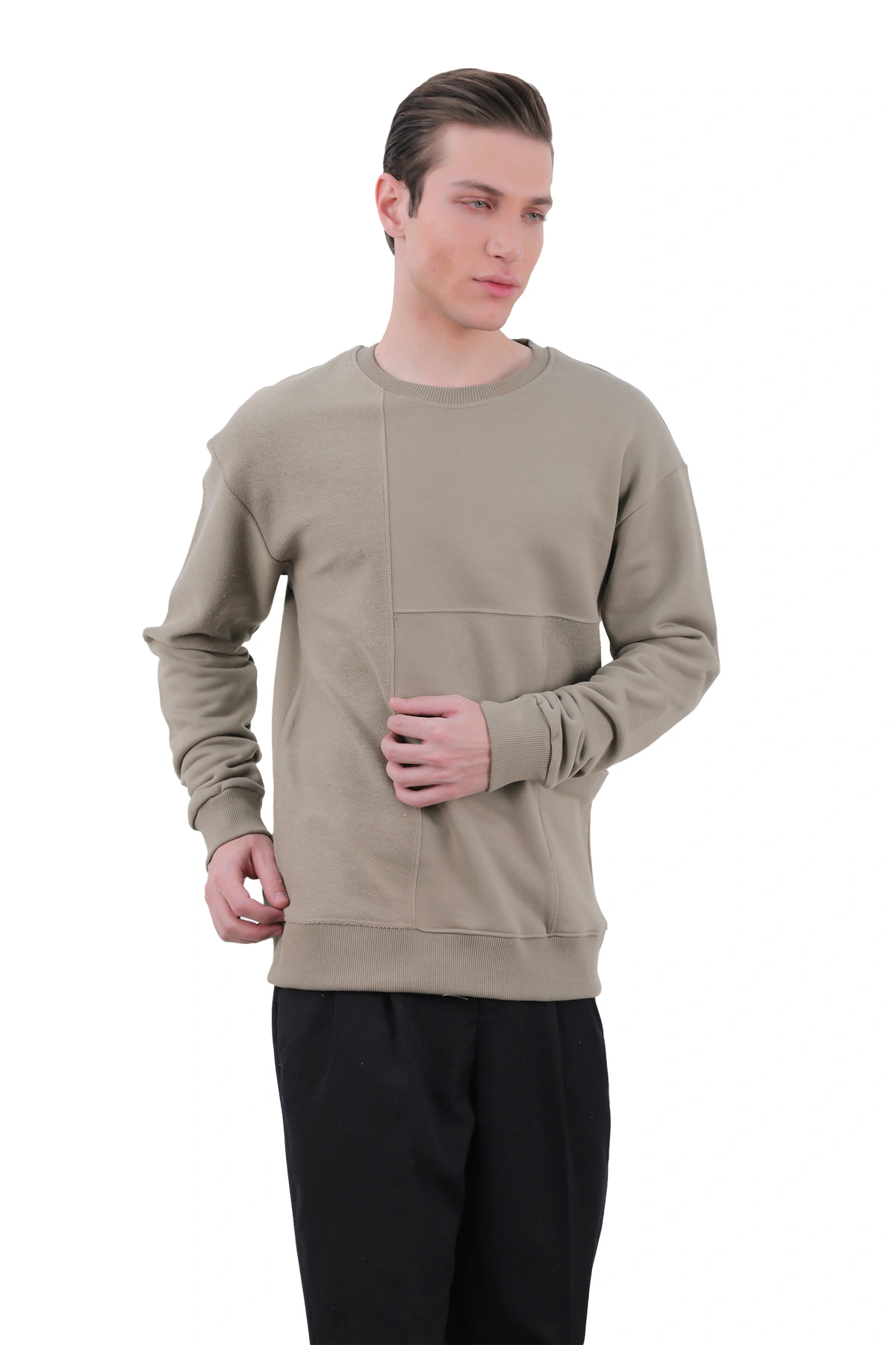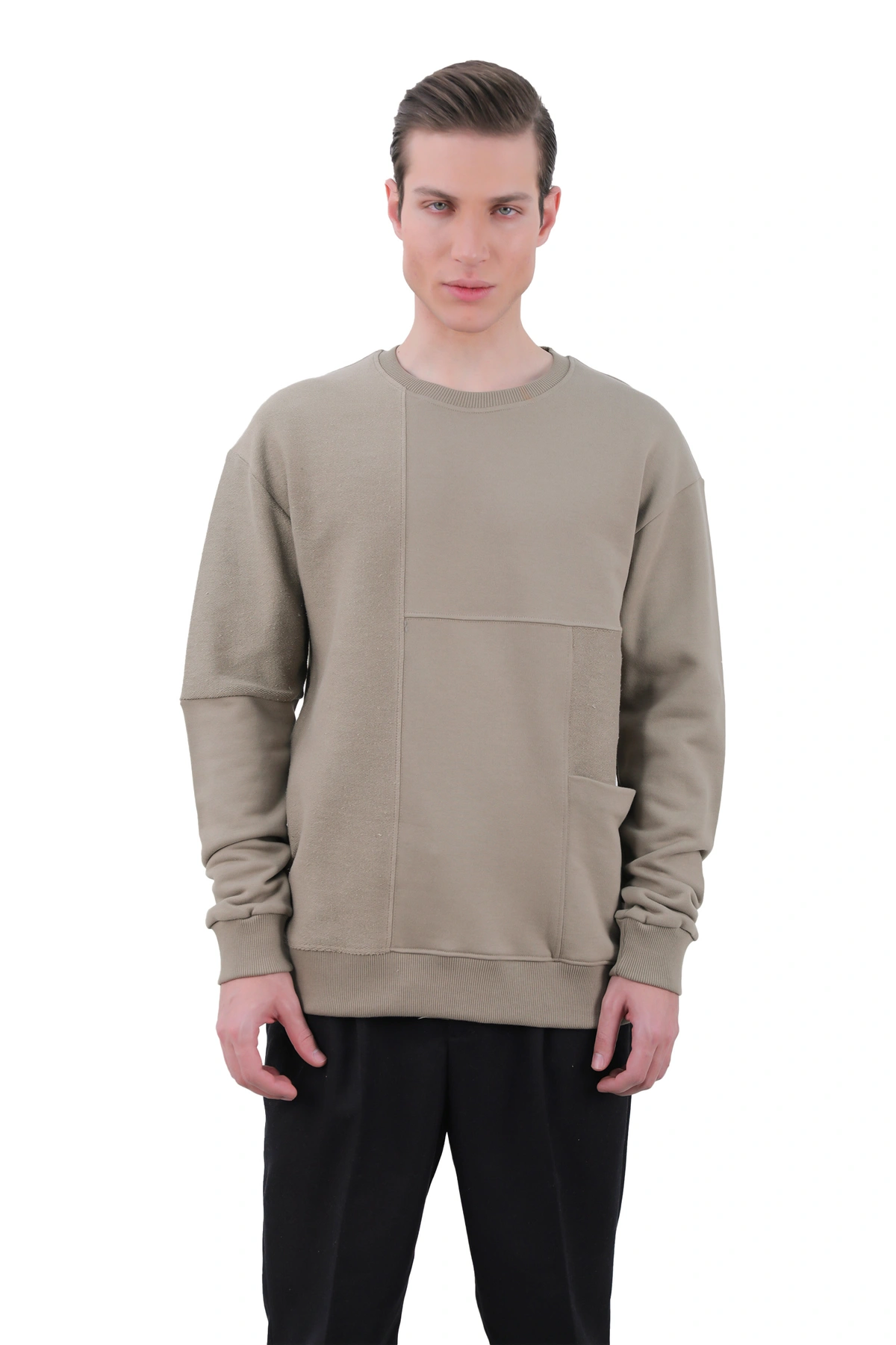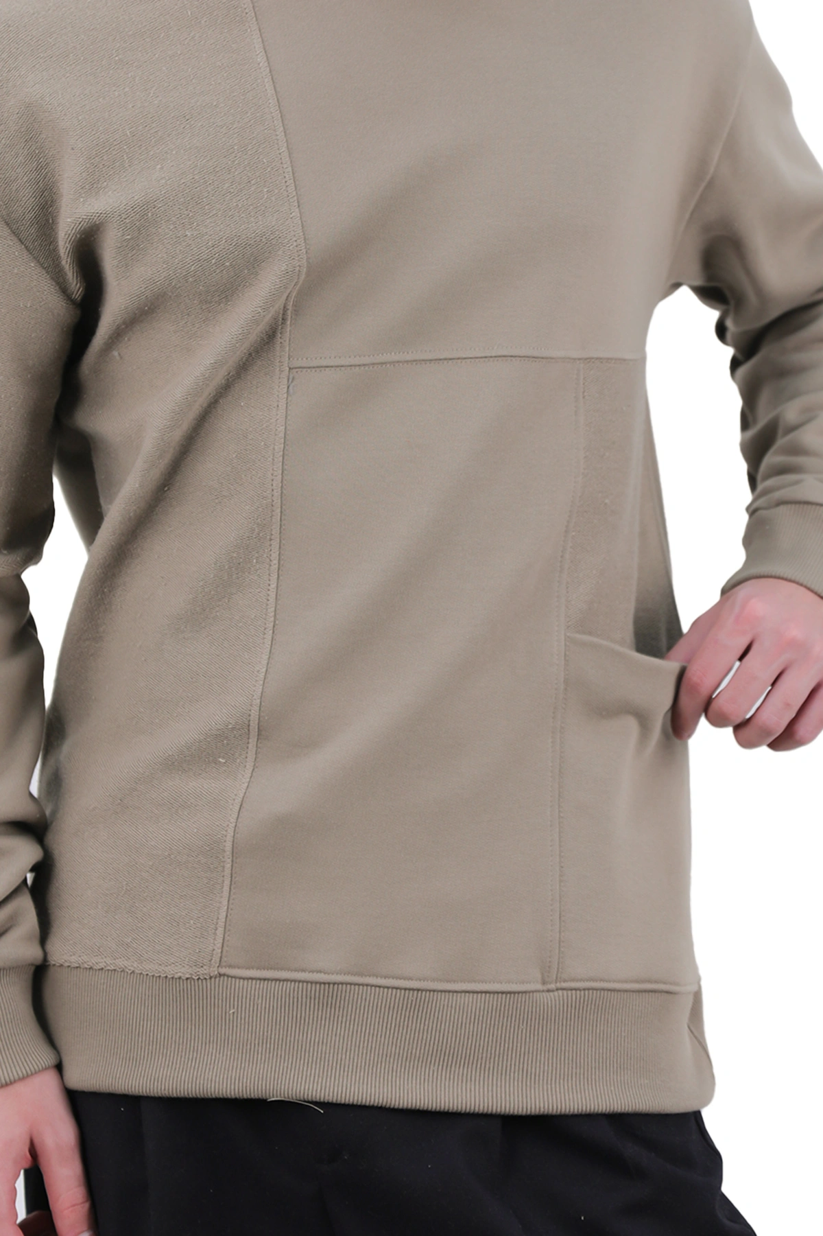 سویشرت یقه گرد مردانه از جنس دورس  - صد در صد پنبه (داخل سویشرت کرکی) می باشد ، سویشرت با ضخامت متوسط گرم مناسب فصول سرد و نیمه سرد می باشد. یقه کشبافت و سر آستین ها کشبافت می باشد. دارای تک جیب جانبی نیز می باشد.