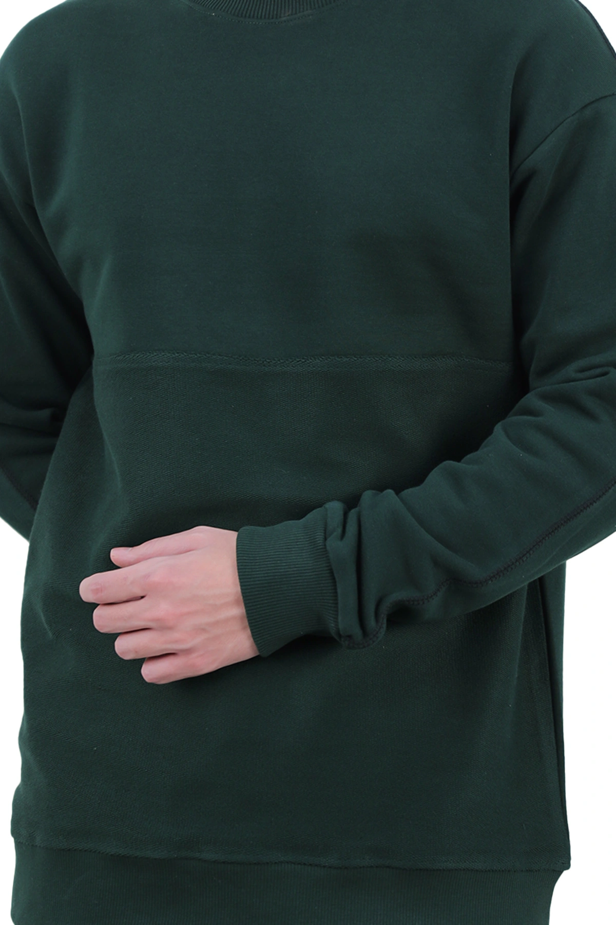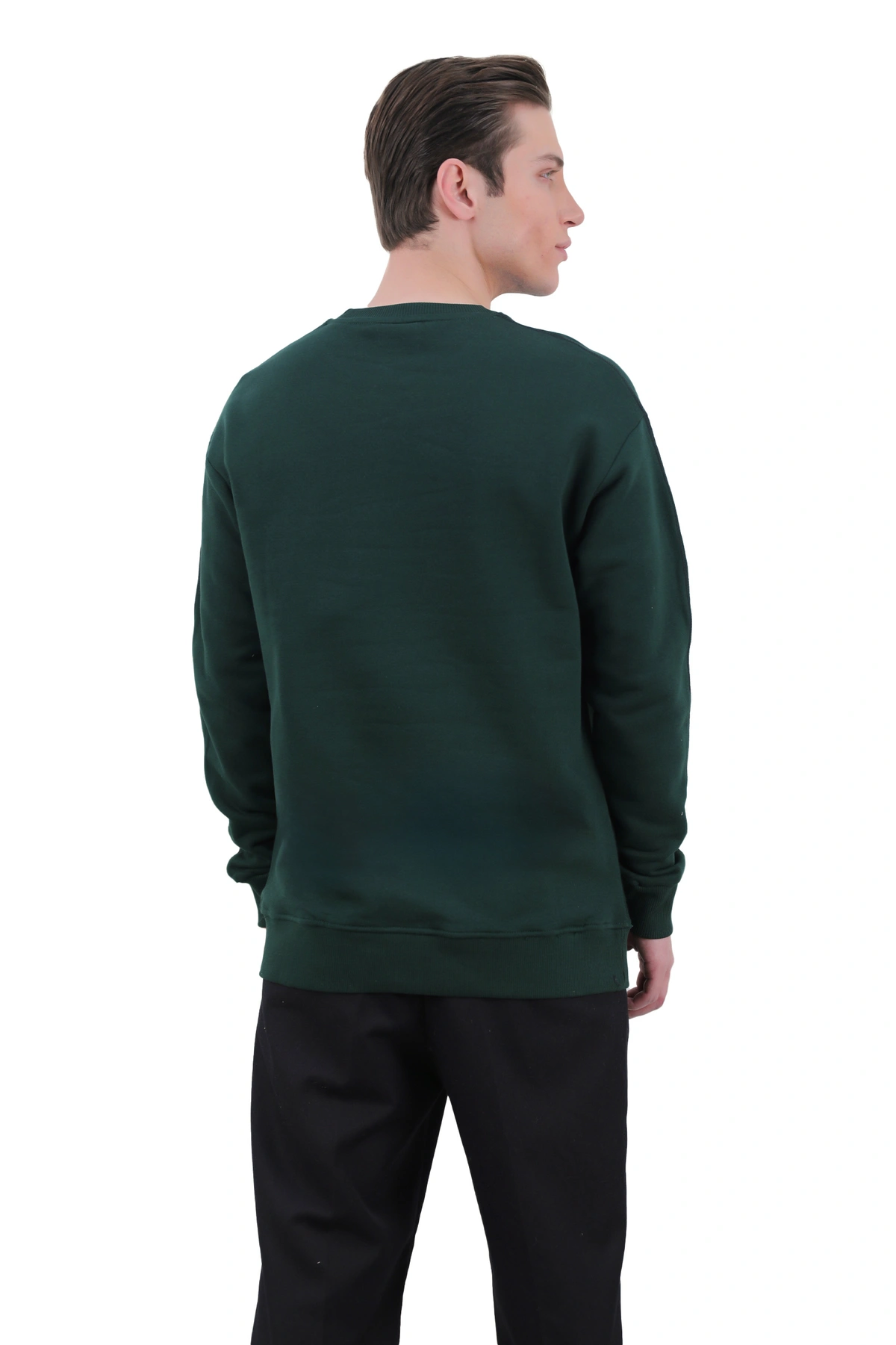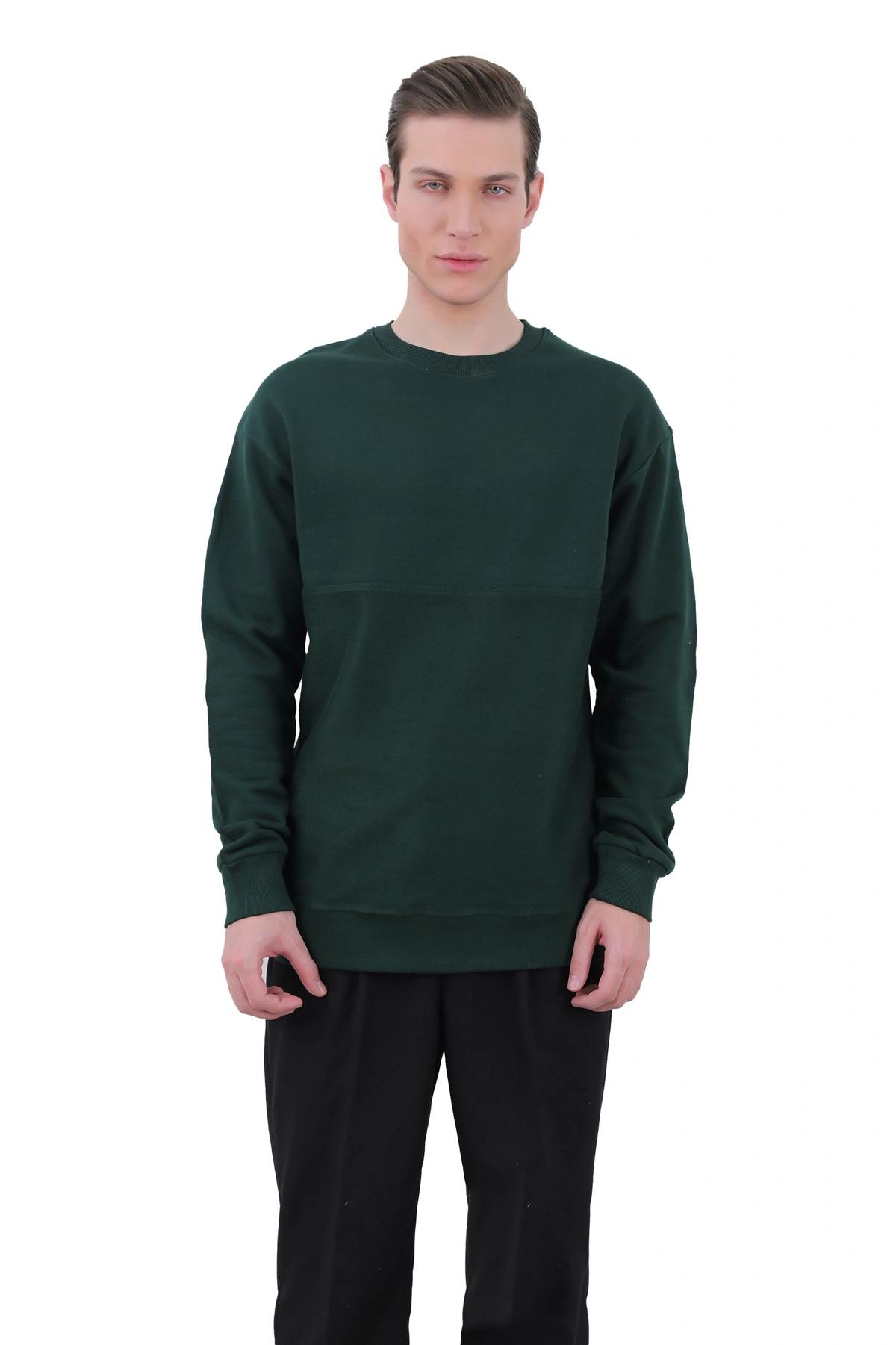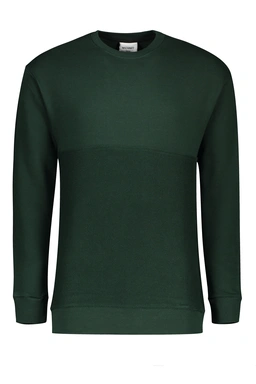 سویشرت یقه گرد مردانه از جنس دورس - صد در صد پنبه (داخل سویشرت کرکی) می باشد ، سویشرت با ضخامت متوسط گرم مناسب فصول سرد و نیمه سرد می باشد. یقه کشبافت و سر آستین ها کشبافت می باشد. دارای تک جیب جانبی نیز می باشد.