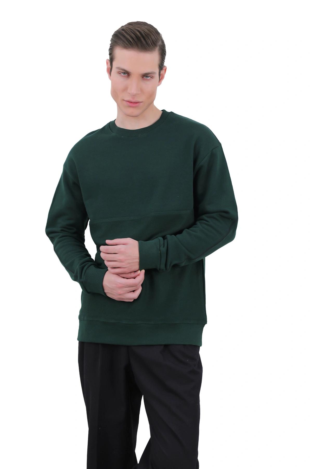 سویشرت یقه گرد مردانه از جنس دورس  - صد در صد پنبه (داخل سویشرت کرکی) می باشد ، سویشرت با ضخامت متوسط گرم مناسب فصول سرد و نیمه سرد می باشد. یقه کشبافت و سر آستین ها کشبافت می باشد. دارای تک جیب جانبی نیز می باشد.
