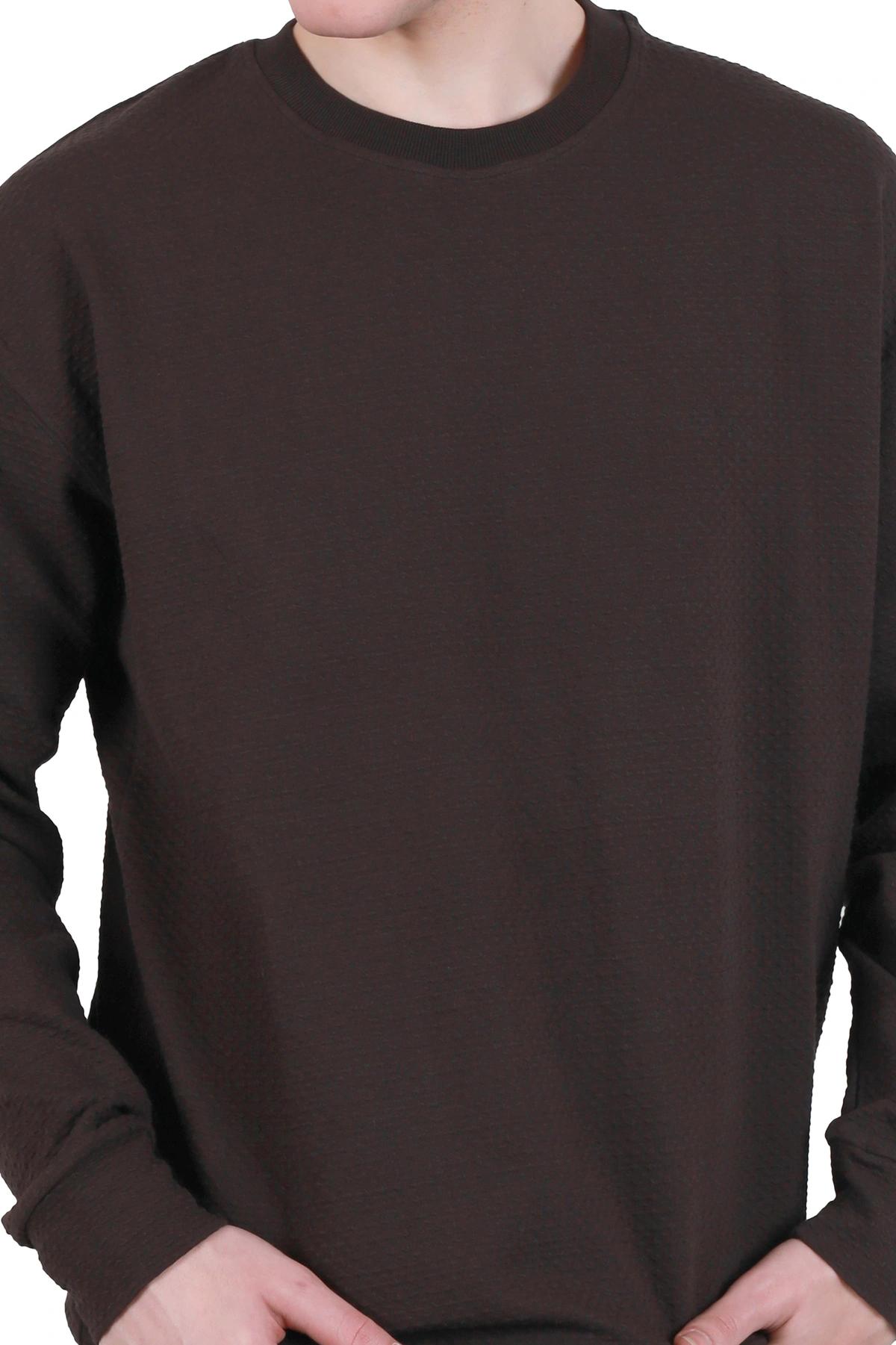 تیشرت آستین بلند مردانه یقه گرد. جنس 65 درصد پنبه - 35 درصد پلی استر زیر دست لطیف با ضخامت متوسط مناسب استفاده در فصول نیمه سرد و سرد می باشد. یقه گرد کشبافت ، استایل تی شرت معمولی نسبتاً آزاد می باشد.