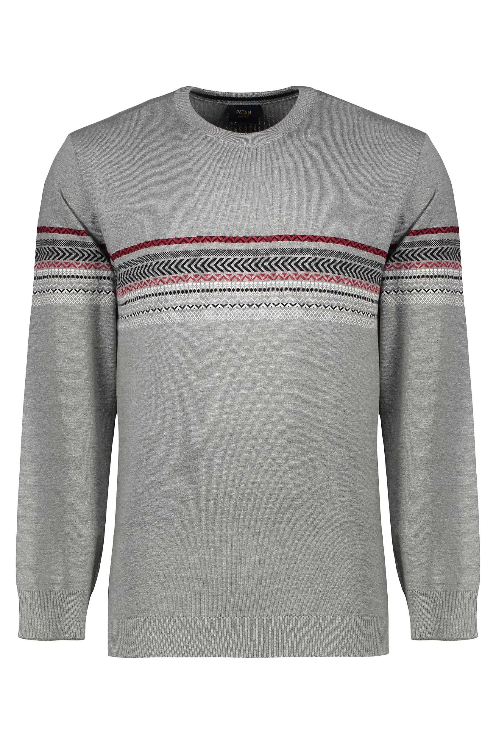 خرید پلیور بافت مردانه یقه گرد طرح دار ، جنس بافت صد در صد پنبه نخی می باشد، زیر دست لطیف با ضخامت مناسب ، سر آستین و کمر کشبافت ، گرم مناسب استفاده در فصول پاییز و زمستان.