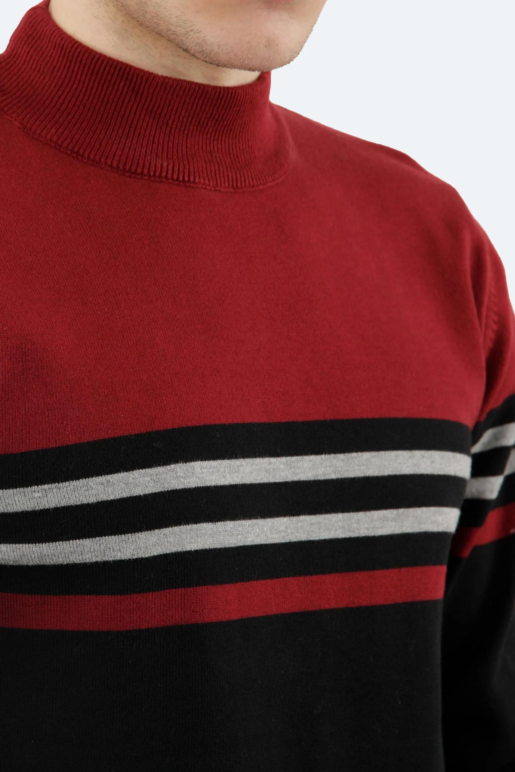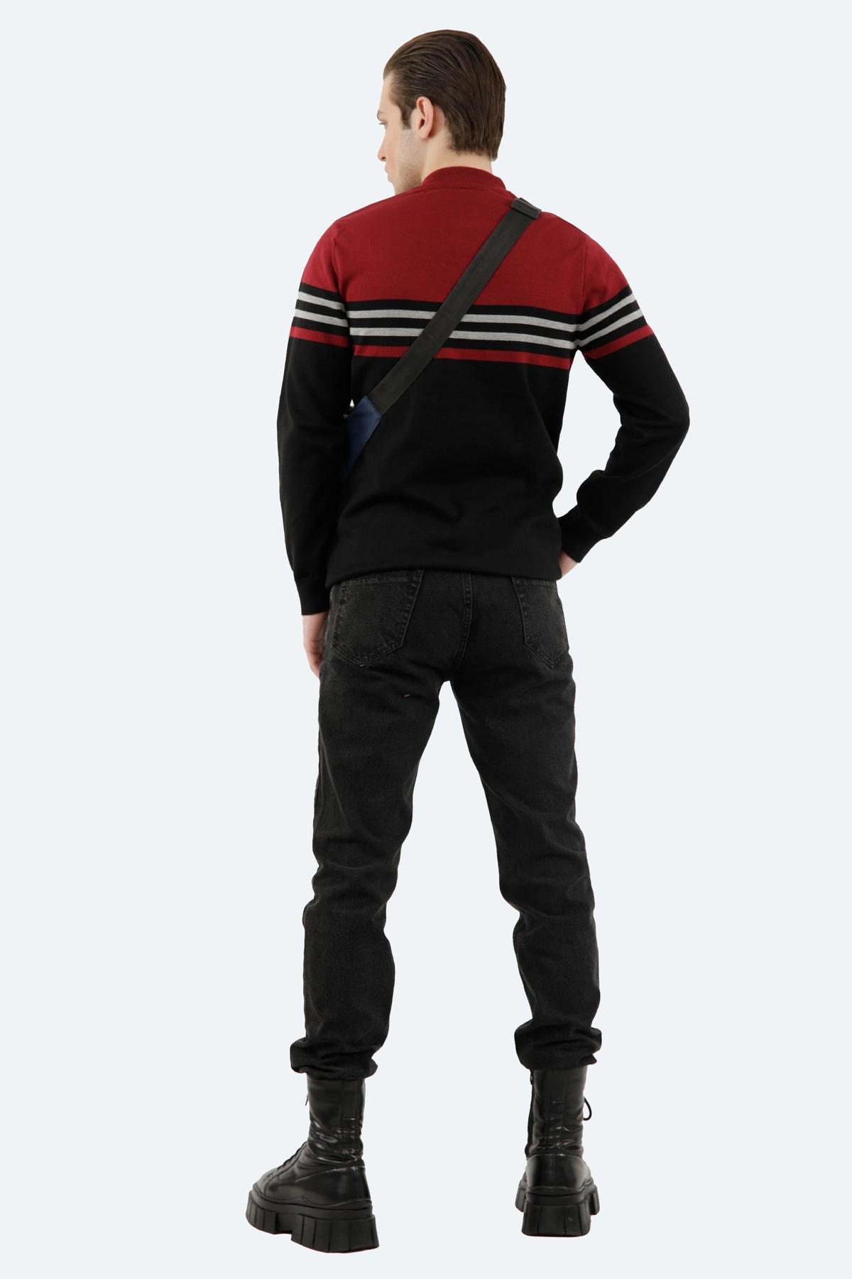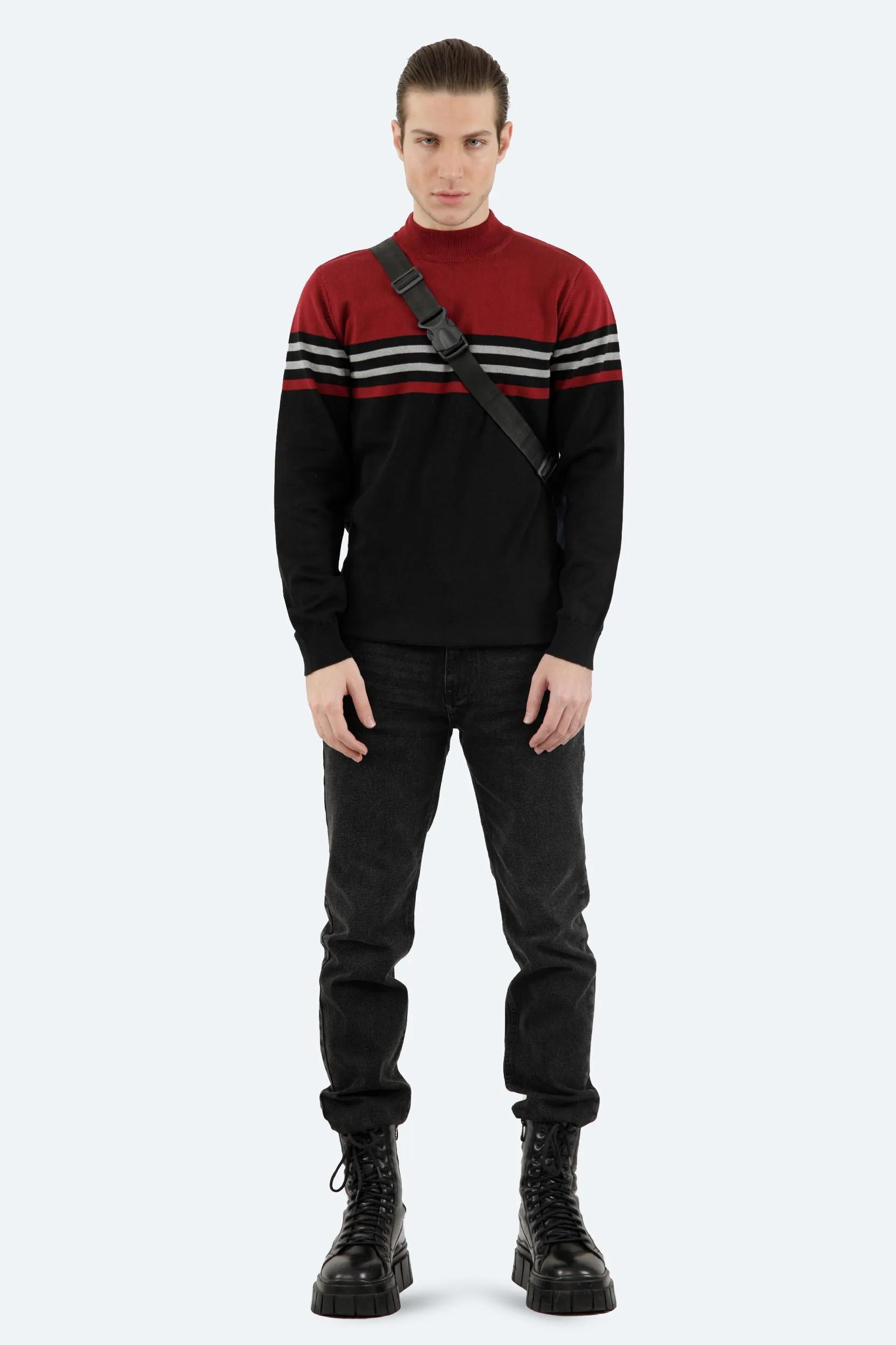 پلیور بافت مردانه ، یقه گرد سر آستین دور کمر و یقه کشبافت، رنگ مشکی قرمز طرح دار.
