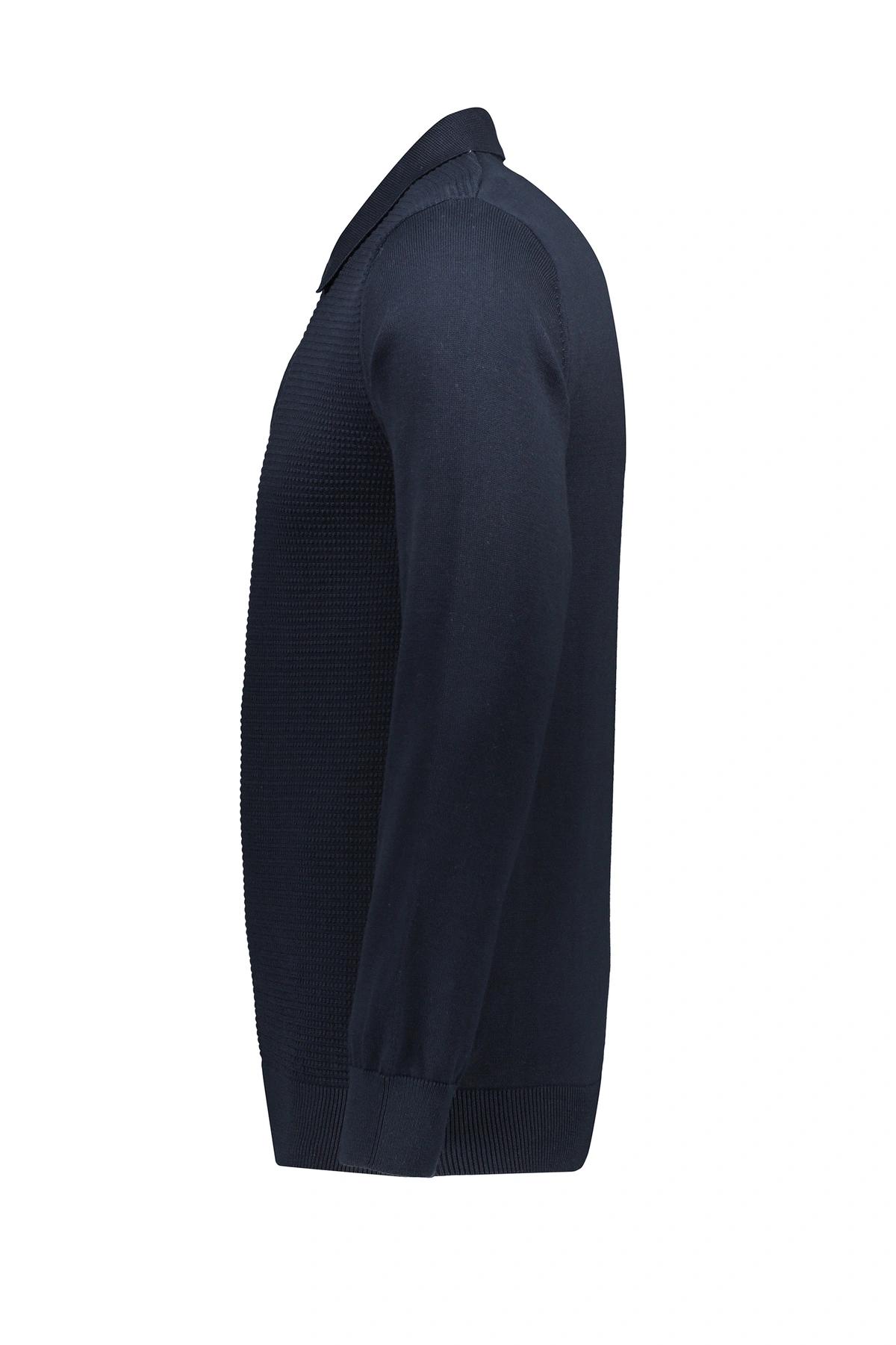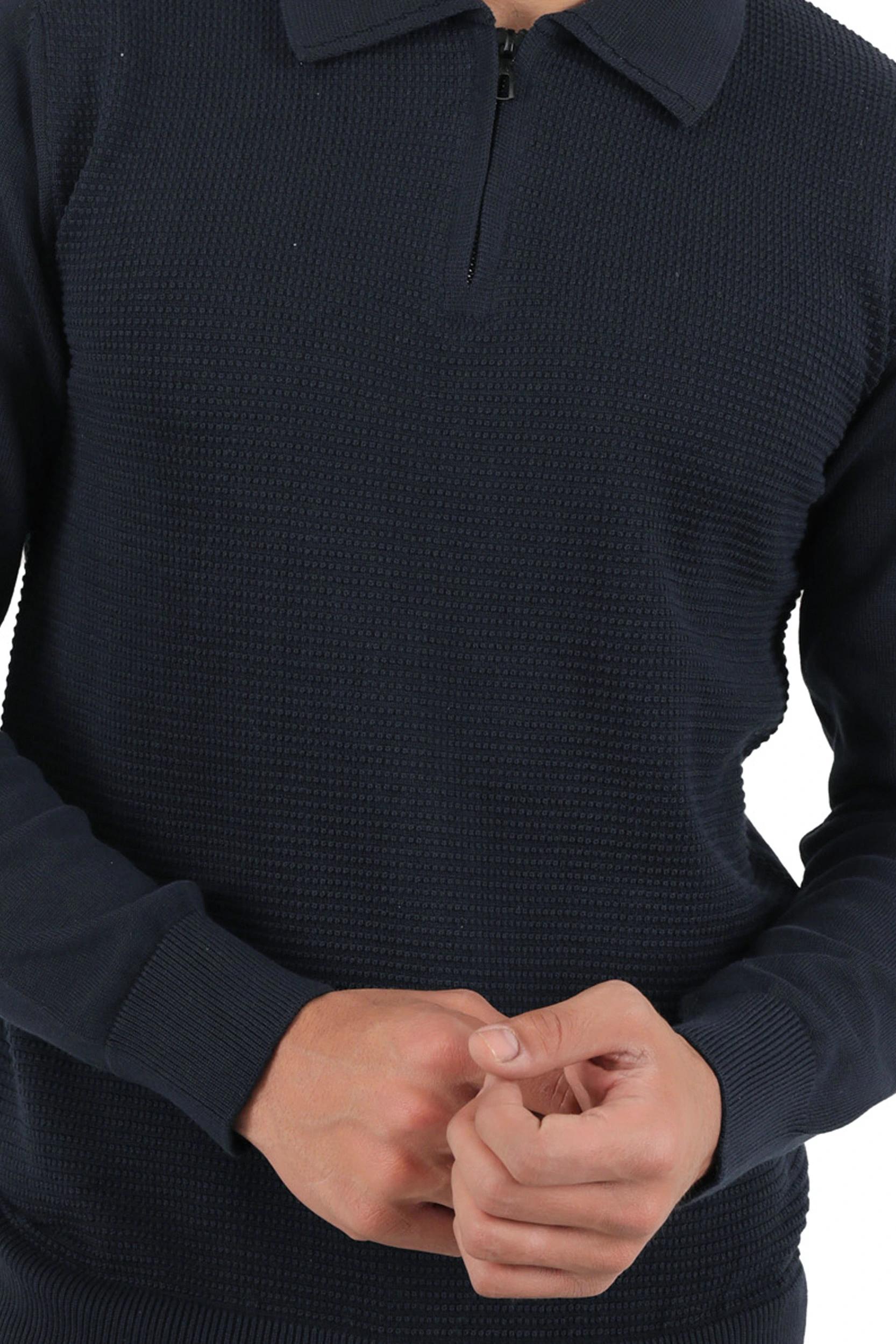 یکی از جذابترین ویژگیهای این بافت، یقه برگردان با طراحی نیمزیپ آن است که نه تنها جلوهای شیک و مدرن دارد، بلکه امکان تنظیم میزان باز بودن یقه را نیز فراهم میکند. این ویژگی به شما اجازه میدهد که در صورت لزوم، گردن خود را گرم نگه دارید یا هوای بیشتری به داخل لباس جریان دهید.