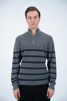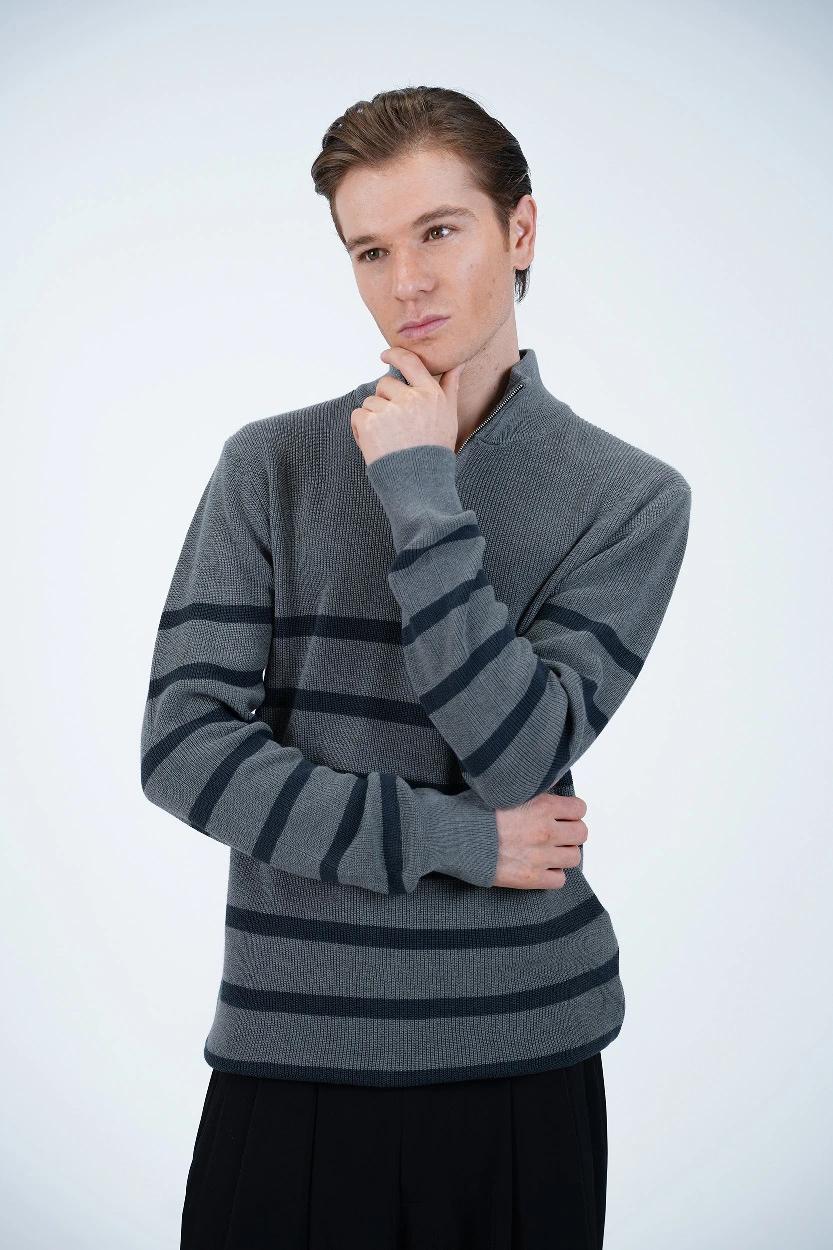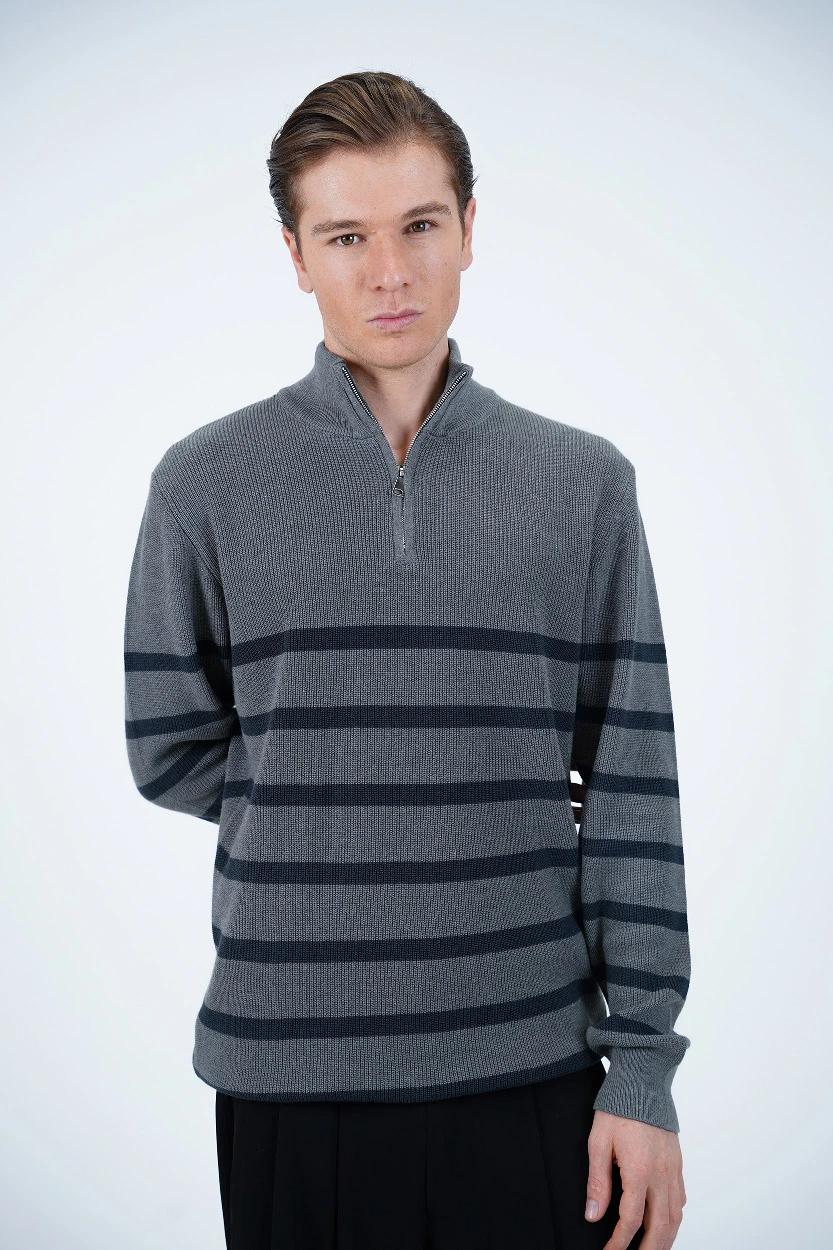 خرید بافت یقه‌برگردان زیپ‌دار راه‌راه مردانه – شیک، راحت و مناسب روزهای خنک