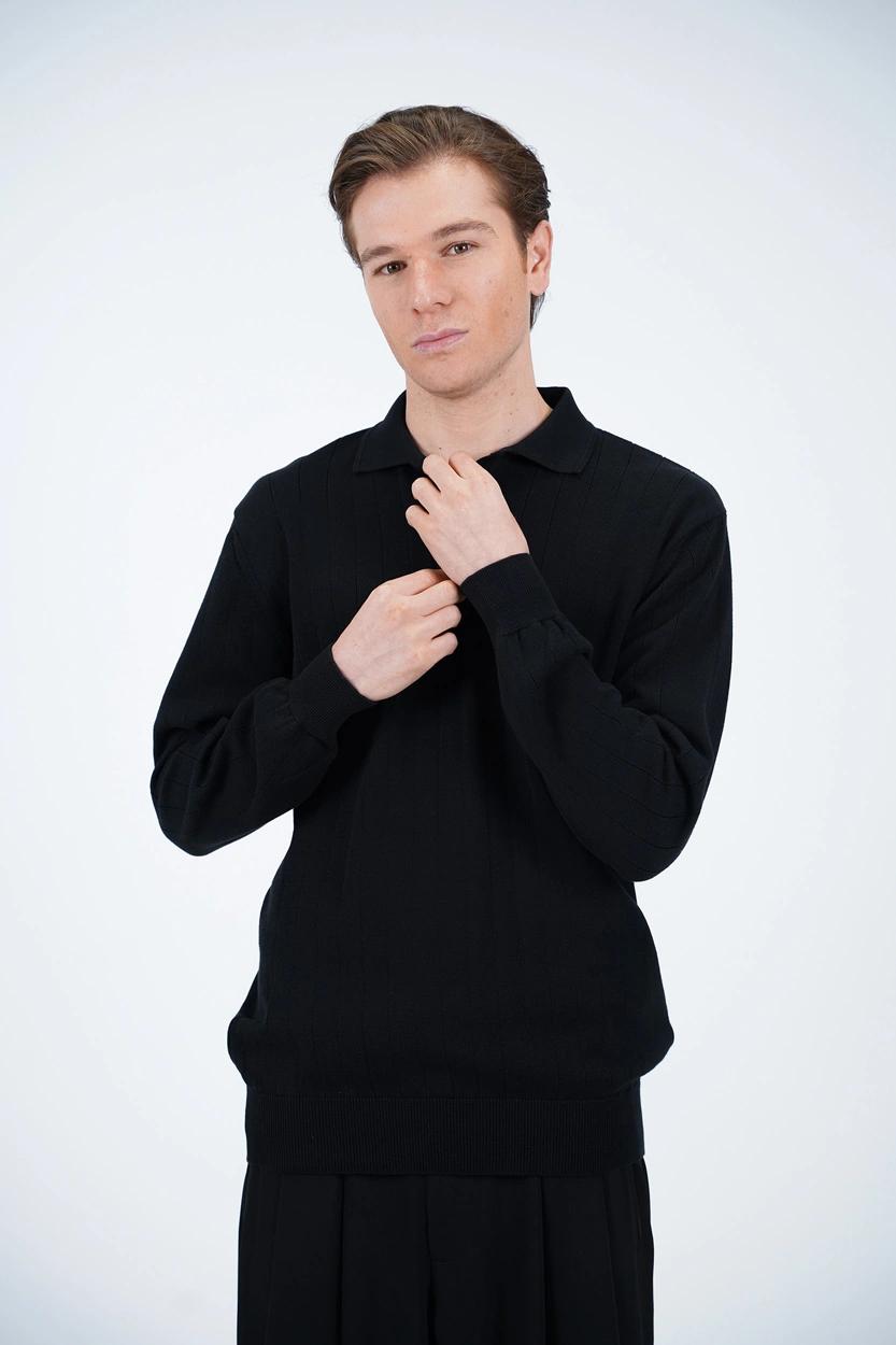 بافت مردانه سهدکمه با یقهبرگردان کلاسیک، یکی از مدلهایی است که هیچگاه از مد نمیافتد. طراحی دکمهدار در قسمت یقه علاوه بر جنبه تزئینی، این امکان را میدهد که استایل لباس را بسته به موقعیت تغییر دهید. میتوانید با باز گذاشتن دکمهها ظاهری اسپرت و روزمره داشته باشید یا با بستن آنها استایلی رسمیتر و مرتبتر بسازید. فرم یقهبرگردان نیز جلوهای مردانه و منظم به لباس میدهد که برای هر سنی مناسب است.