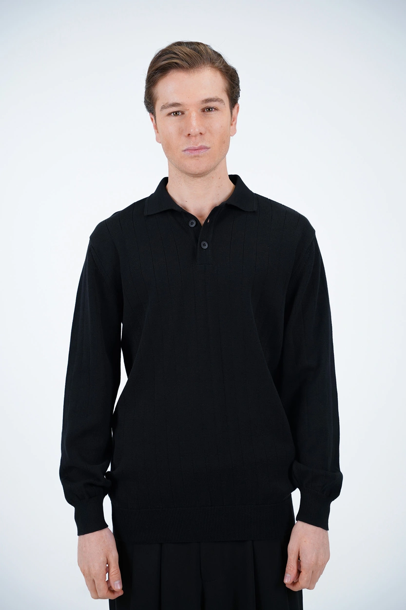 خرید بافت یقه‌برگردان سه‌دکمه مردانه – ترکیبی از راحتی، گرما و استایل شیک