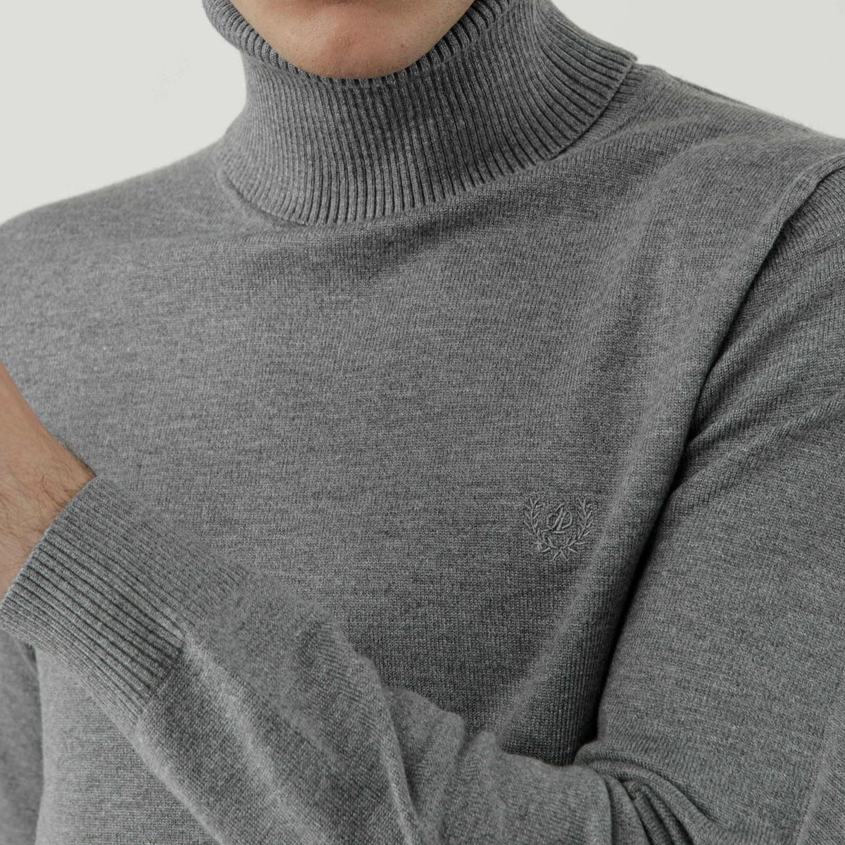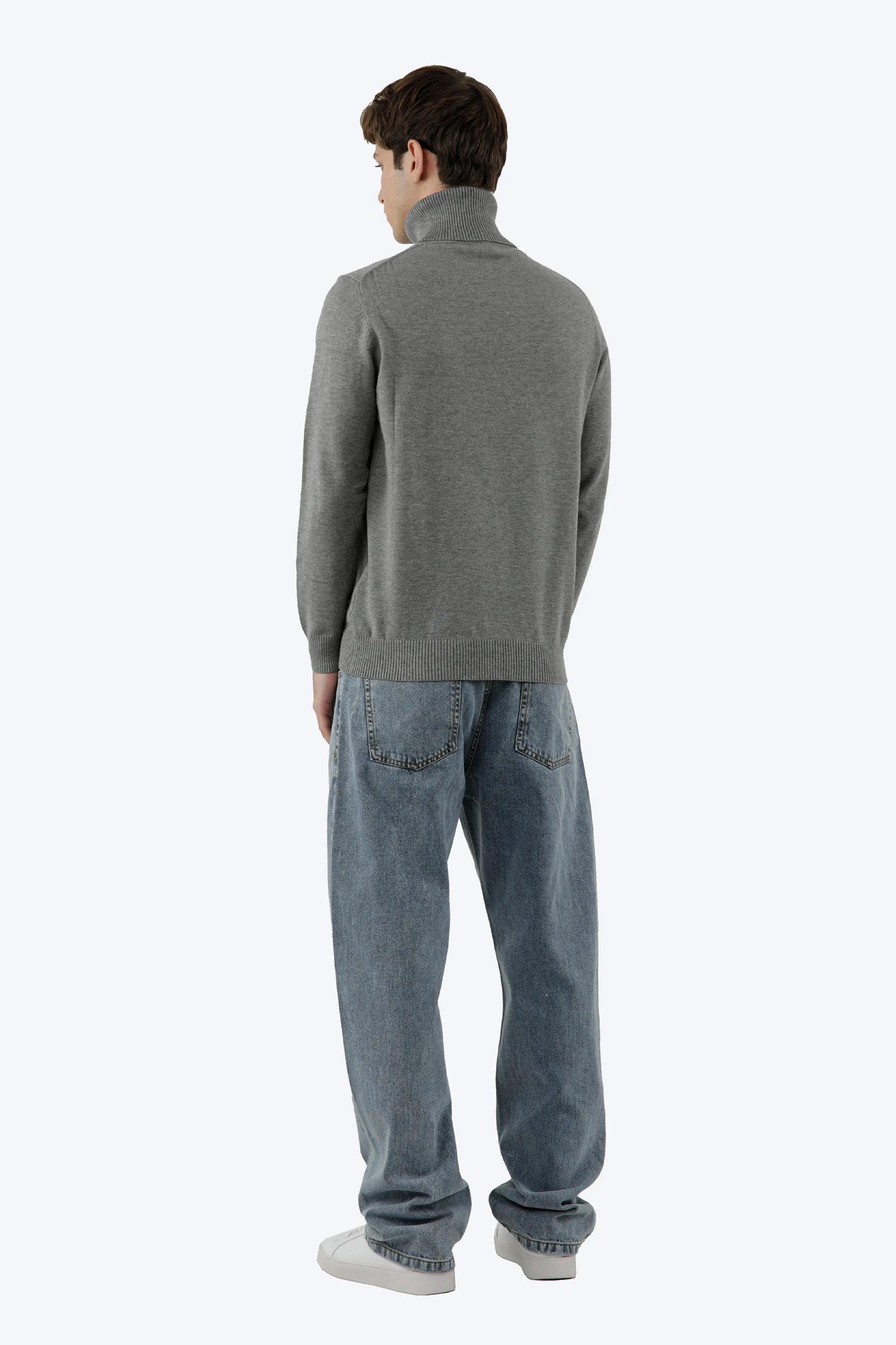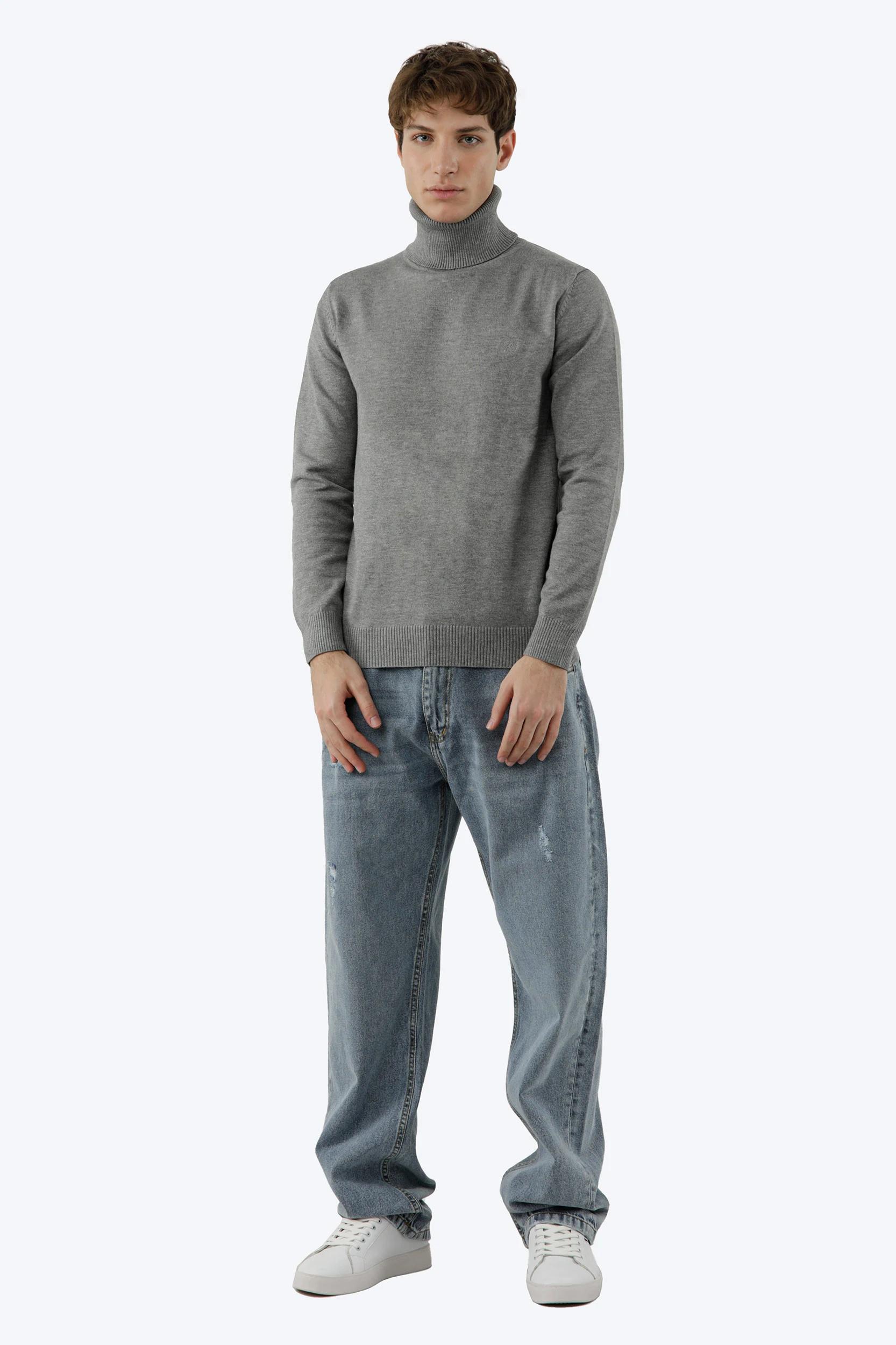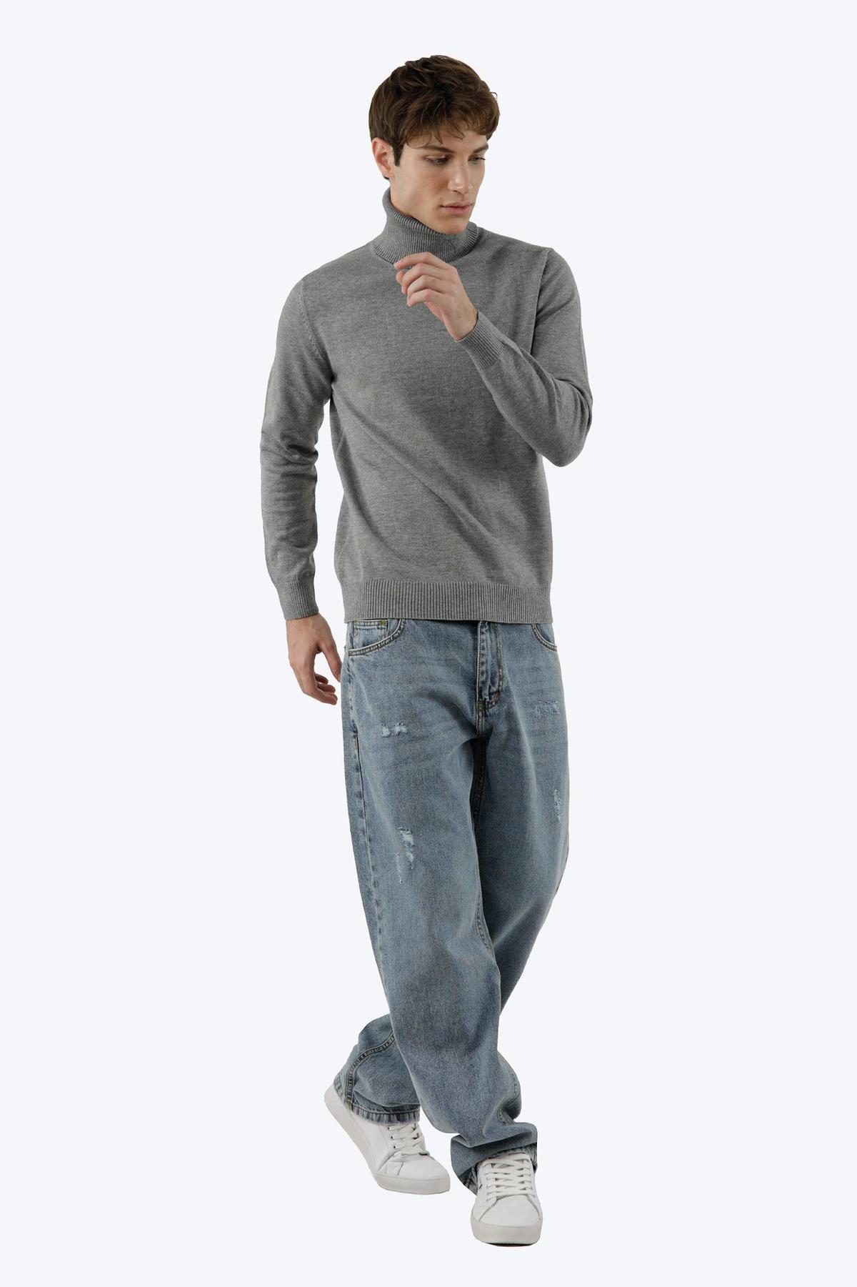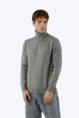 پلیور بافت مردانه یقه اسکی رنگ طوسی تیره از برند پاتن جامه ، مناسب استفاده در فصول زمستان.