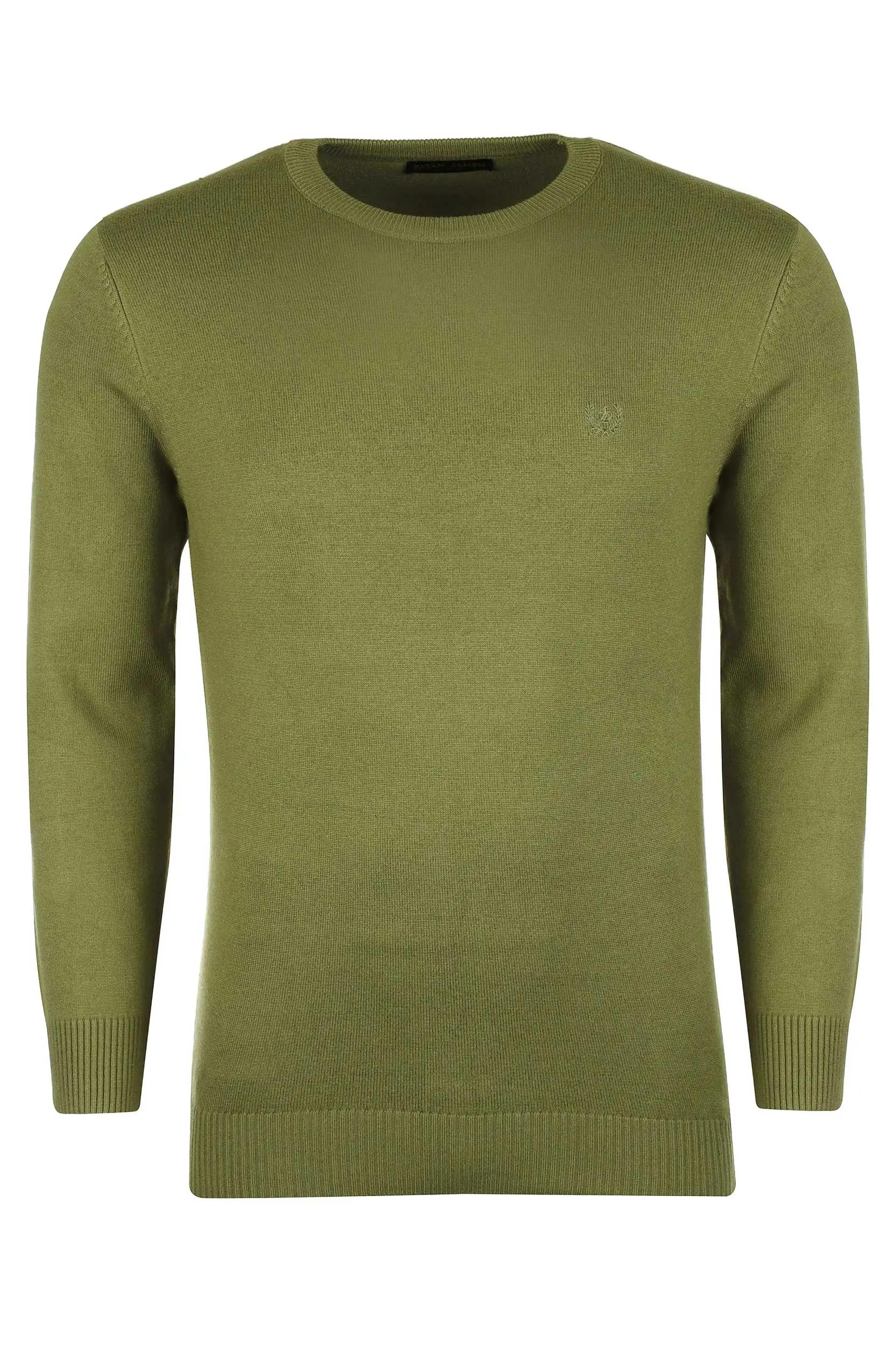 بافت یقه گرد  سبز روشن مردانه ، تولید از برند پاتن جامه ، پلیور گرم مردانه مناسب فصول سرد.