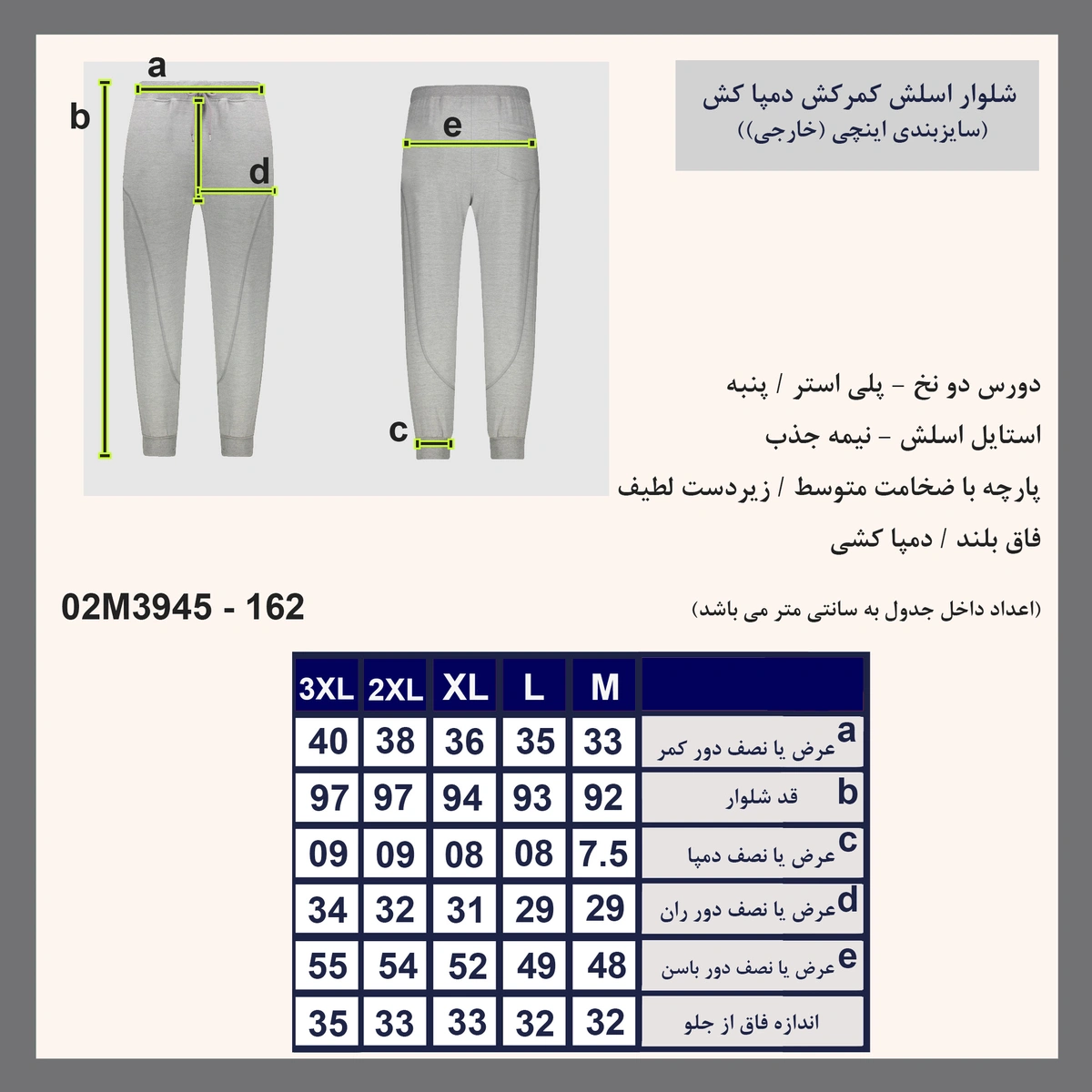 خرید شلوار اسلش مردانه ، جنس تریکو حالت کشی ، شلوار کمرکش دار و دمپا کشی مردانه ، از جنس دورس دو نخ پلی استر-پنبه است. اسلش ملانژ با فاق بلند.