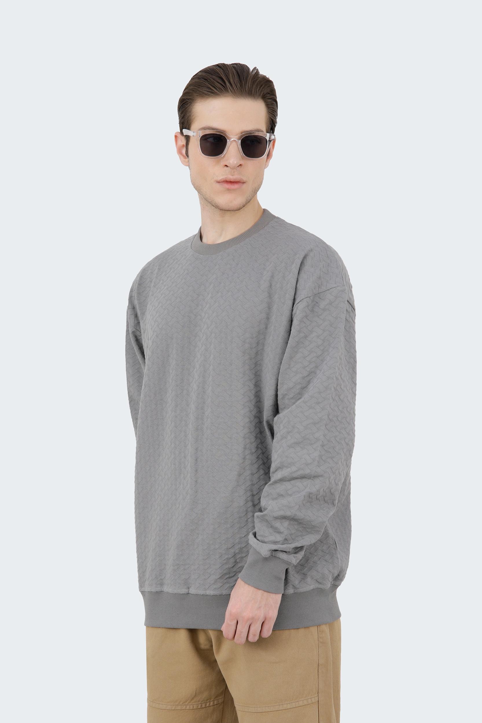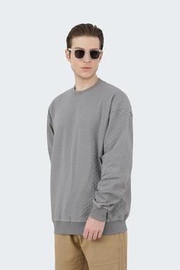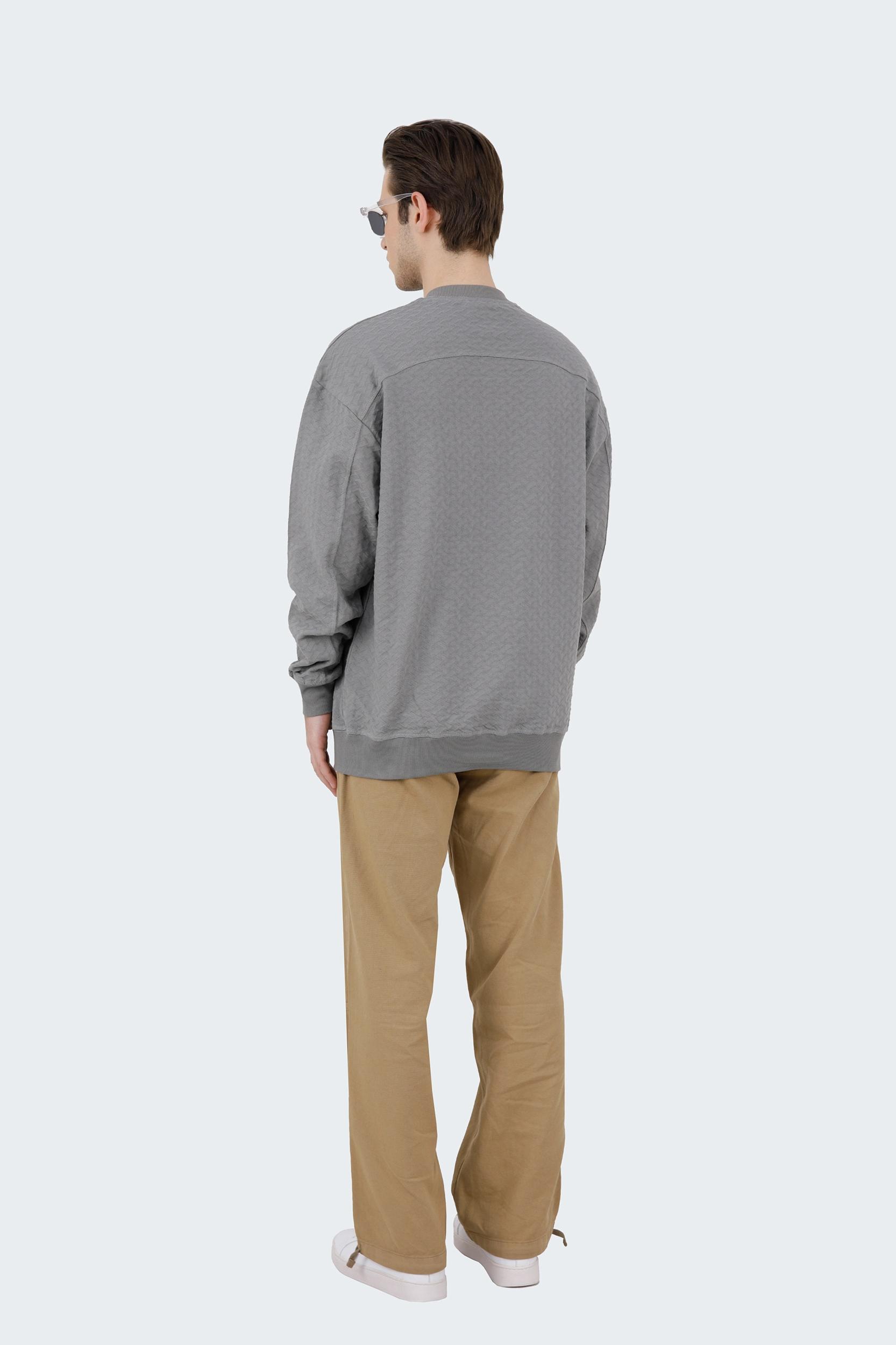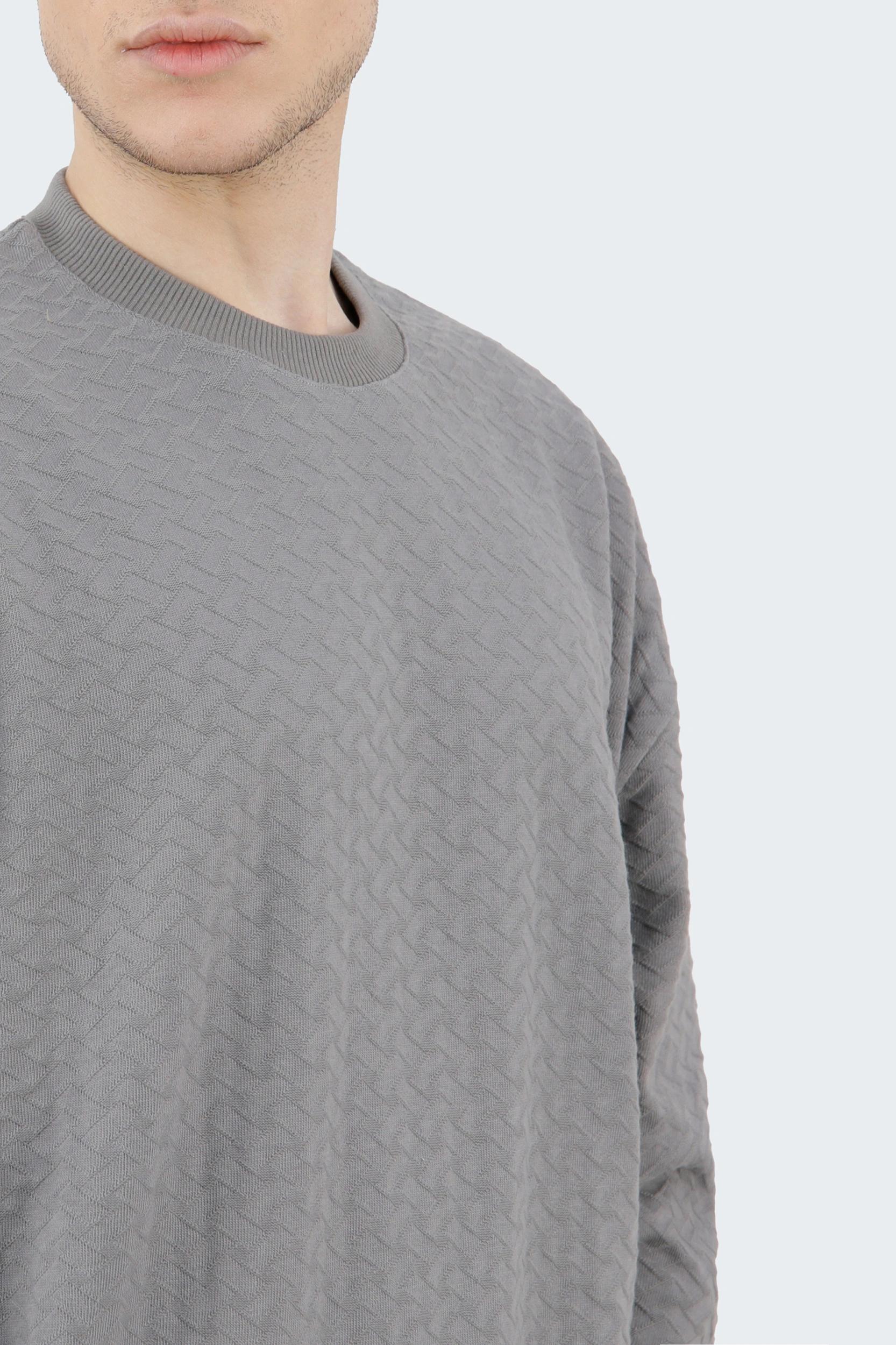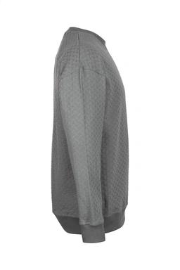 تیشرت ژاکارد آستین بلند مردانه رنگ طوسی طرح دار، تی شرت یقه گرد آستین دار پاییزه زمستان گرم.