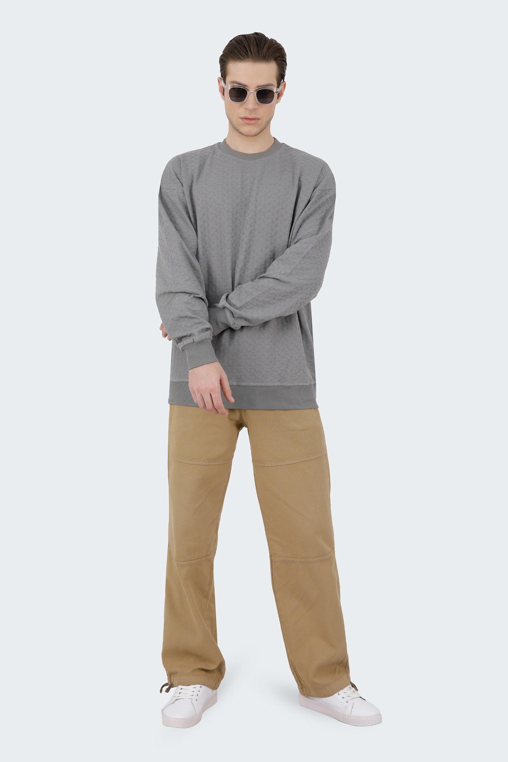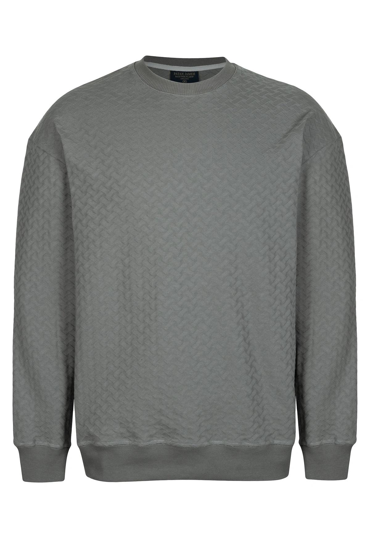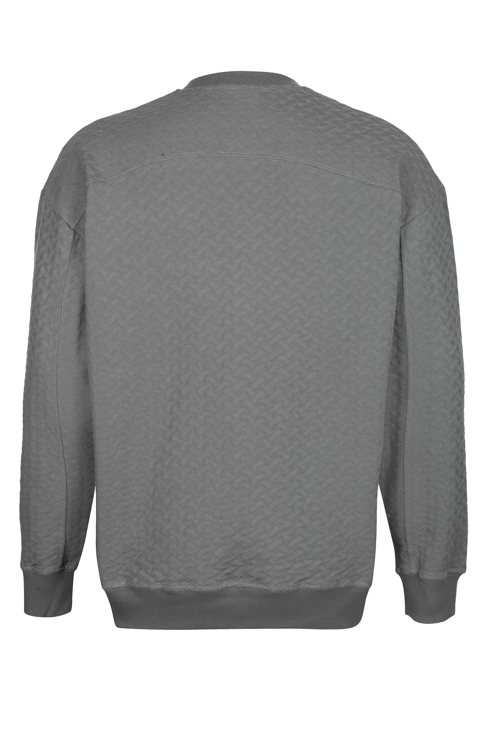 تیشرت ژاکارد آستین بلند مردانه رنگ طوسی طرح دار، تی شرت یقه گرد آستین دار پاییزه زمستان گرم.