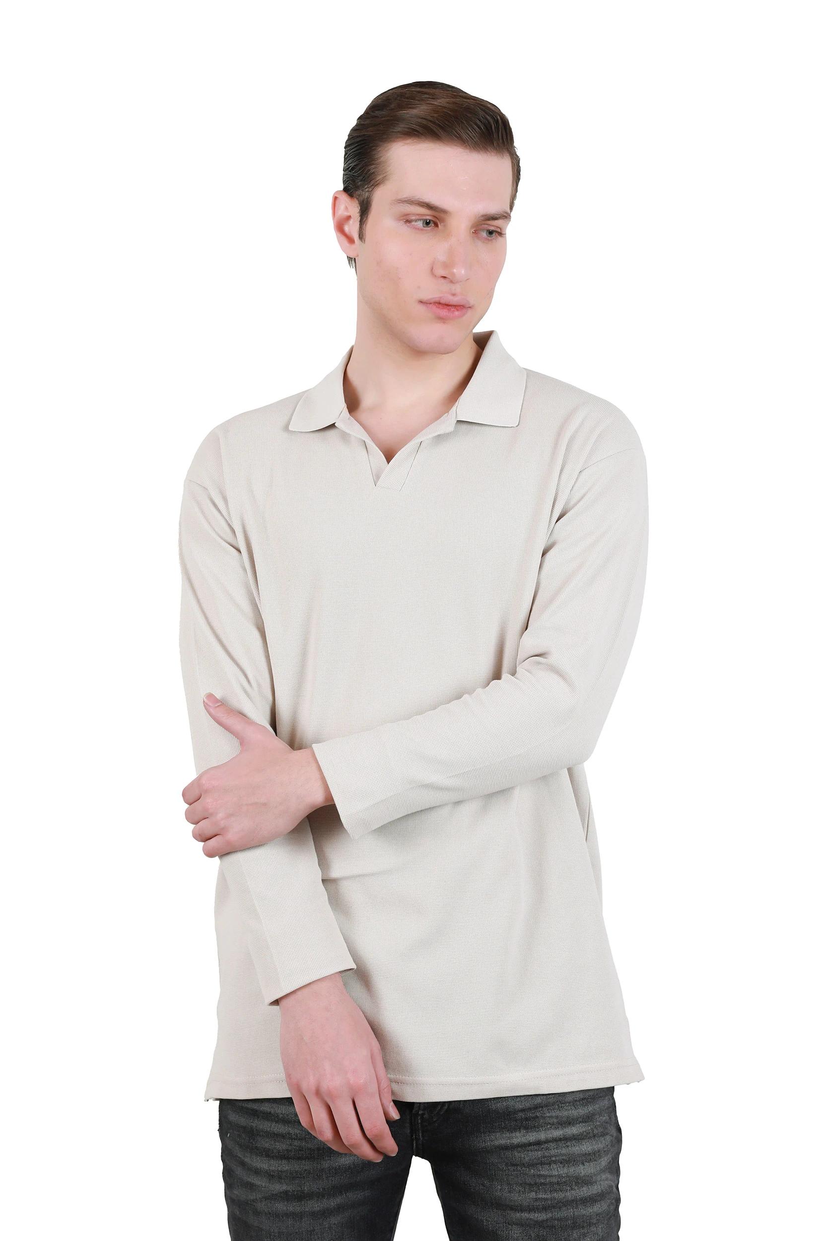 تیشرت آستین بلند جودون مردانه یقه دار. جنس صد در صد پنبه - جودون زیر دست لطیف با ضخامت متوسط مناسب استفاده در فصول نیمه سرد و سرد می باشد. یقه گرد کشبافت ، پارچه تیشرت طرح دار با استایل معمولی نسبتاً آزاد می باشد.