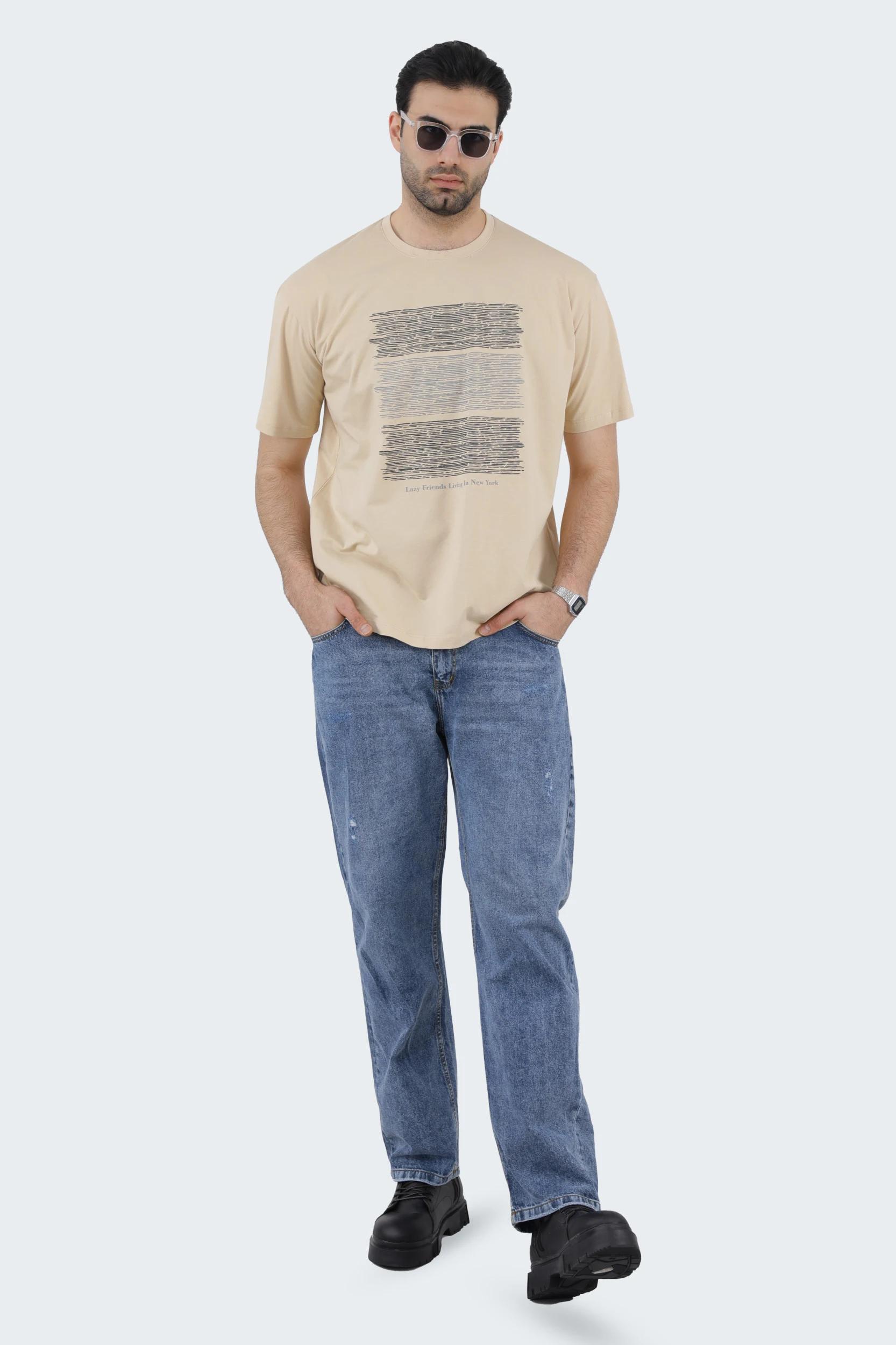خرید تی شرت آستین کوتاه مردانه ، تی شرت چاپدار کرم ، مدل معمولی با قیمت مناسب رنگ کرم.
