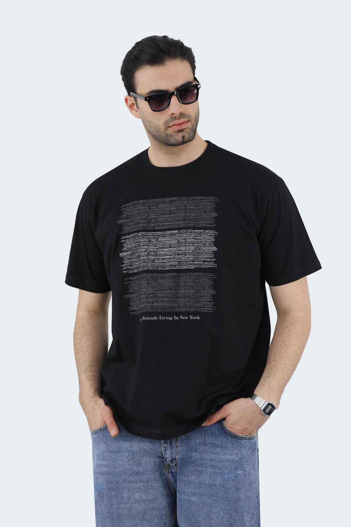 خرید تی شرت آستین کوتاه مردانه ، تی شرت چاپدار مشکی ، مدل معمولی با قیمت مناسب رنگ مشکی.