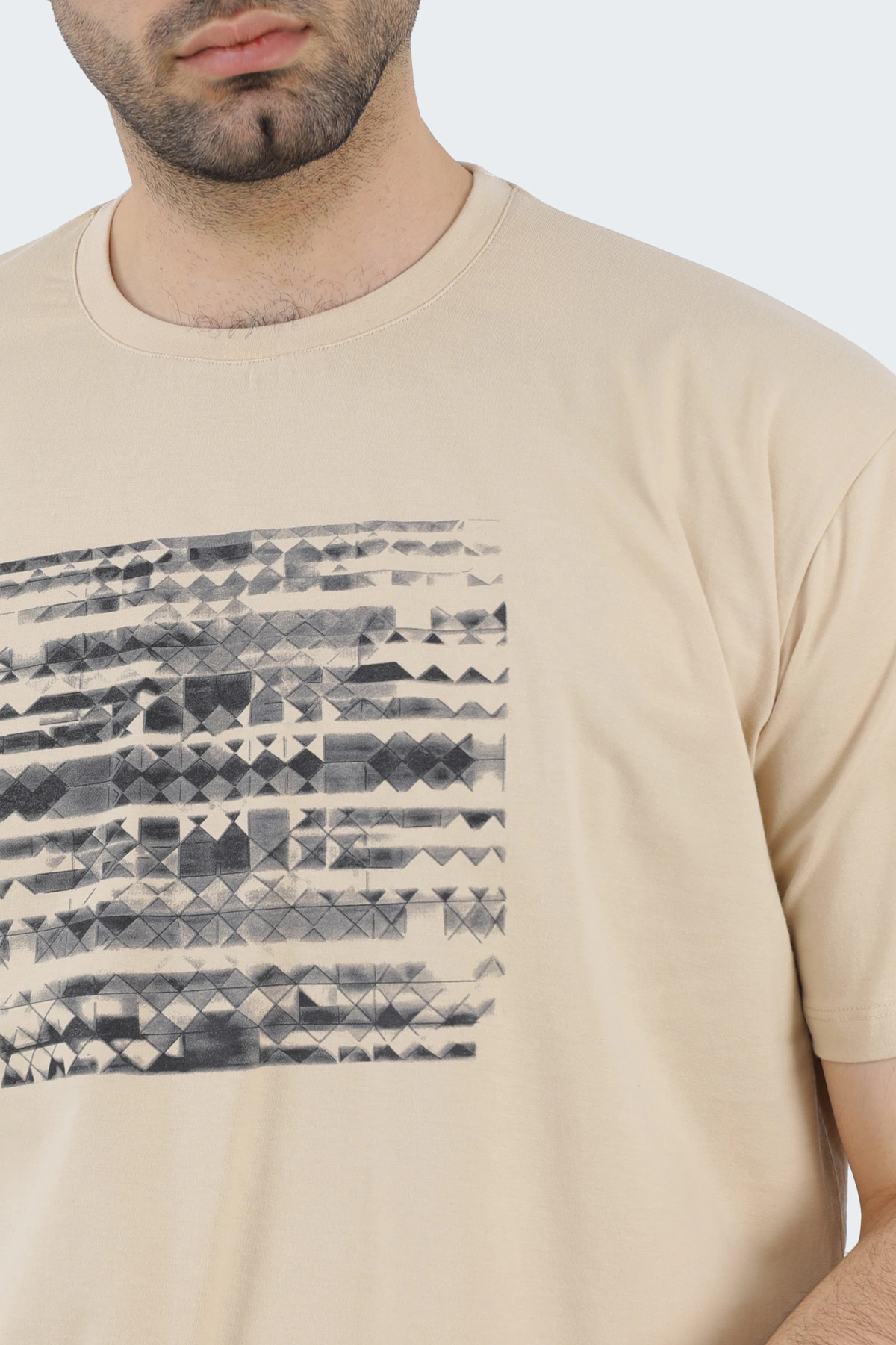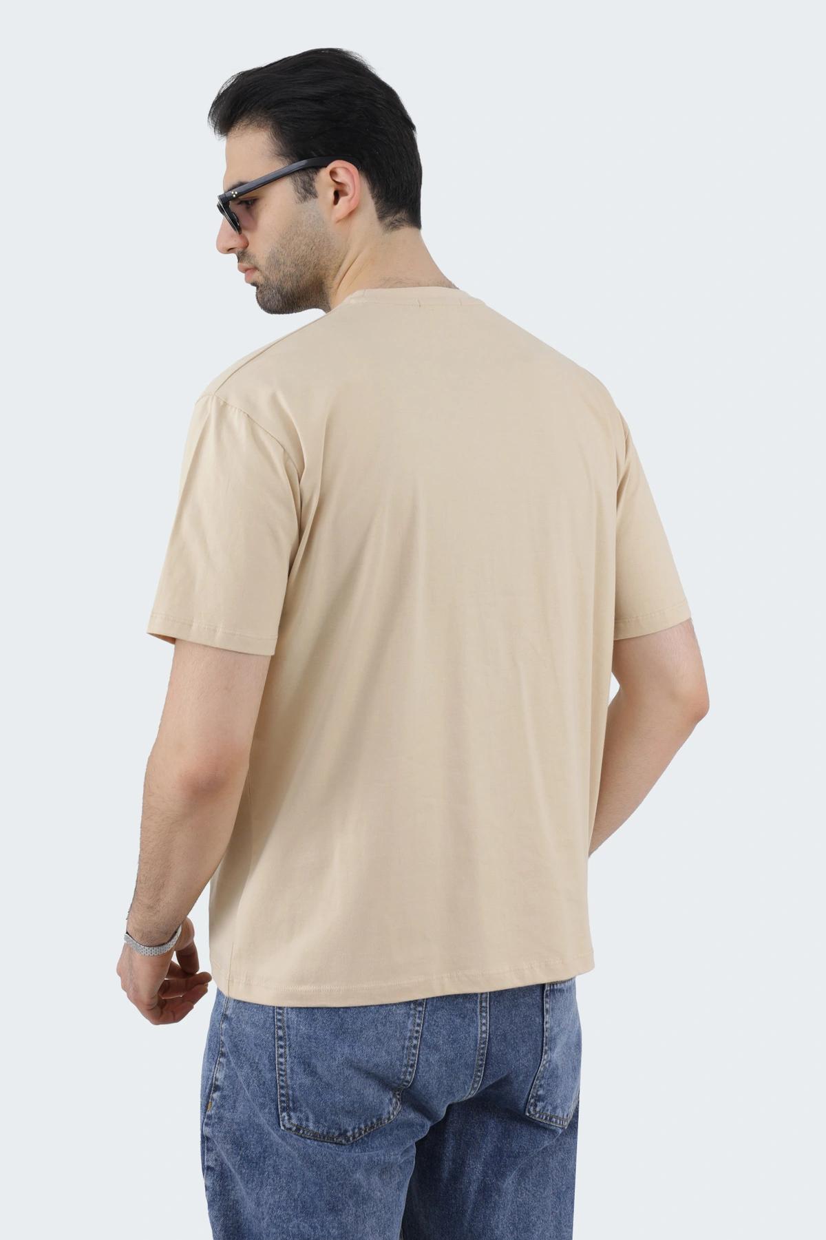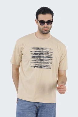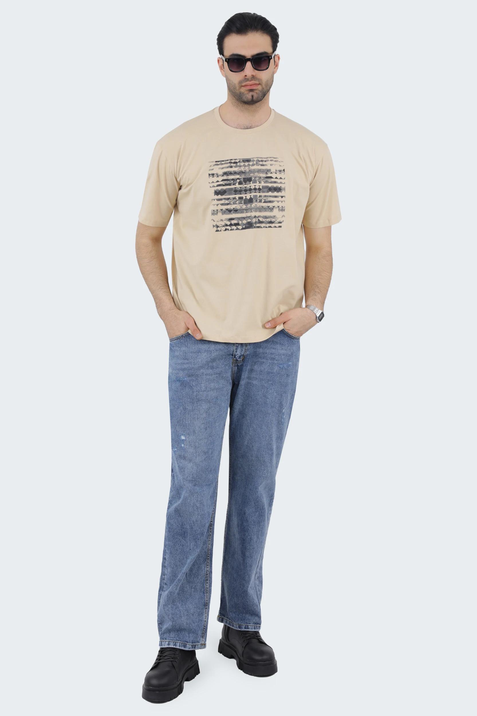 خرید تی شرت آستین کوتاه مردانه ، تی شرت چاپدار کرم ، مدل معمولی با قیمت مناسب رنگ کرم.