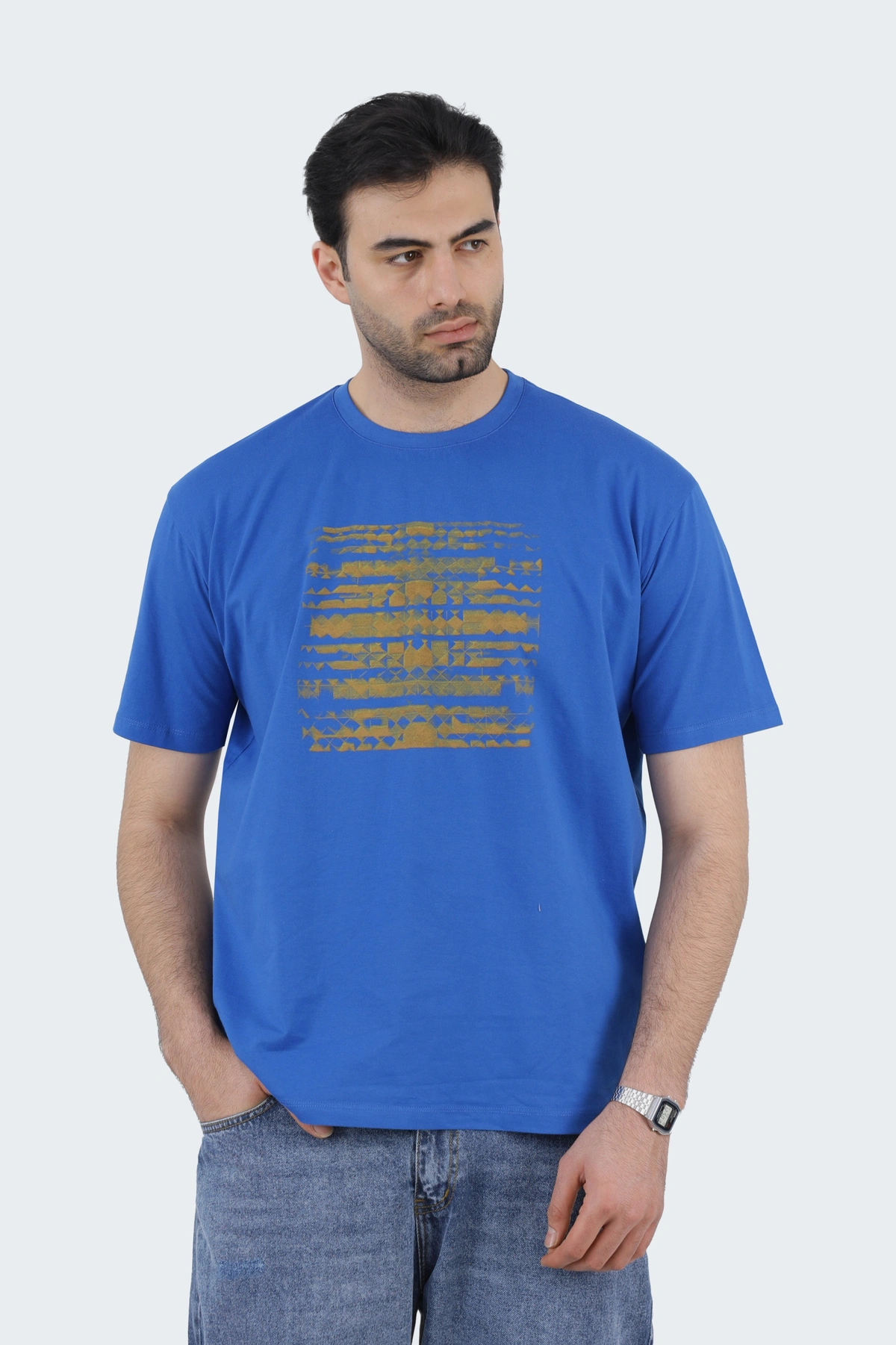 خرید تی شرت آستین کوتاه مردانه ، تی شرت چاپدار آبی ، مدل معمولی با قیمت مناسب رنگ آبی.