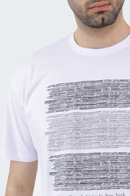 خرید تی شرت آستین کوتاه مردانه ، تی شرت چاپدار سفید ، مدل معمولی با قیمت مناسب رنگ سفید.