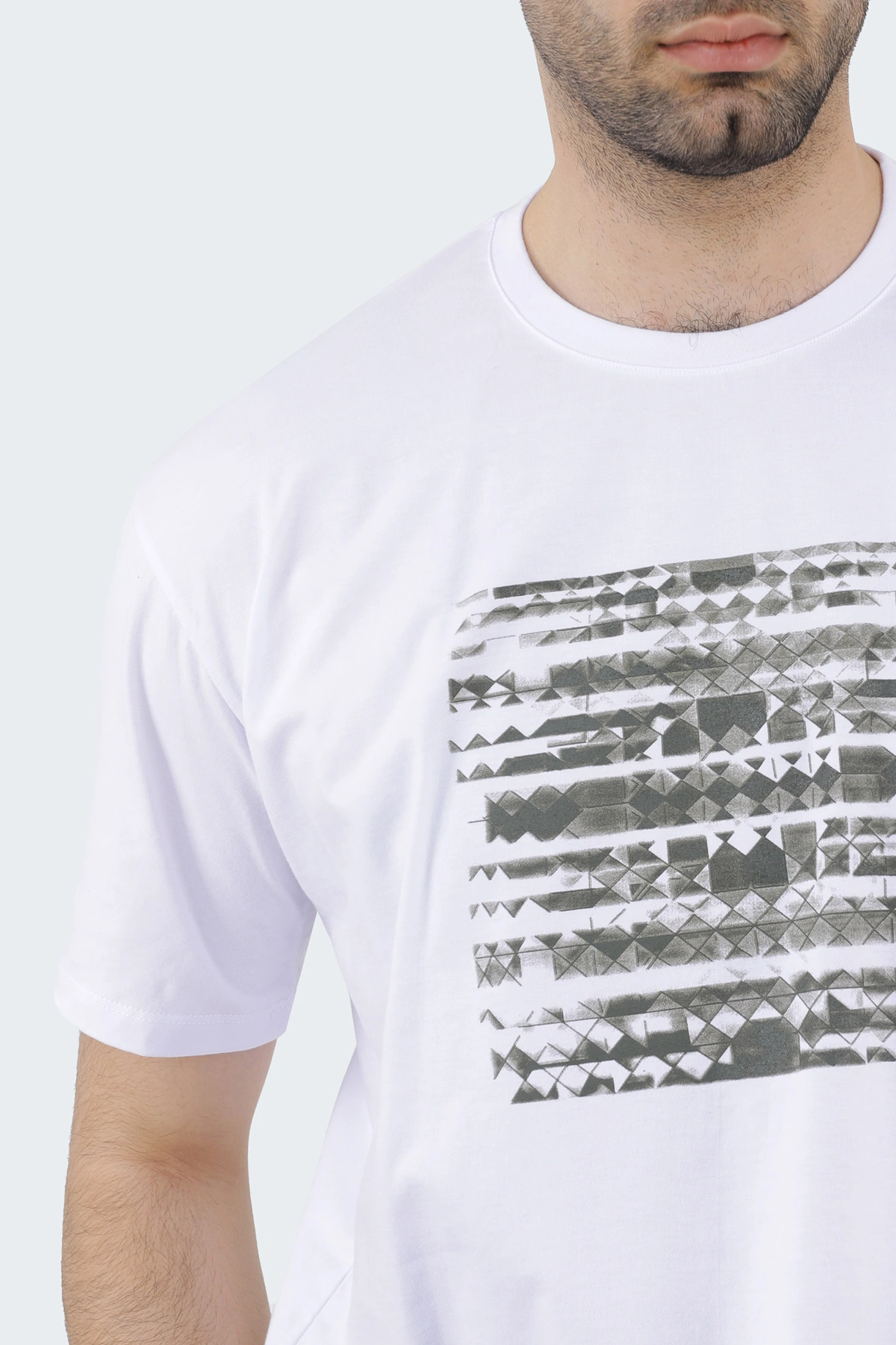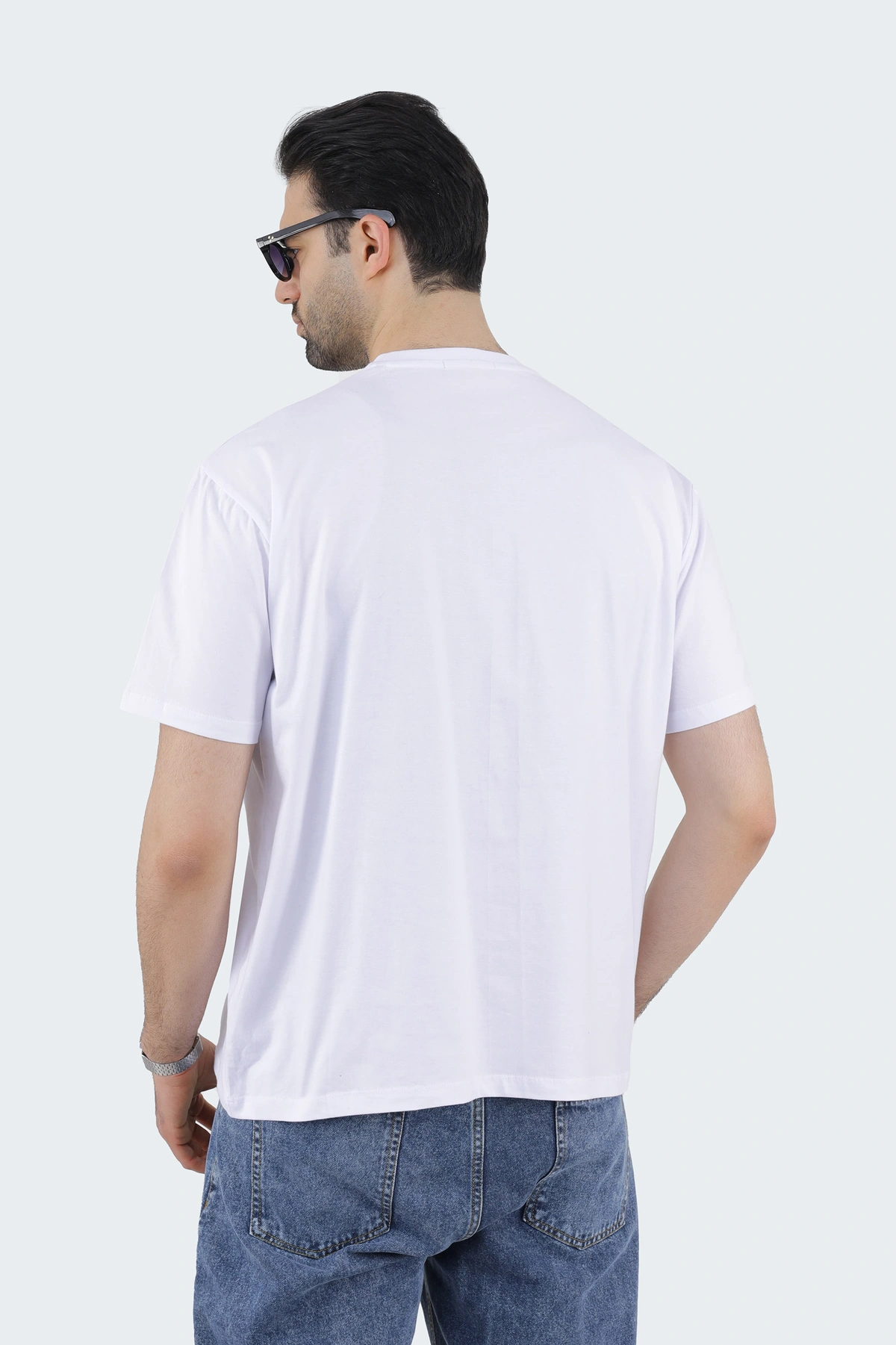 خرید تی شرت آستین کوتاه مردانه ، تی شرت چاپدار سفید ، مدل معمولی با قیمت مناسب رنگ سفید.