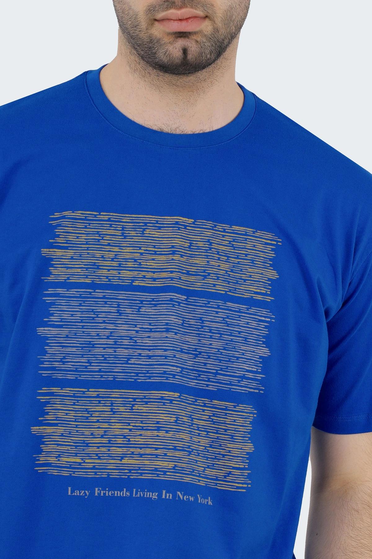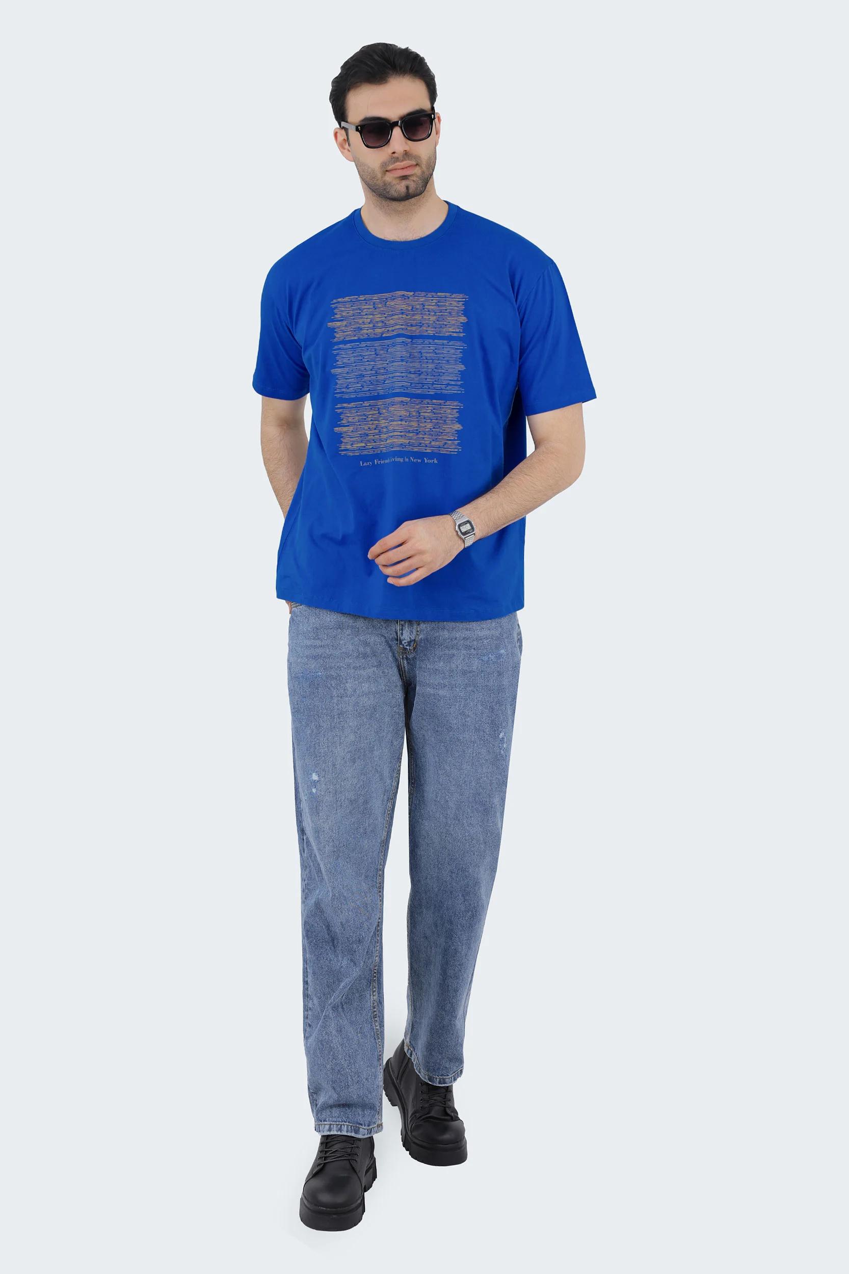 خرید تی شرت آستین کوتاه مردانه ، تی شرت چاپدار آبی ، مدل معمولی با قیمت مناسب رنگ سفید.