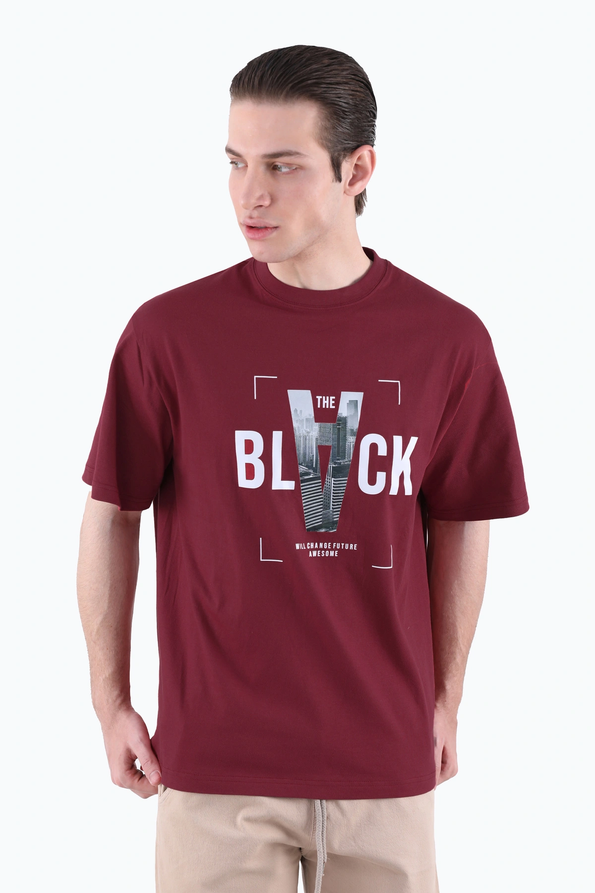 خرید تی شرت آستین کوتاه مردانه چاپدار رنگ زرشکی چاپدار ، تیشرت بدون درز خرید و ارسال رایگان.