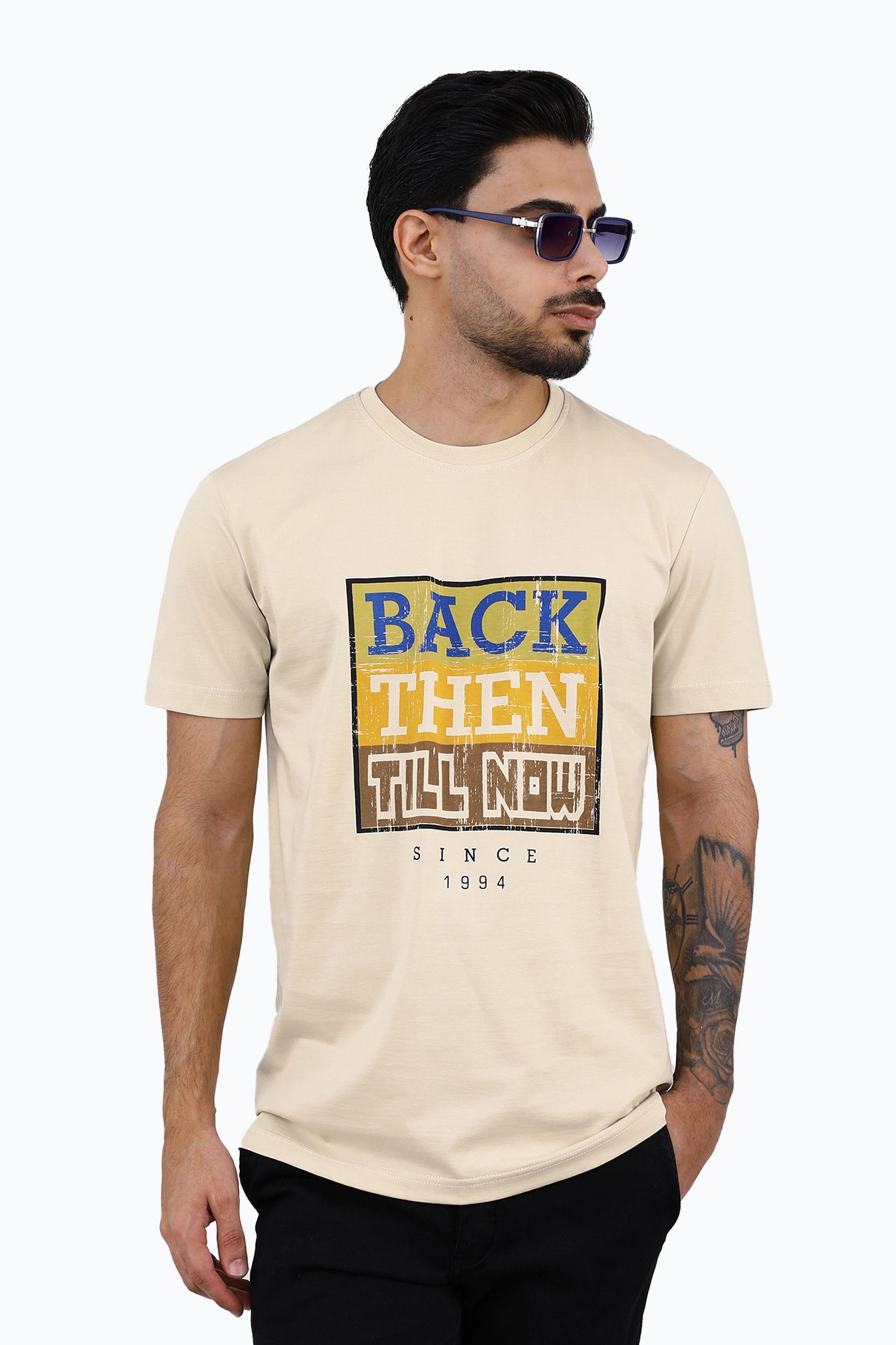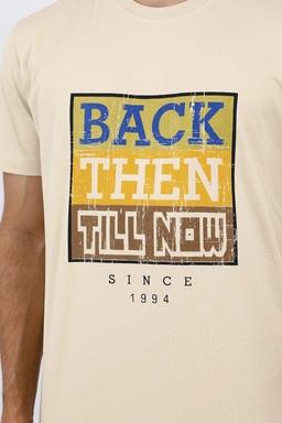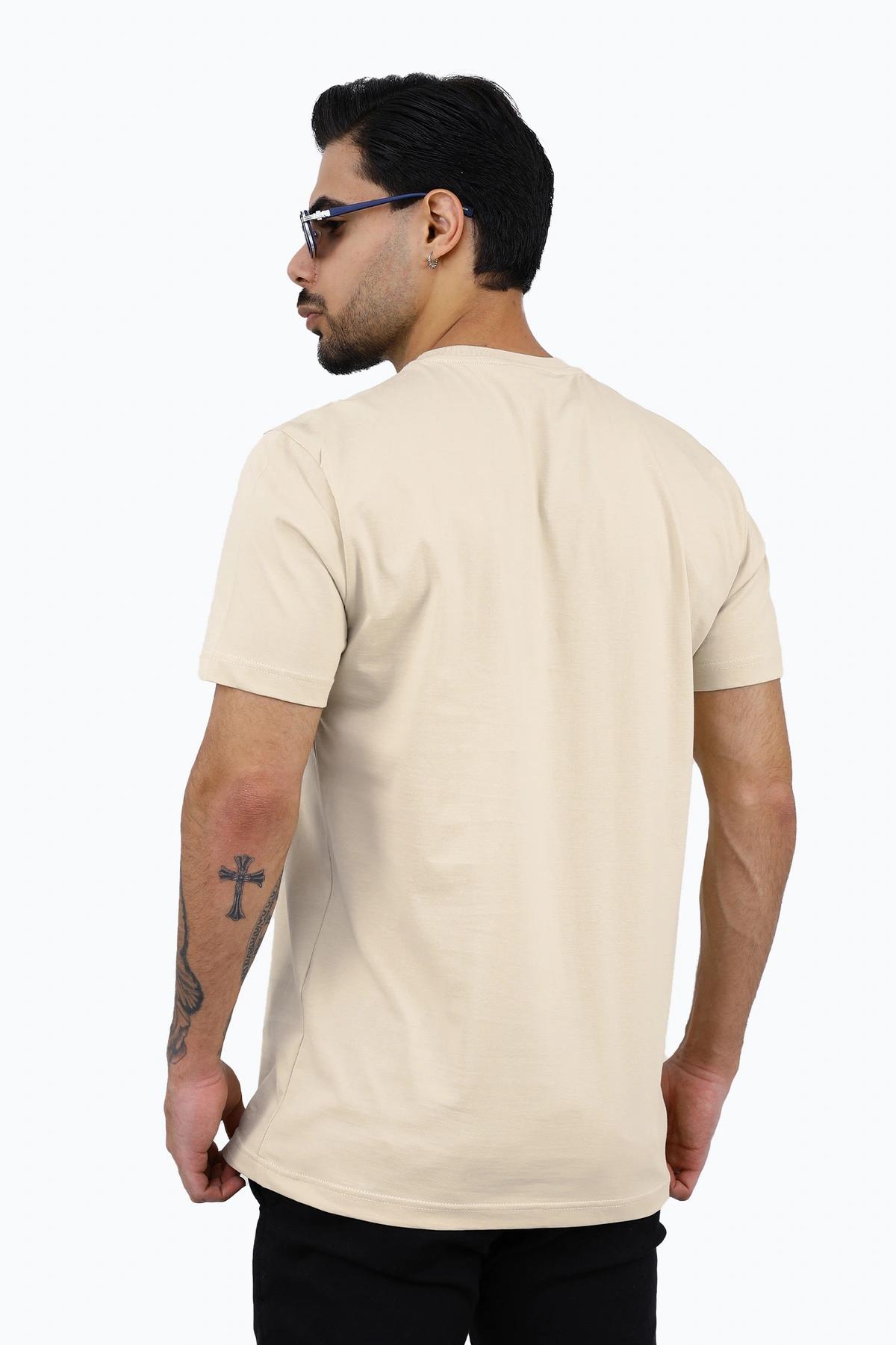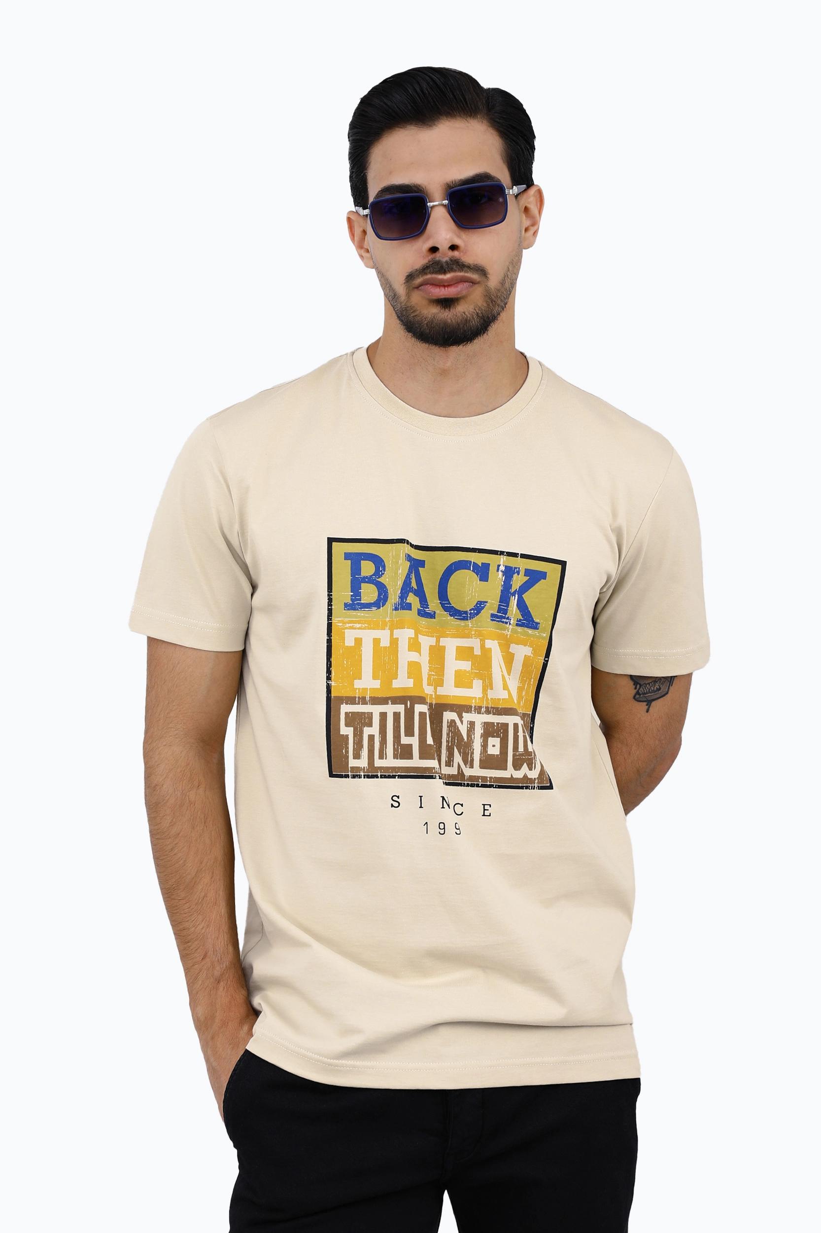 خرید تی شرت آستین کوتاه مردانه چاپدار رنگ کرم چاپدار ، تیشرت یقه گرد خرید و ارسال رایگان.