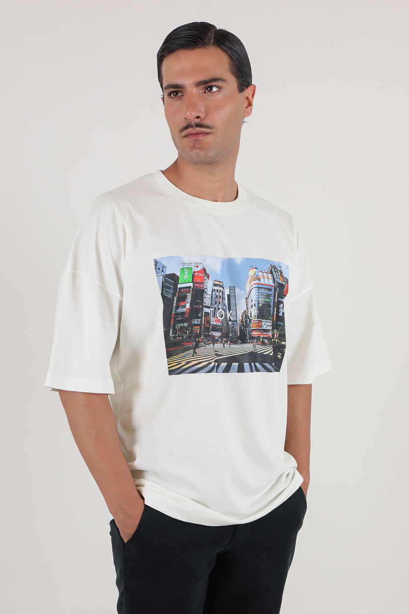 تیشرت آستین کوتاه یقه گرد مردانه چاپ‌دار (اورسایز) – راحتی بی‌مرز در استایلی مدرن