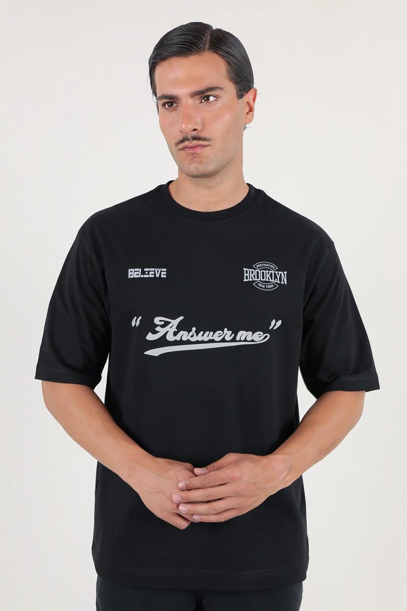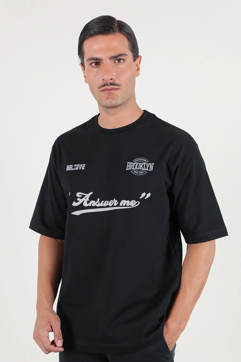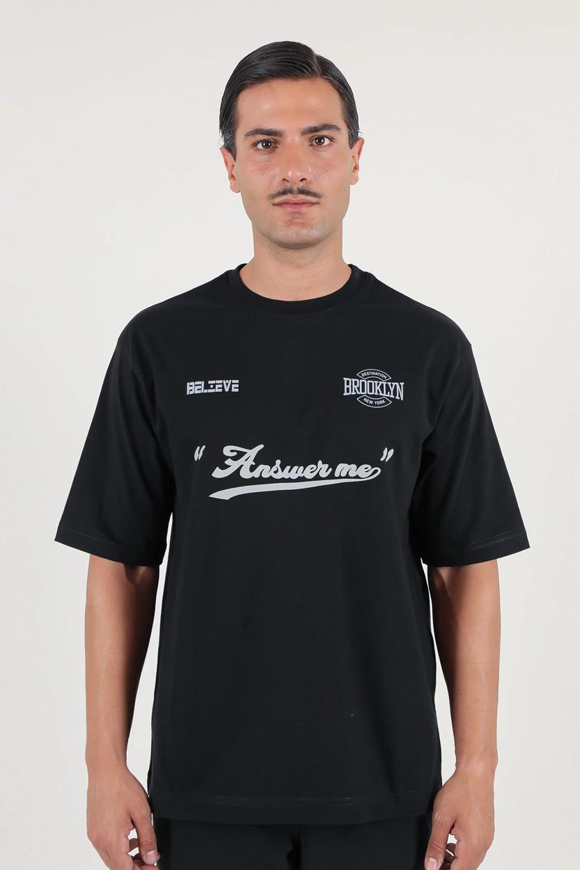 تیشرت آستین کوتاه یقه گرد مردانه چاپ‌دار (اورسایز) – راحتی بی‌مرز در استایلی مدرن