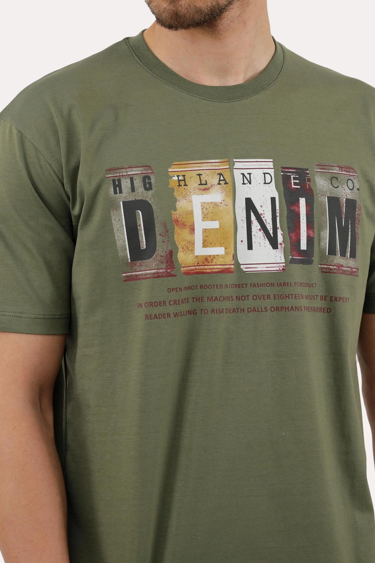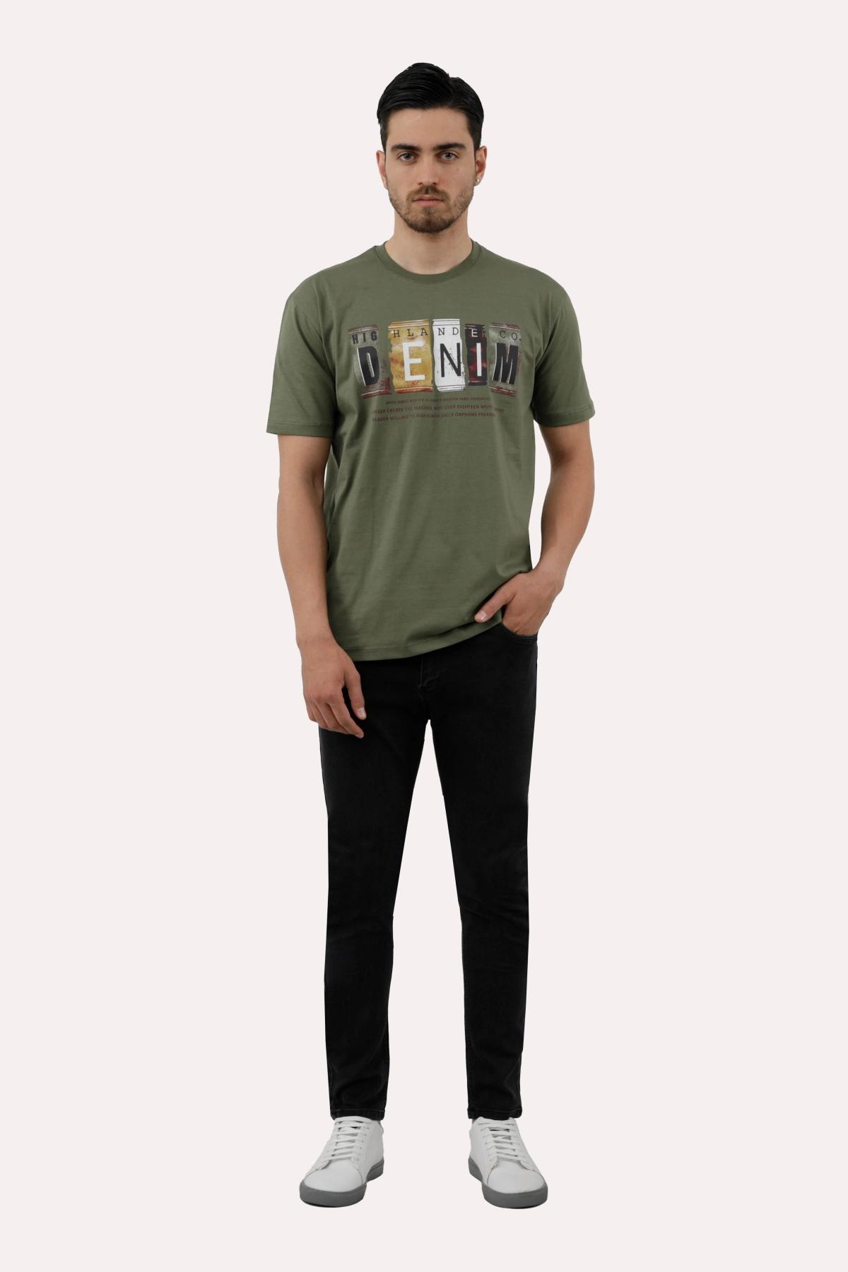 خرید تیشرت چاپدار مردانه پاتن جامه. تیشرت نخی قیمت پایین با کیفیت بالا. خرید تی شرت طرح دار رنگ سبز