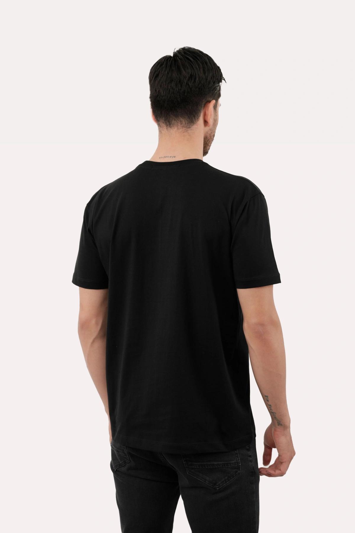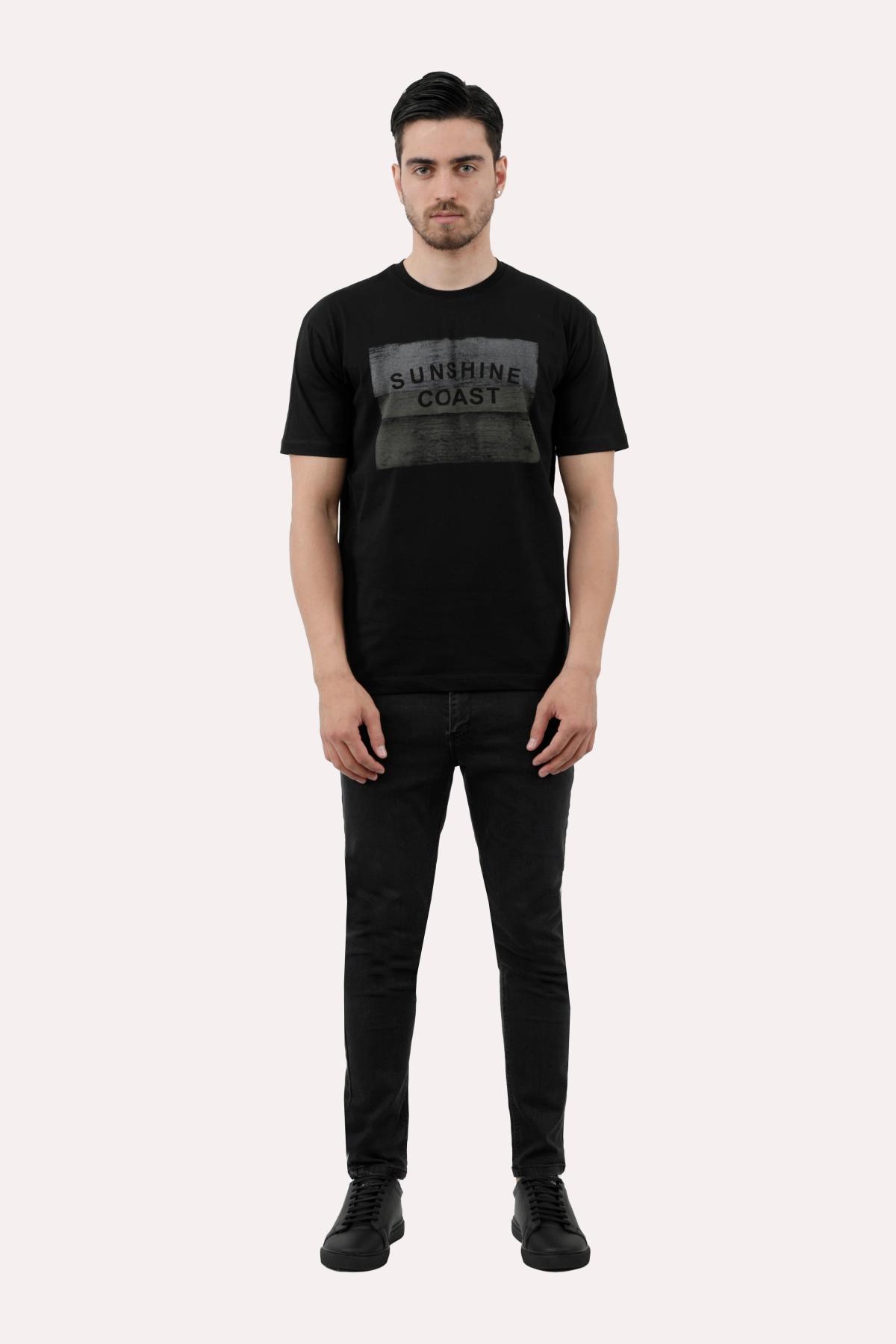 خرید تیشرت چاپدار مردانه پاتن جامه. تیشرت نخی قیمت پایین با کیفیت بالا. خرید تی شرت طرح دار رنگ مشکی