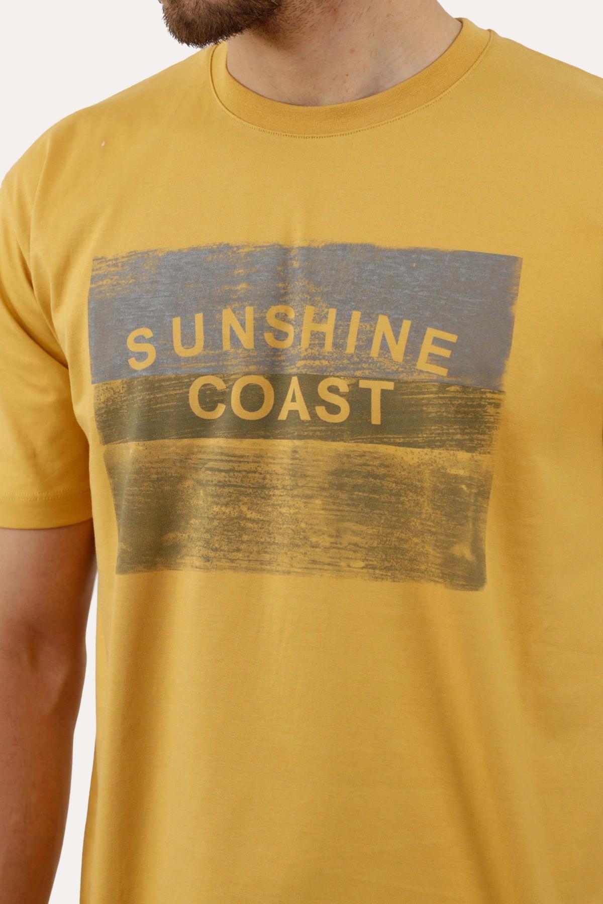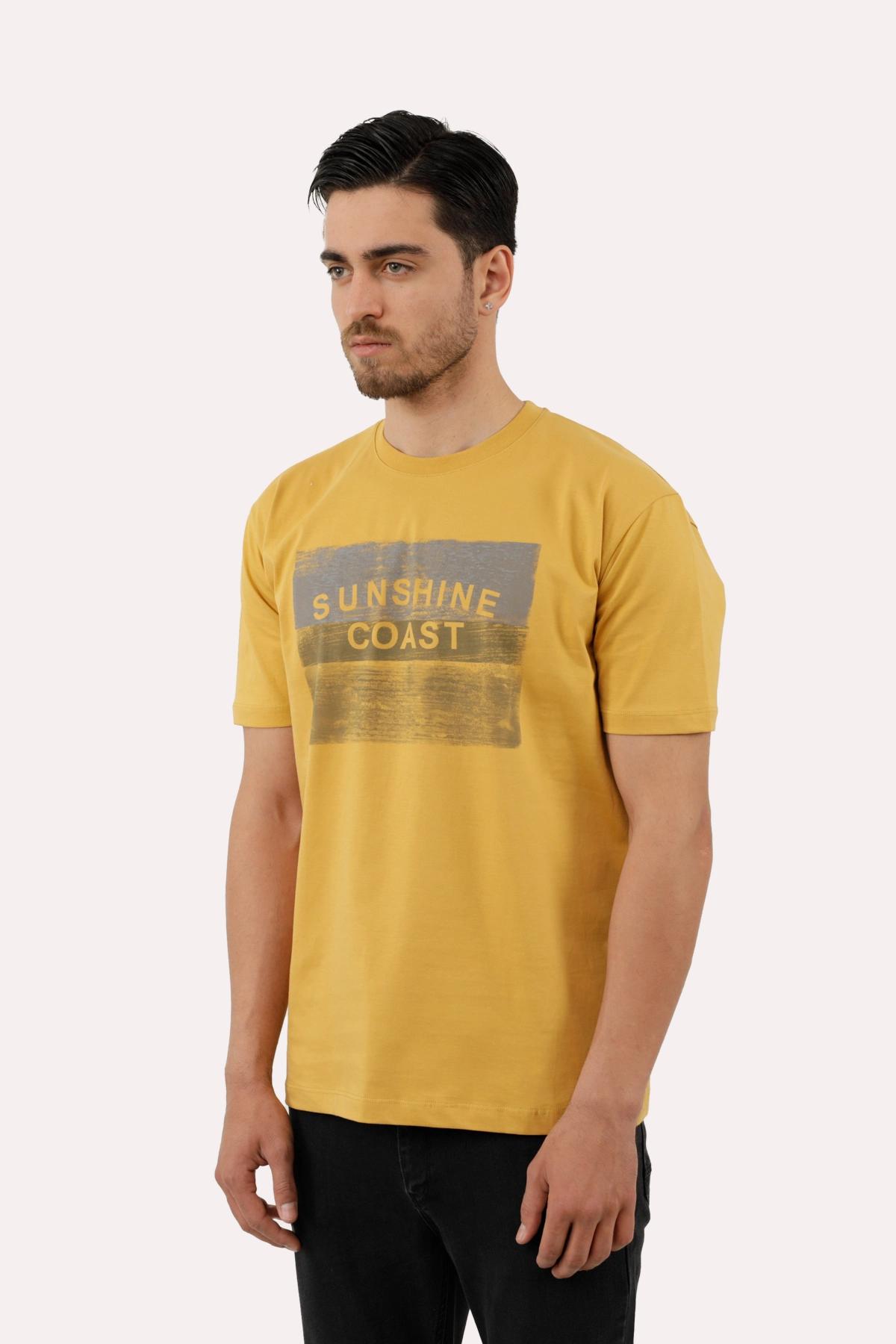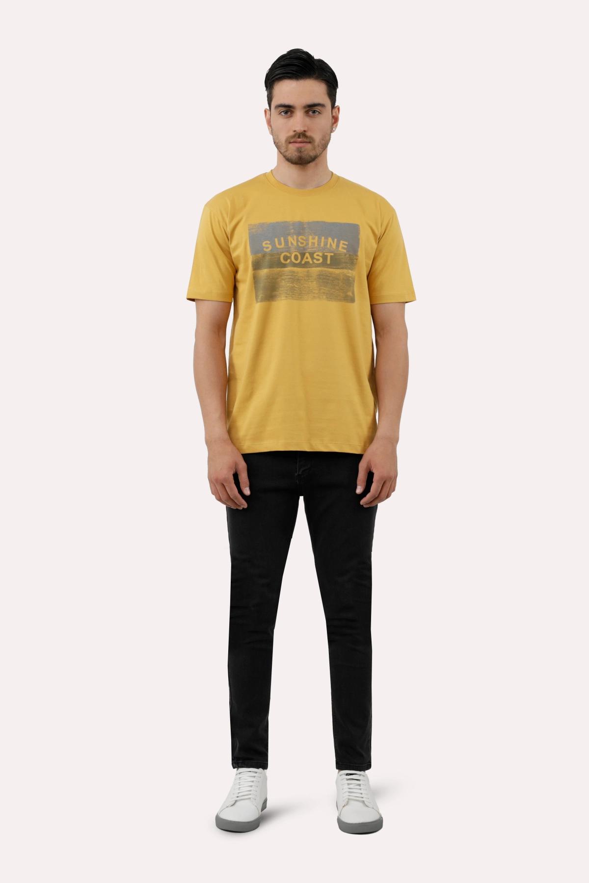 خرید تیشرت چاپدار مردانه پاتن جامه. تیشرت نخی قیمت پایین با کیفیت بالا. خرید تی شرت طرح دار رنگ زرد