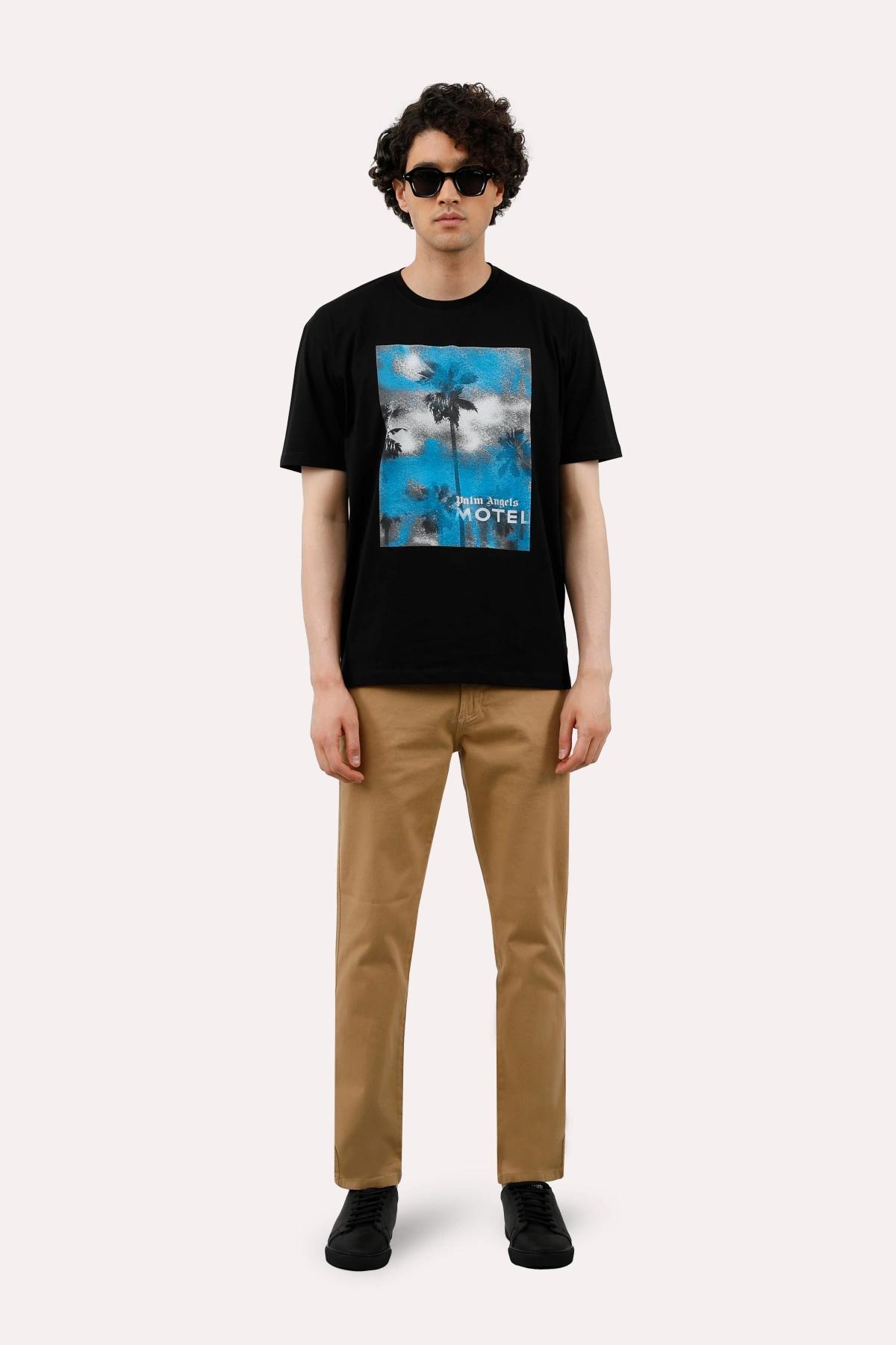 تیشرت آستین کوتاه مردانه چاپدار تولید پاتن جامه می باشد. تیشرت صد در صد نخی پنبه خنک و زیر دست نرم. قد تیشرت تا روی باسن بالای کمر می باشد.