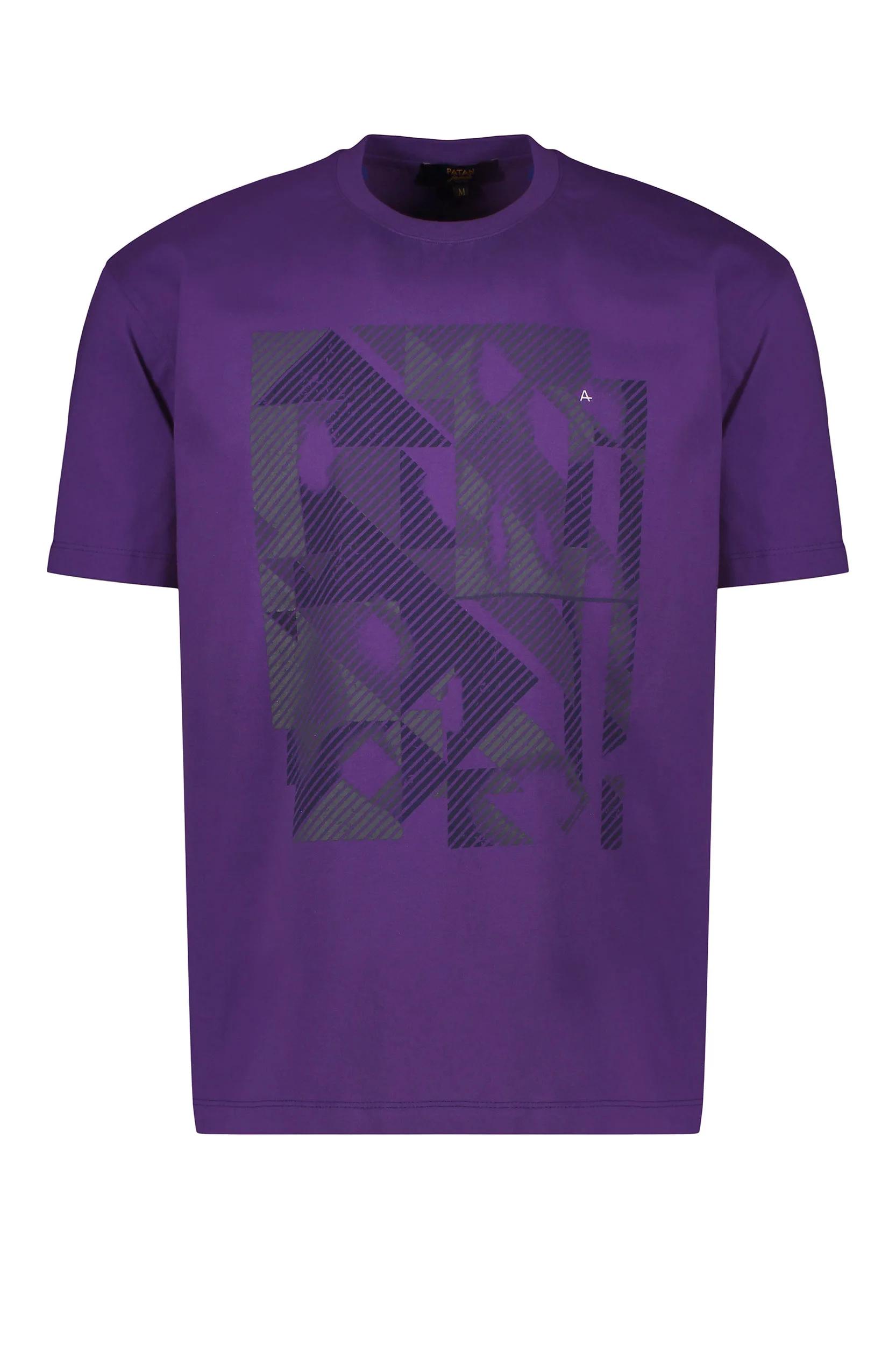 تیشرت آستین کوتاه مردانه یقه گرد رنگ بنفش هاشور از برند پاتن جامه خرید آسان با ارسال رایگان.