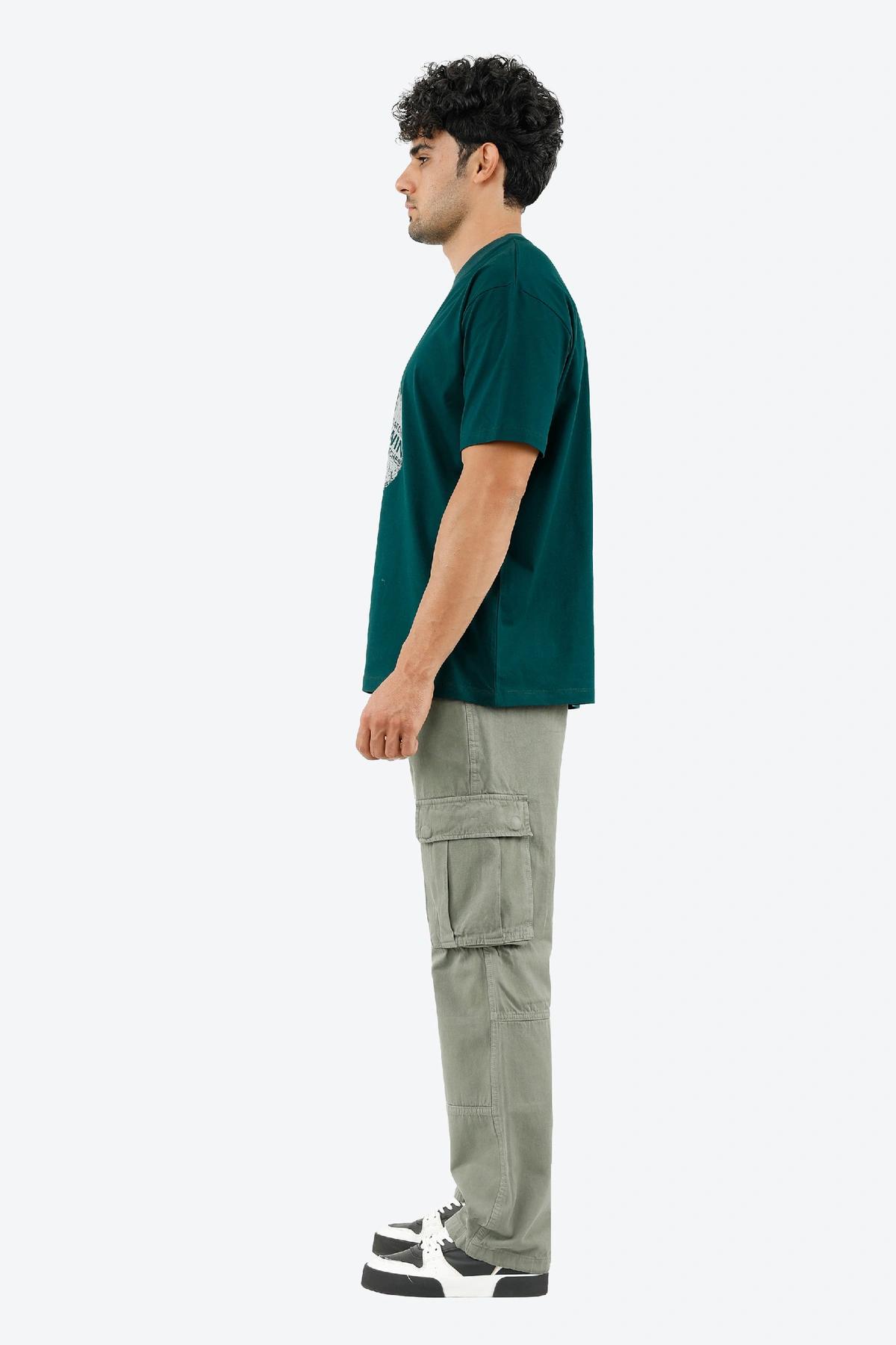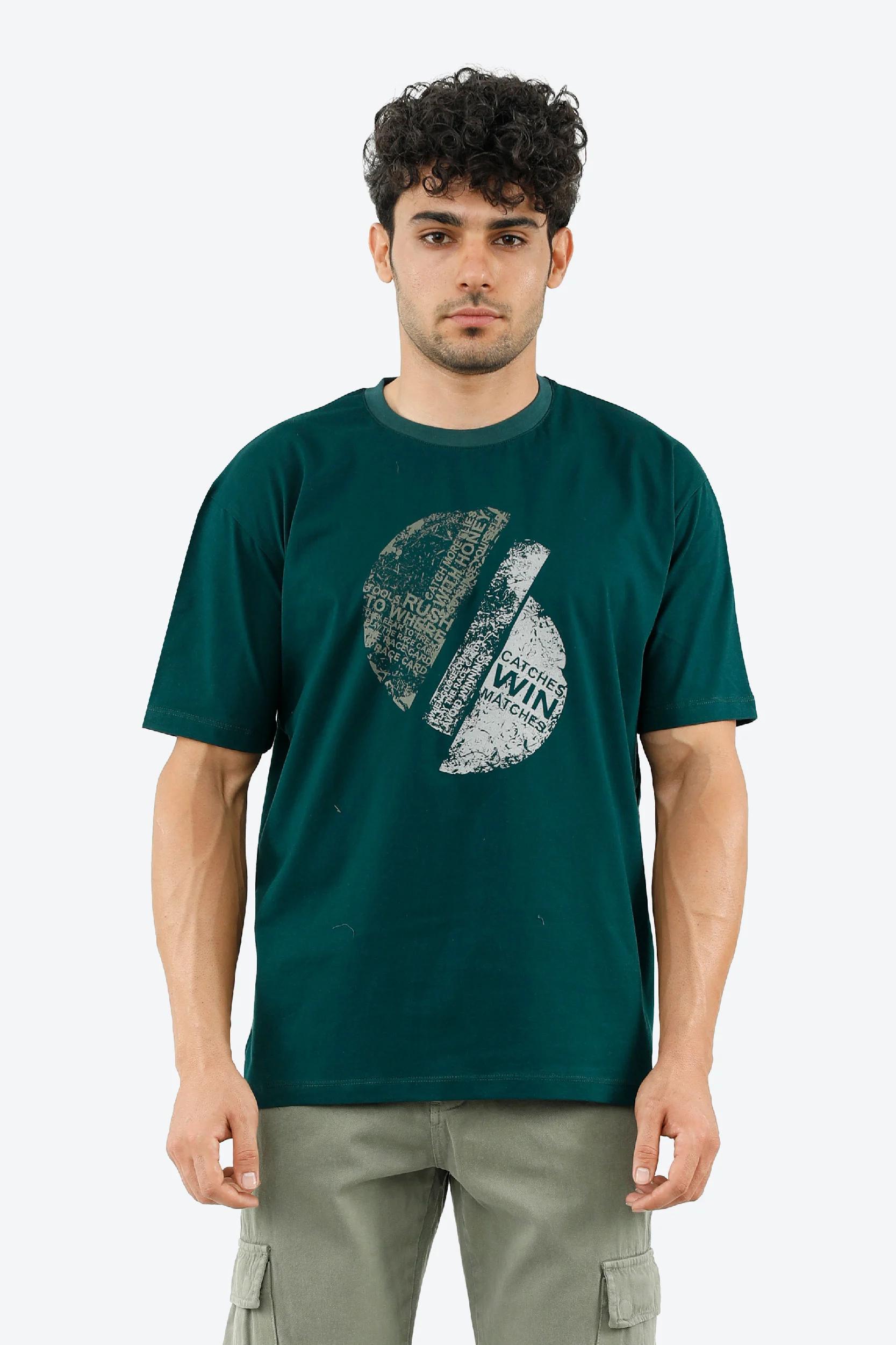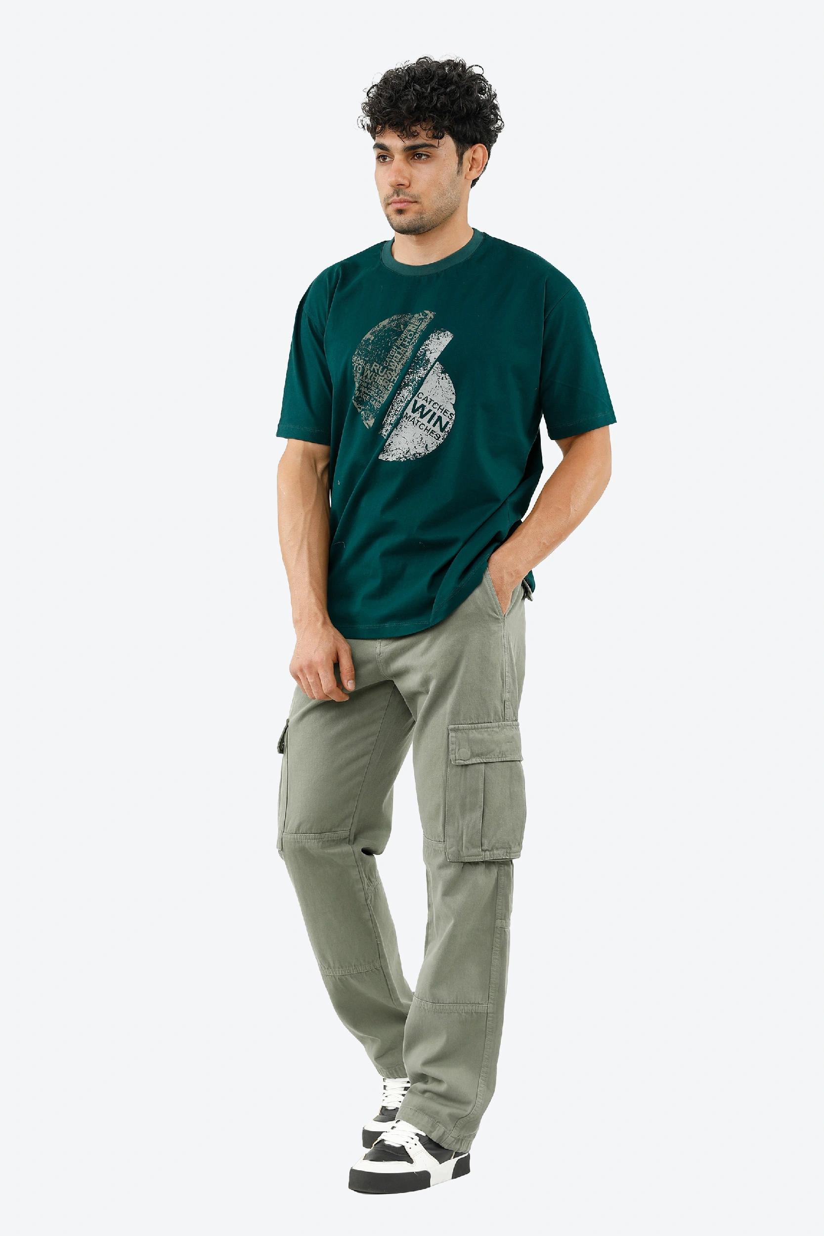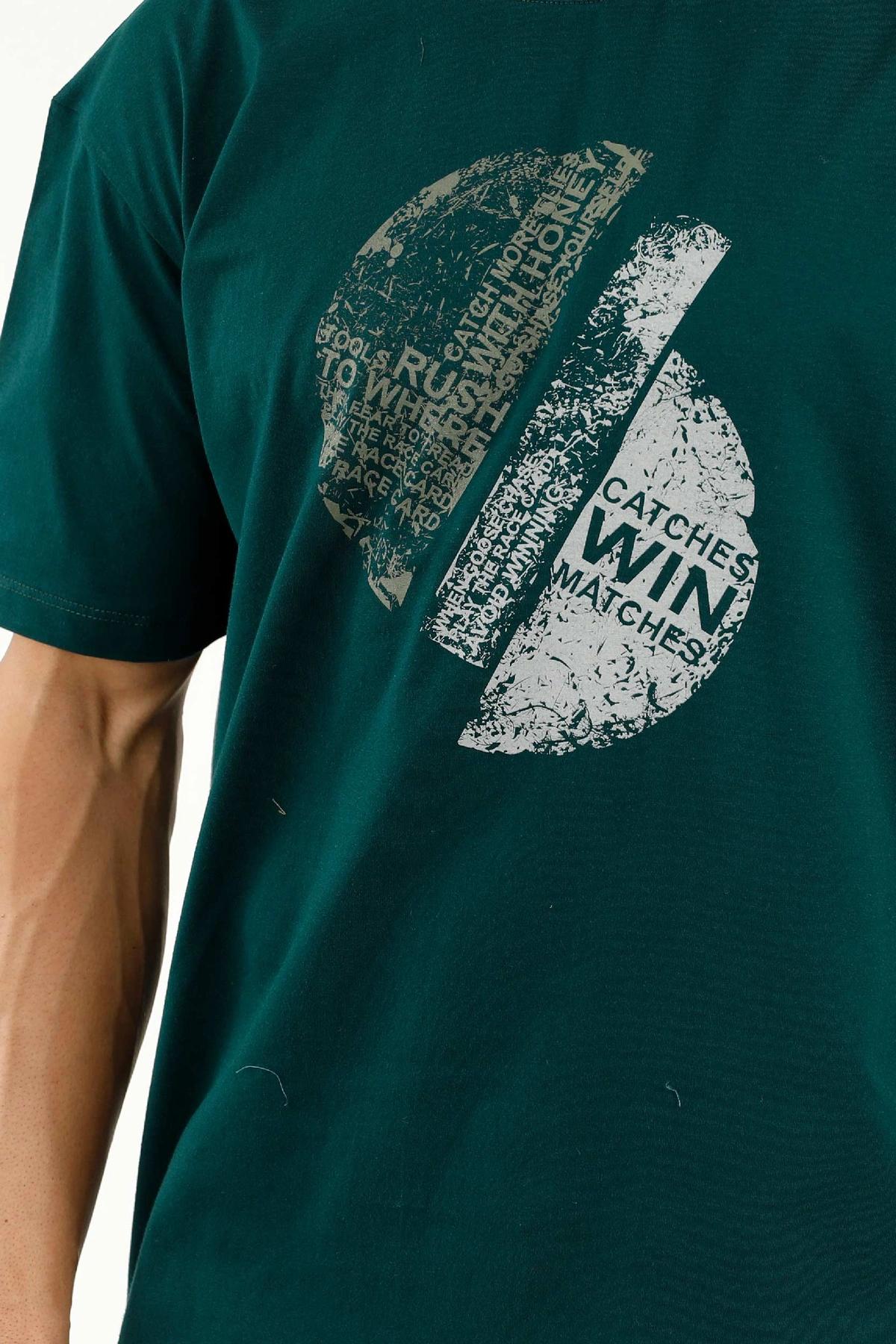 تیشرت آستین کوتاه مردانه یقه گرد رنگ سبز کله غازی چاپدار از برند پاتن جامه خرید آسان با ارسال رایگان